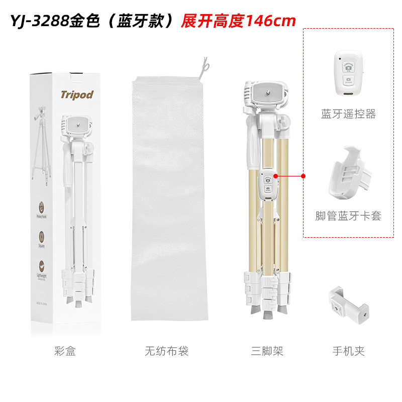 YJ-3288 흰색 삼각대 휴대 전화 라이브 방송 스탠드 짧은 비디오 스탠드 낚시 램프 스탠드 플로어 스탠드