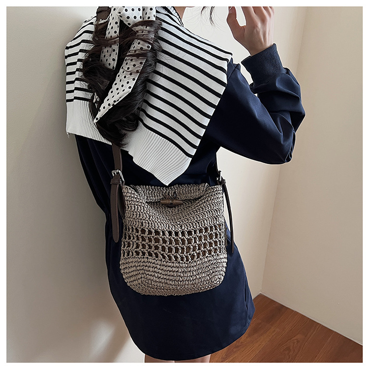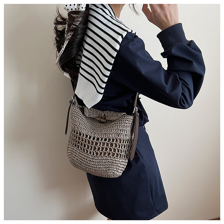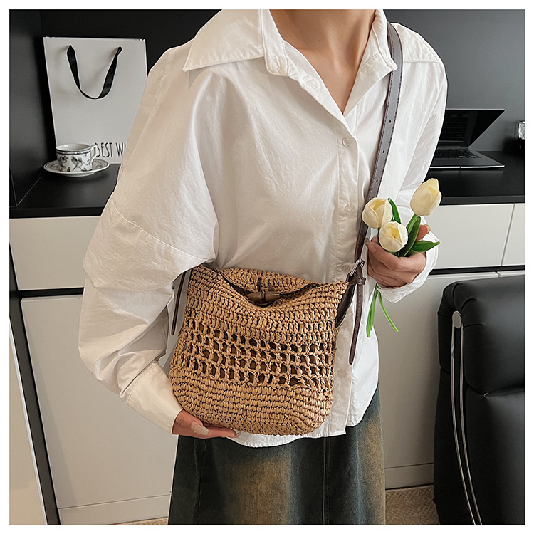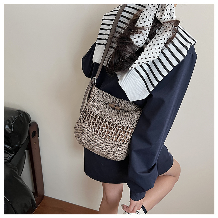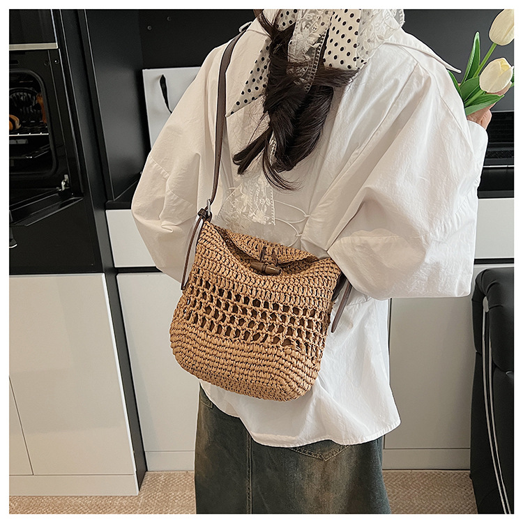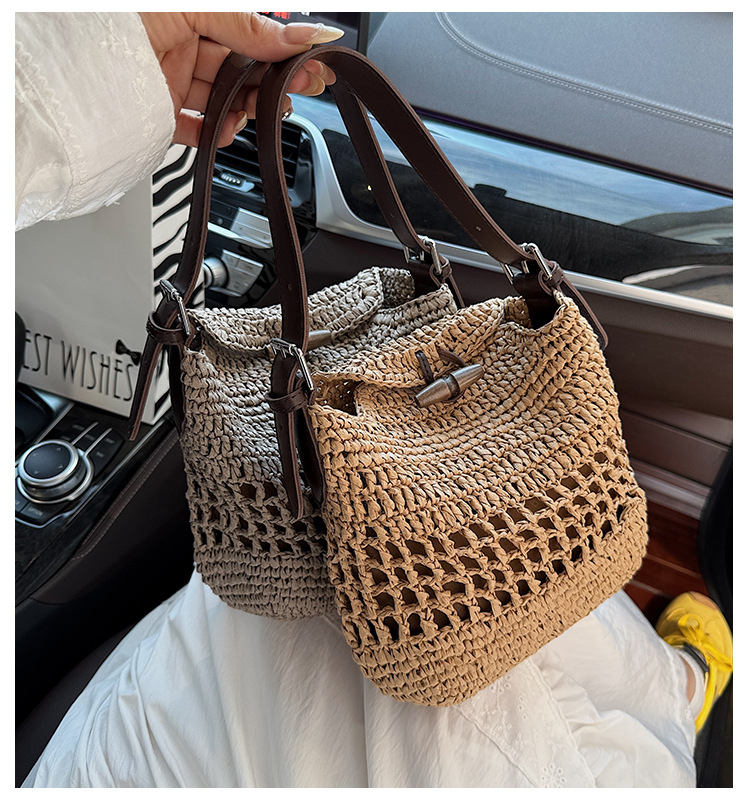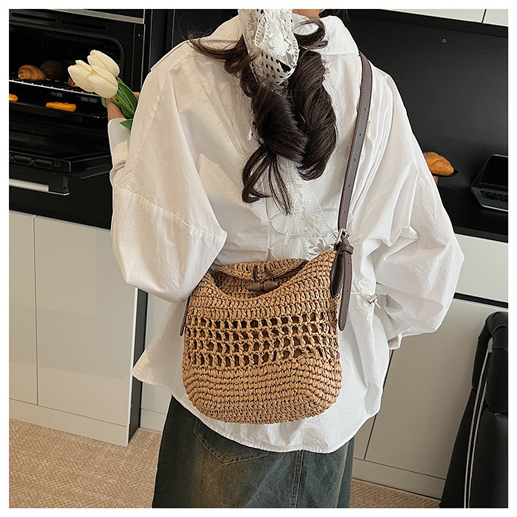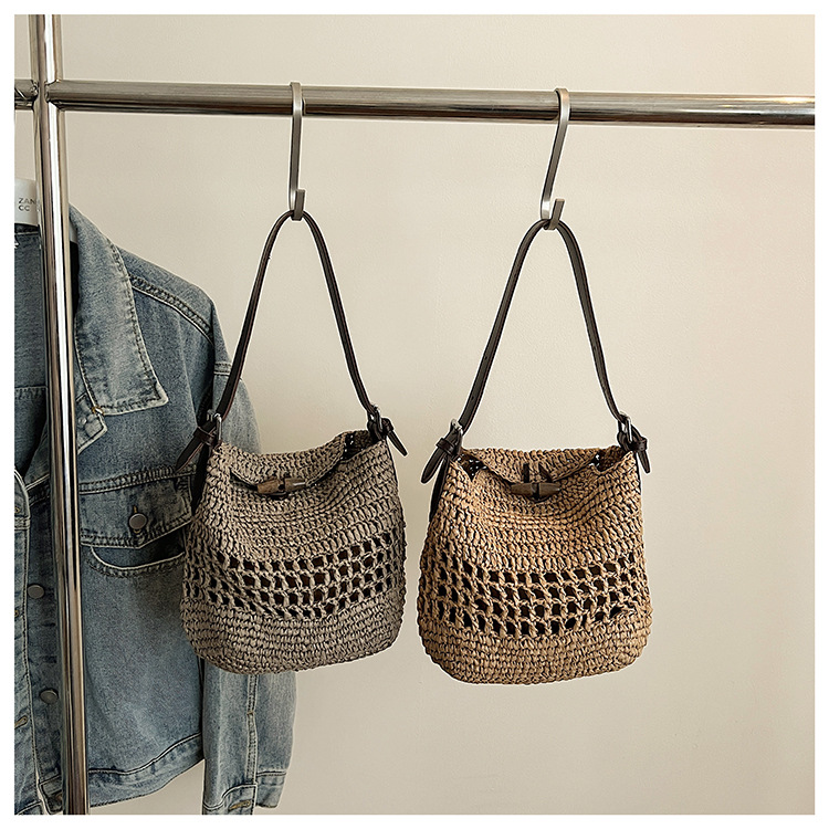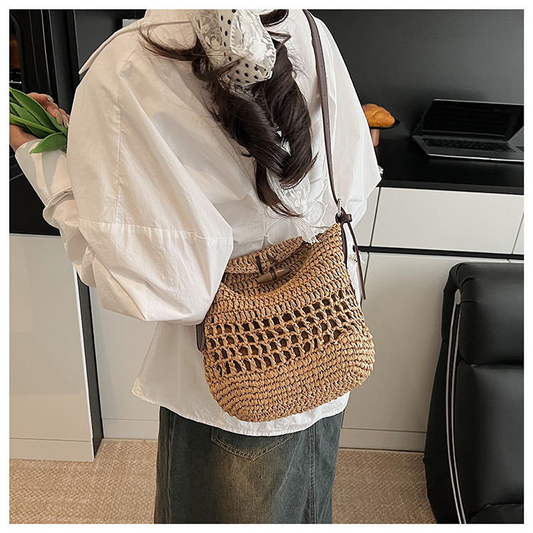 손으로 짠 가방 여성 2025 새로운 해변 휴가 어깨 가방 대용량 토트 백 통근 밀짚 가방스토어 가기