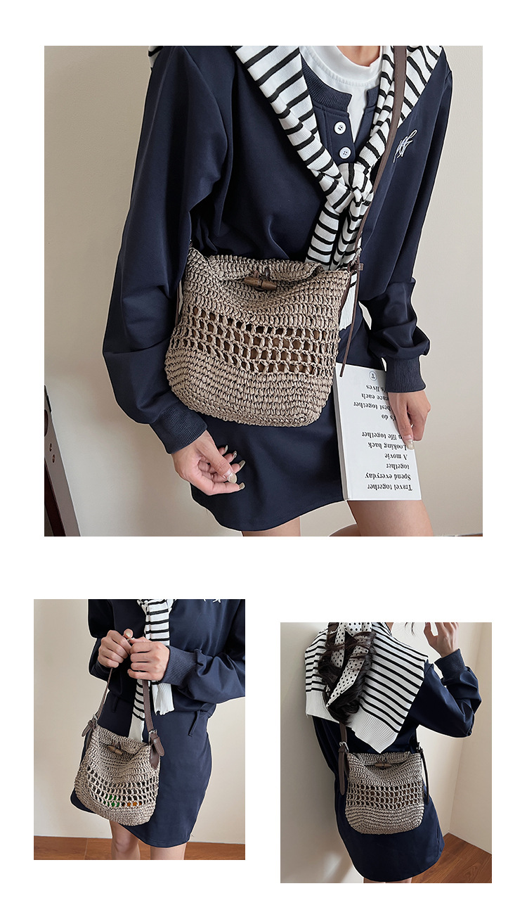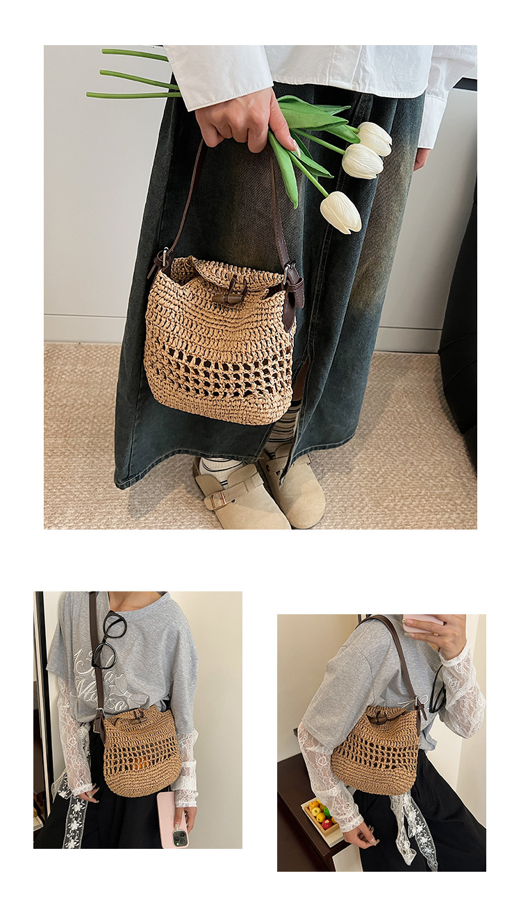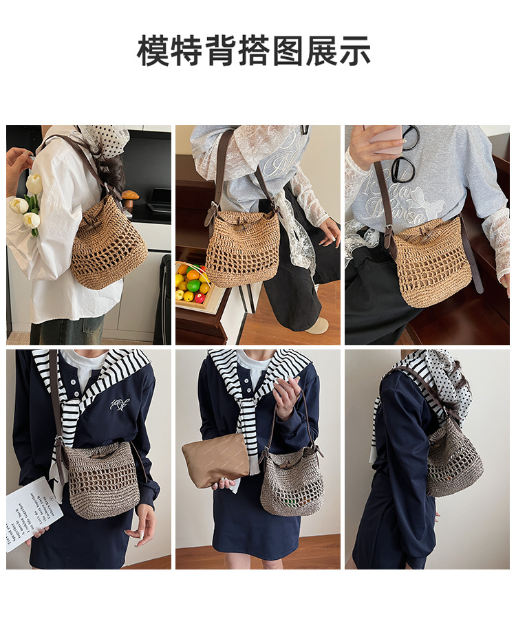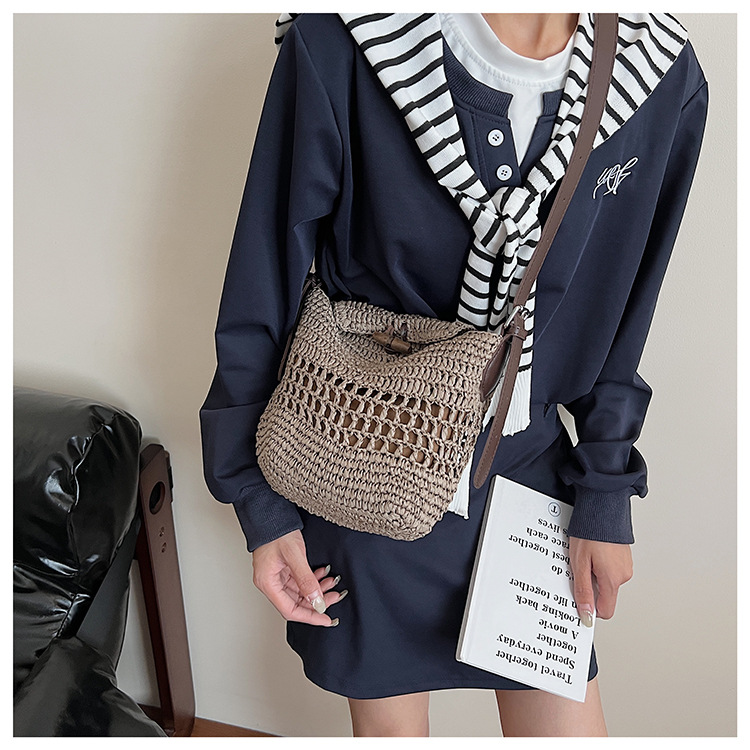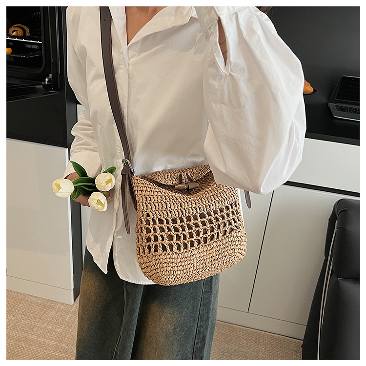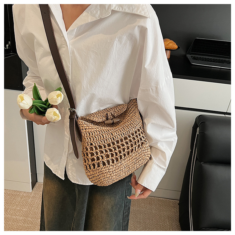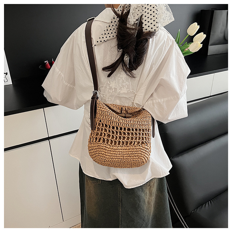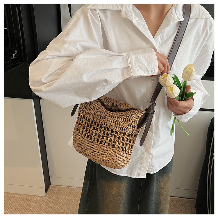 손으로 짠 가방 여성 2025 새로운 해변 휴가 어깨 가방 대용량 토트 백 통근 밀짚 가방스토어 가기