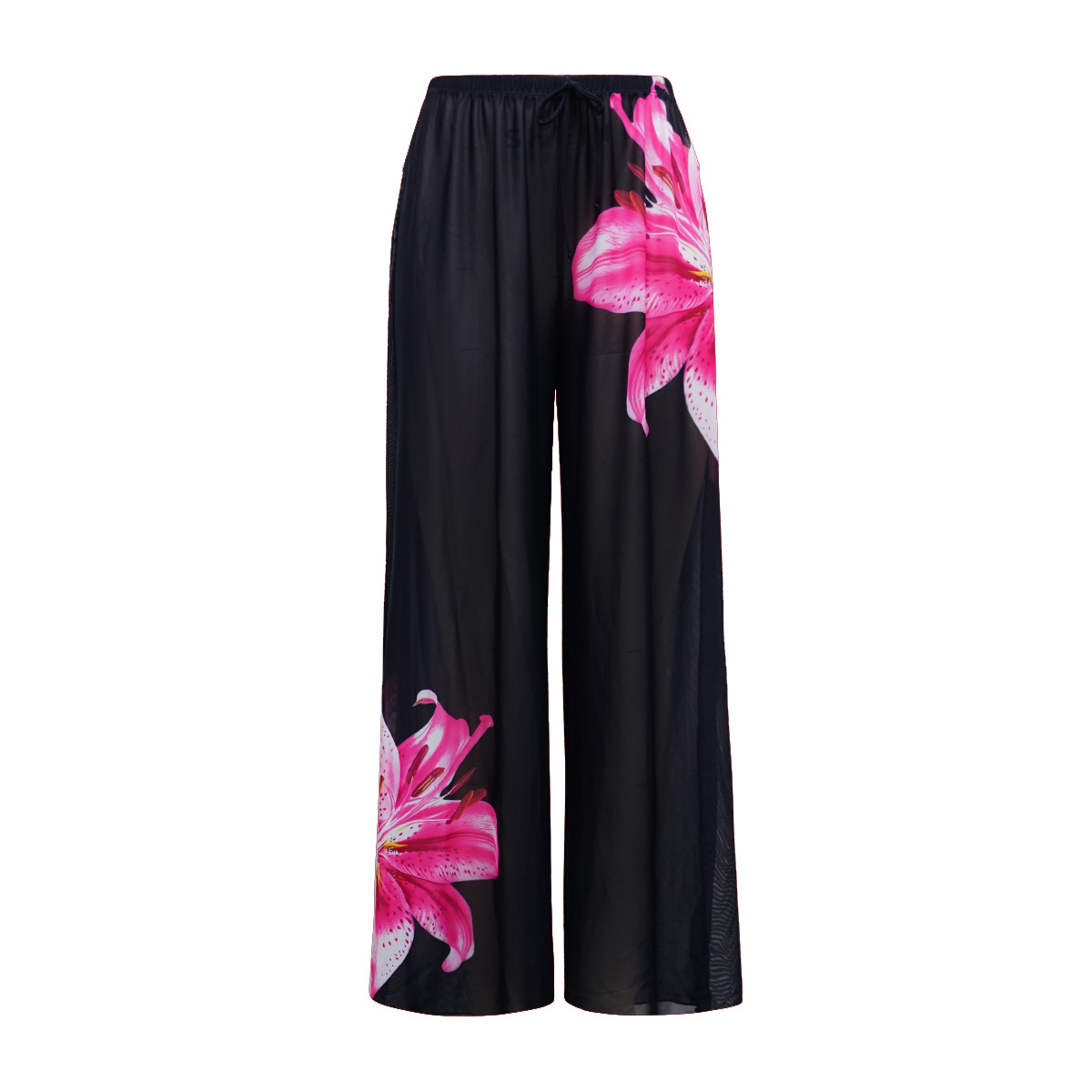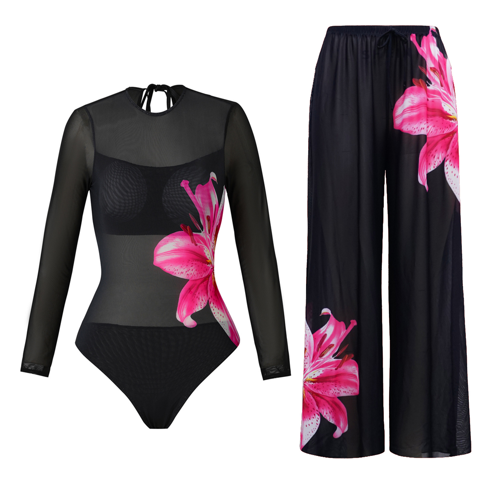 • 검은색 꽃무늬 수영복과 바지 정장