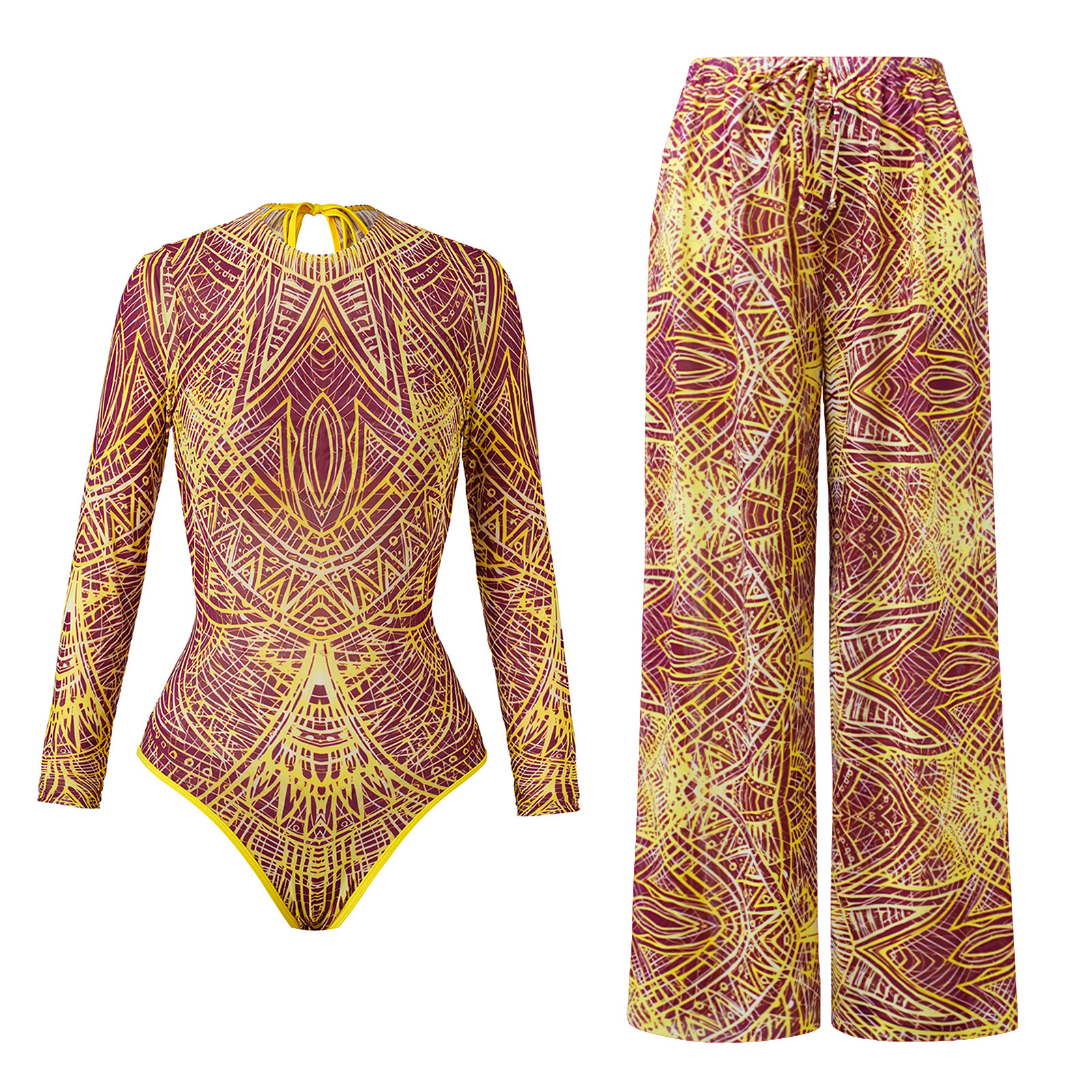 2025 유럽 및 미국 신상 긴팔 자외선 차단 수영복 여성 캐주얼 긴바지 세트 속건성 원피스