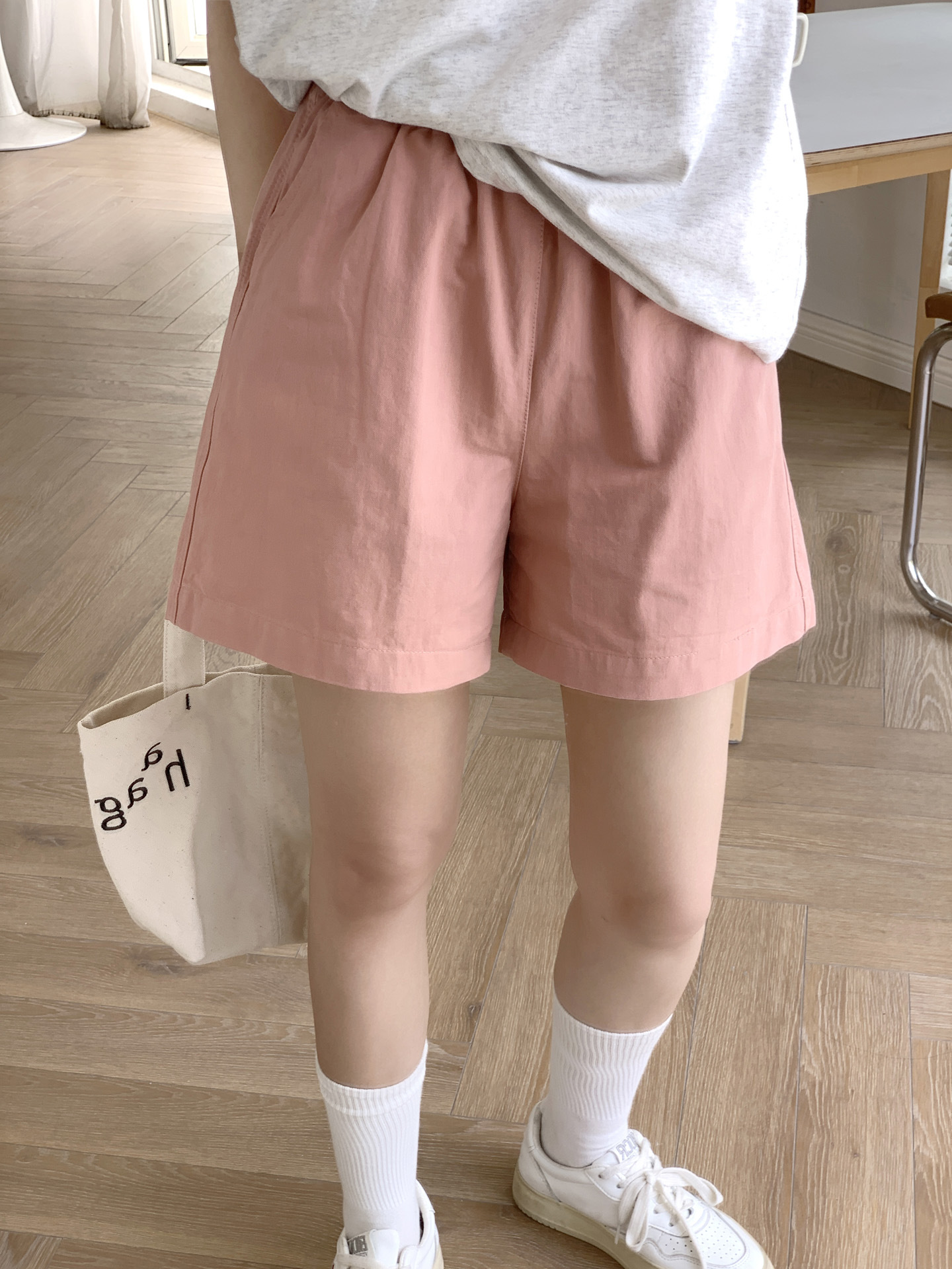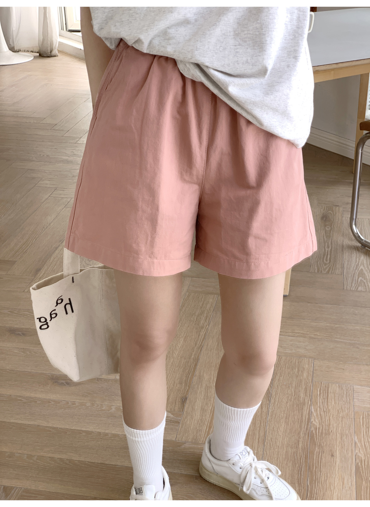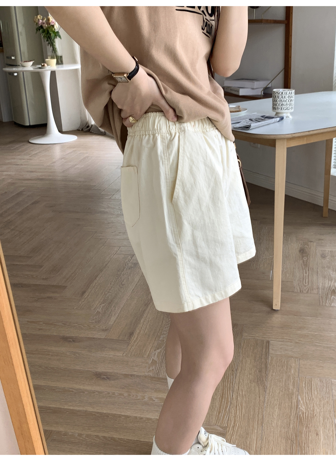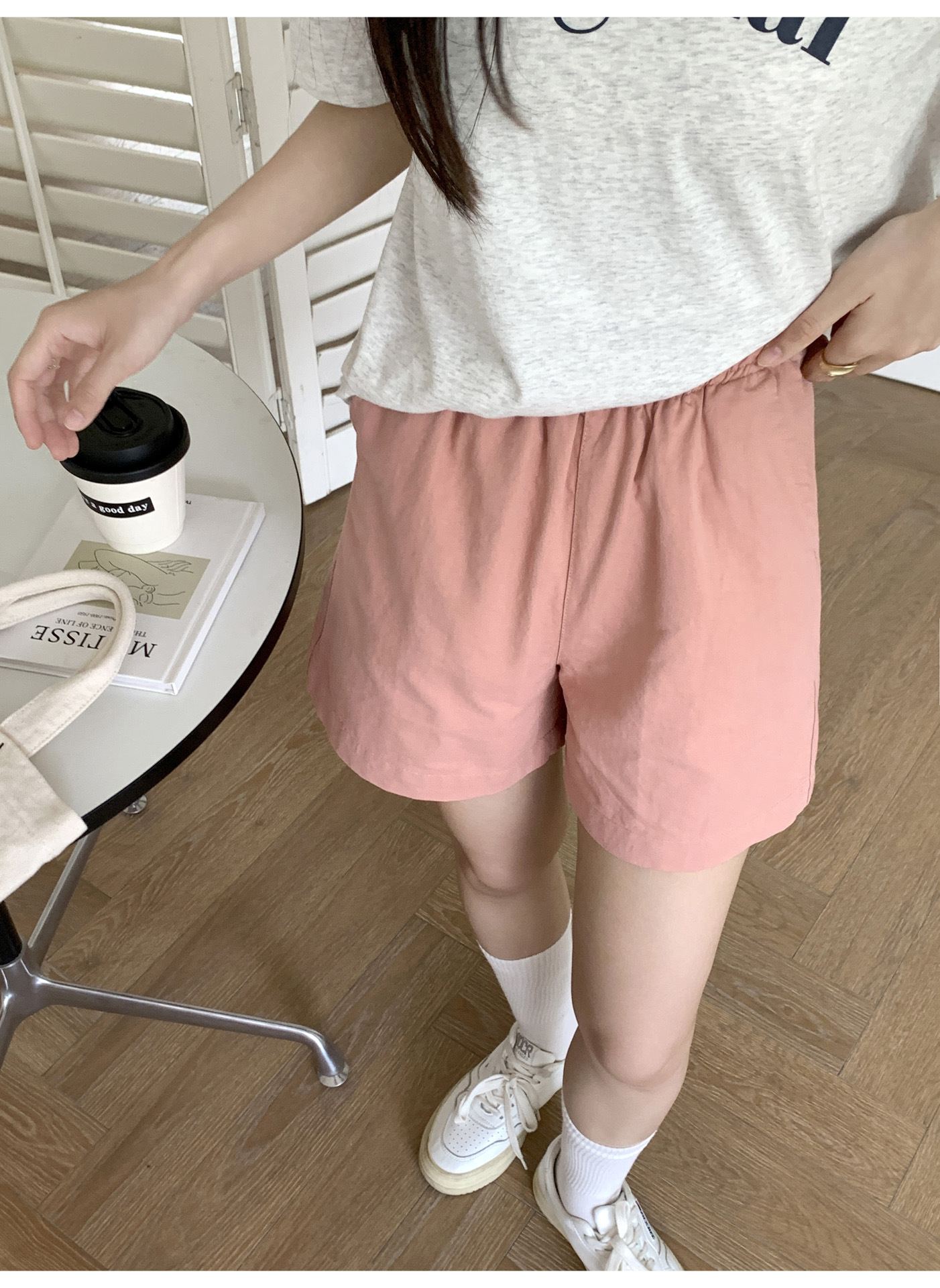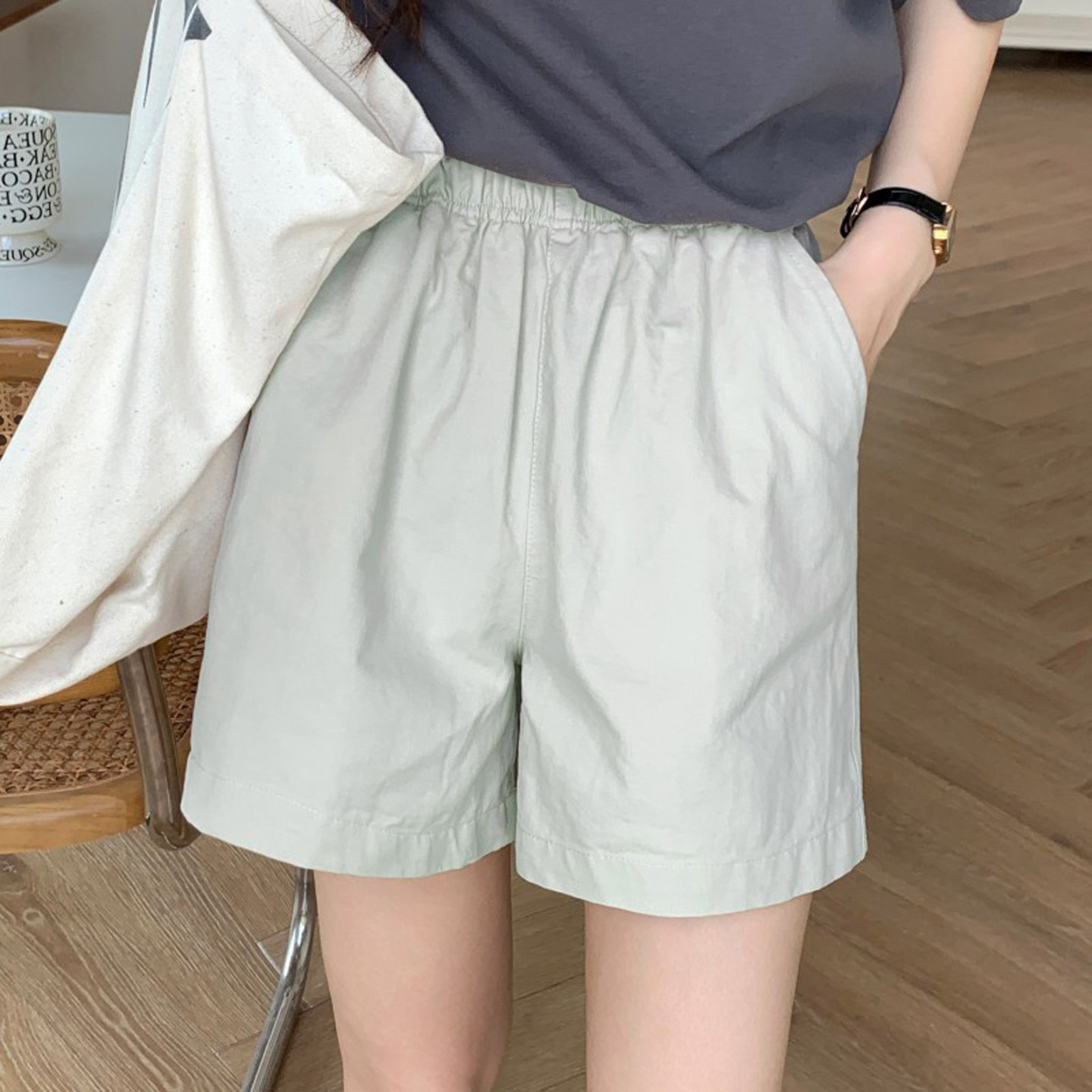 여름용 캐주얼 하이웨이스트 A라인 신축성 팬츠 여성용 여유로운 스타일 삼부 바지 한국 스타일 심플한 홈웨어 반바지 하이웨이스트 슬림핏스토어 가기