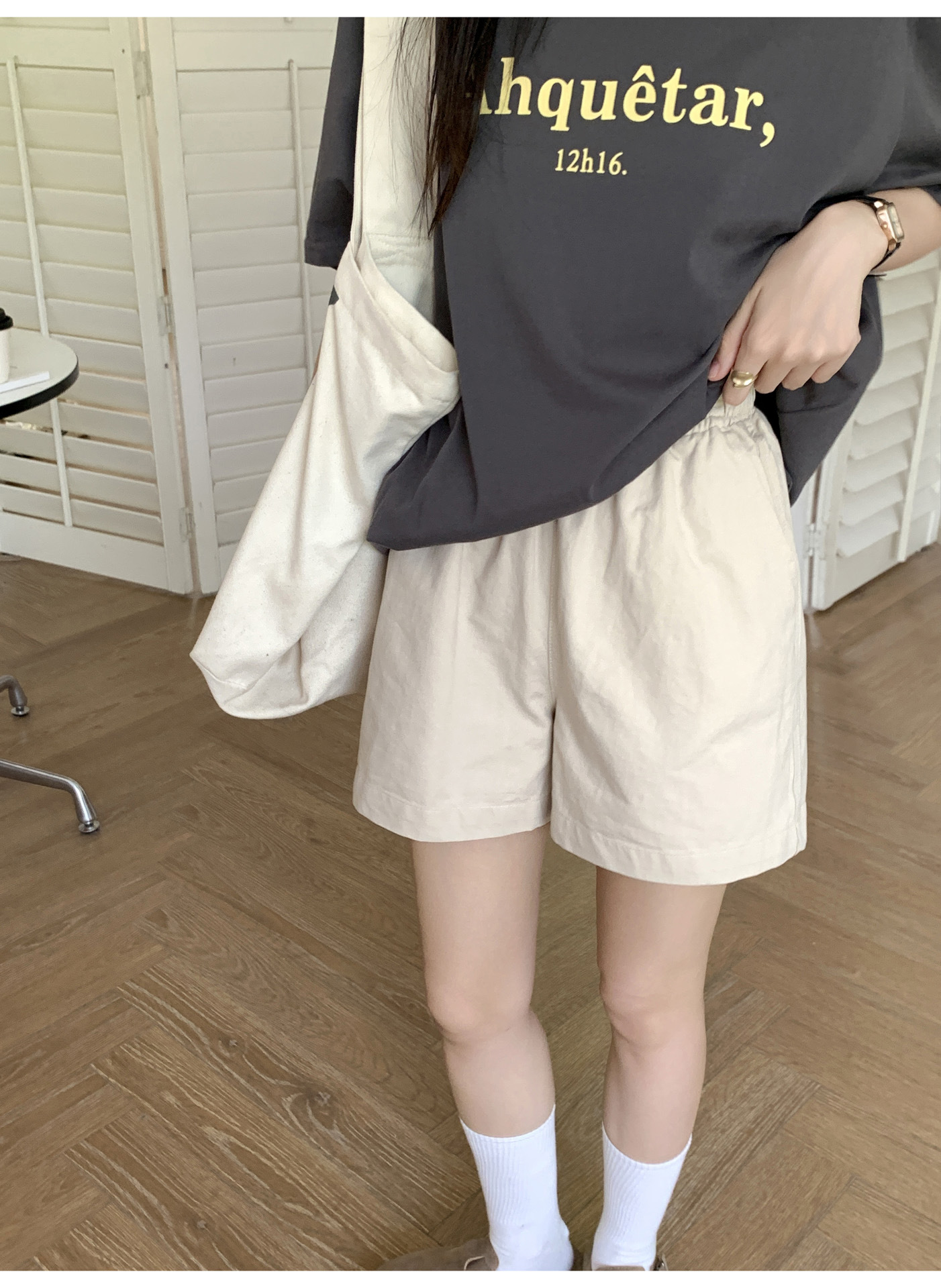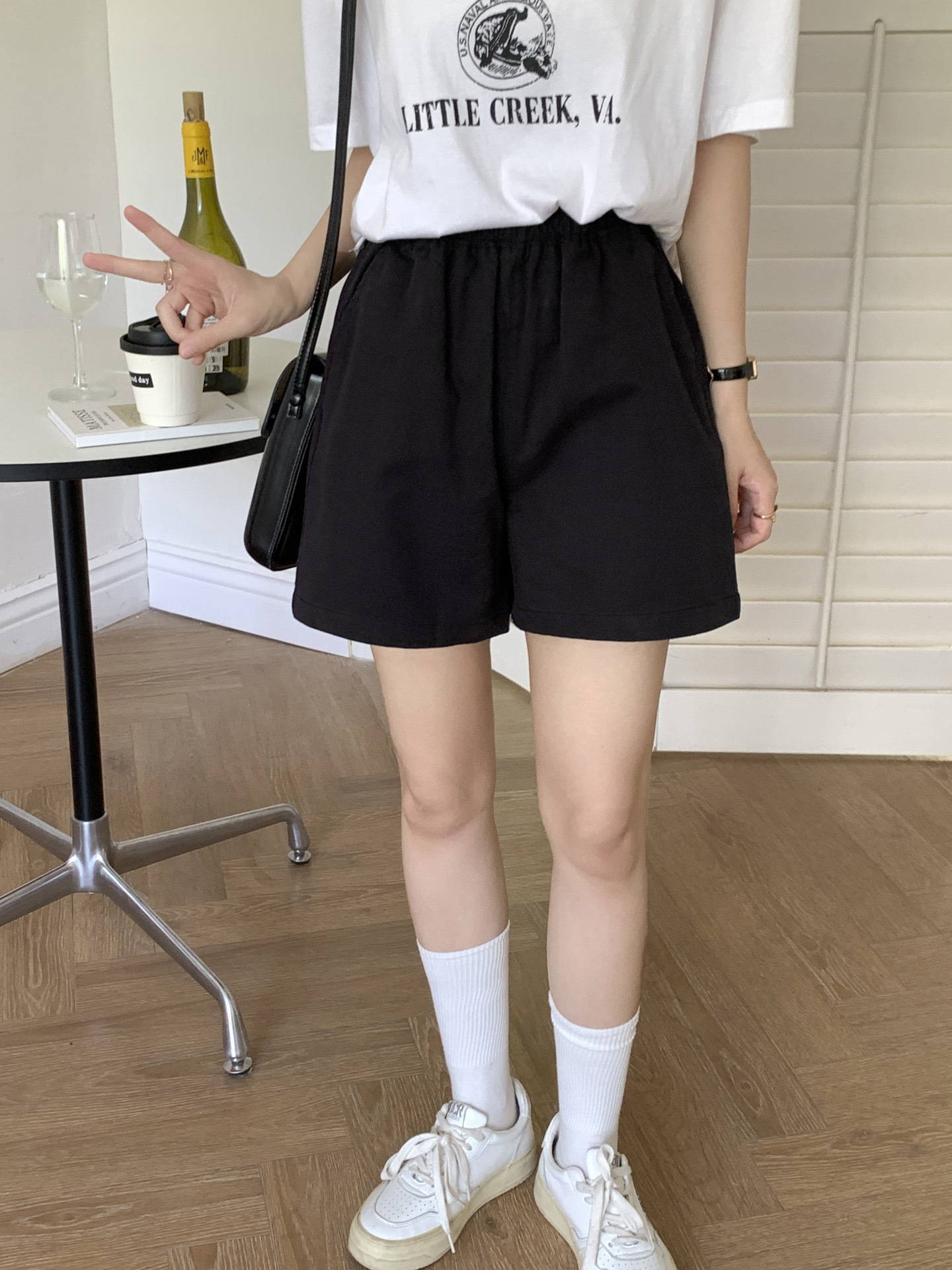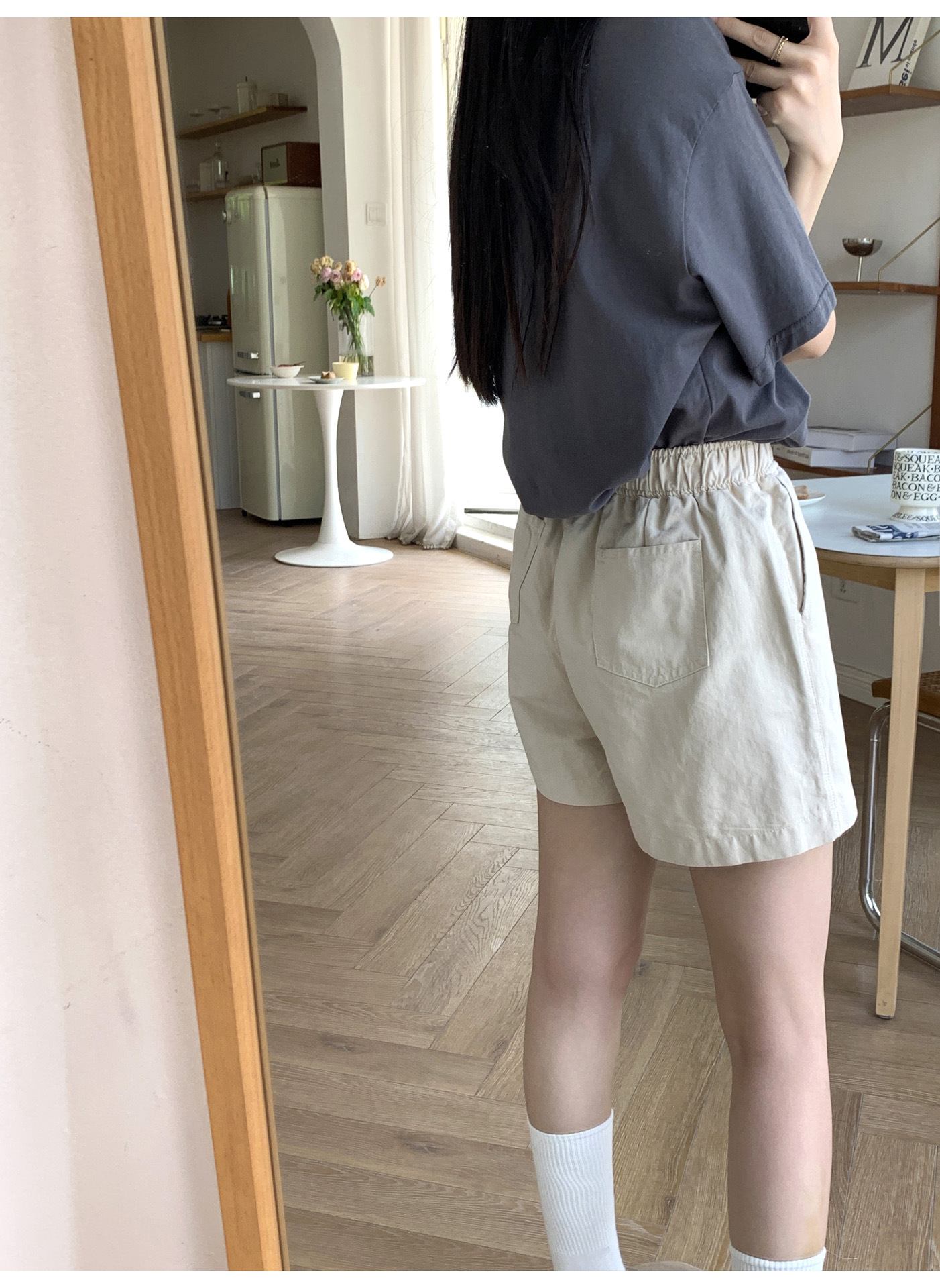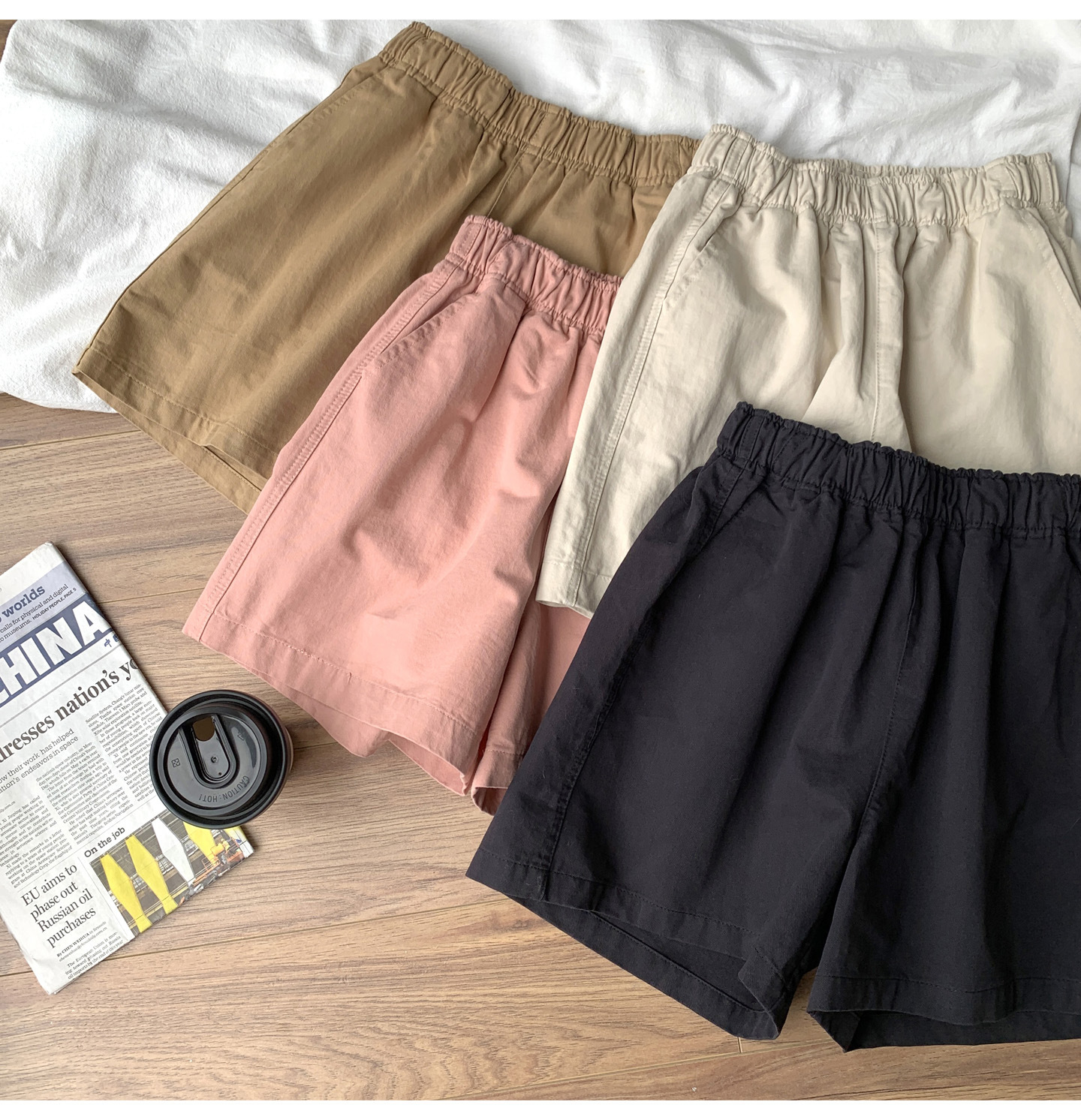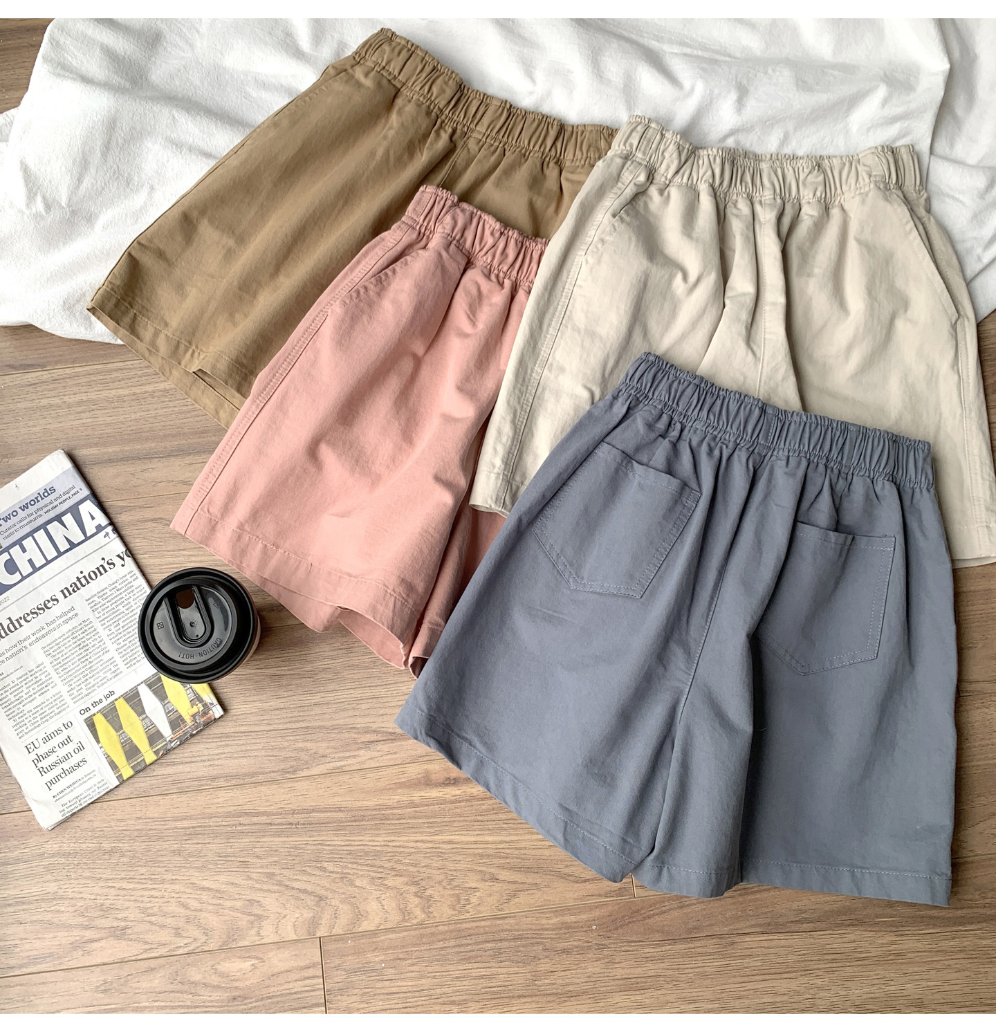 여름용 캐주얼 하이웨이스트 A라인 신축성 팬츠 여성용 여유로운 스타일 삼부 바지 한국 스타일 심플한 홈웨어 반바지 하이웨이스트 슬림핏스토어 가기