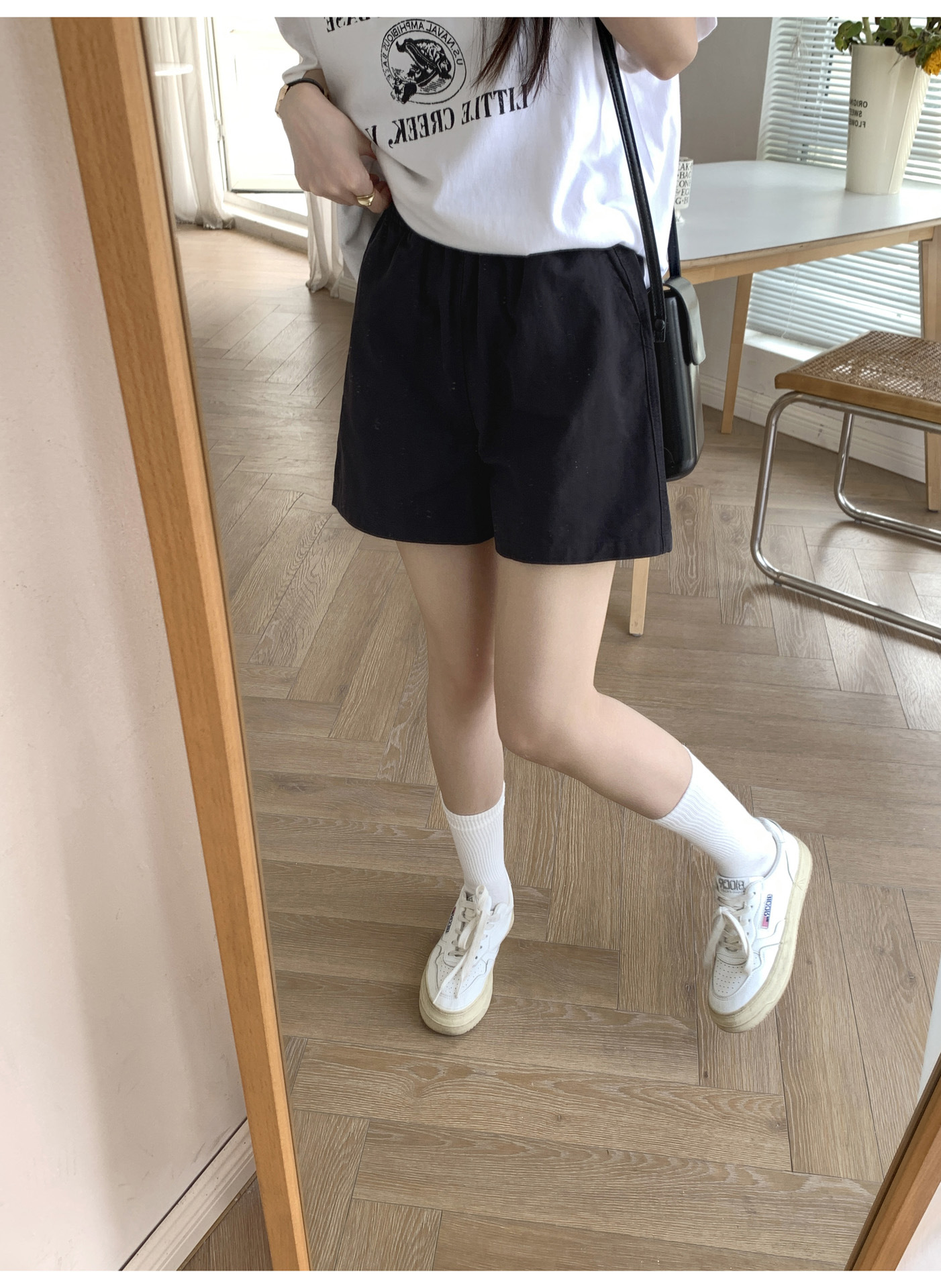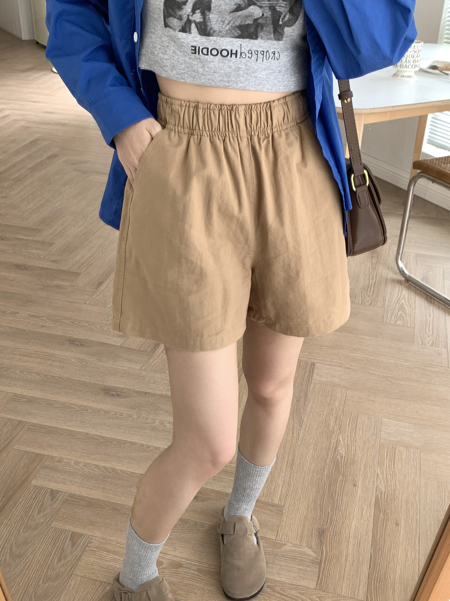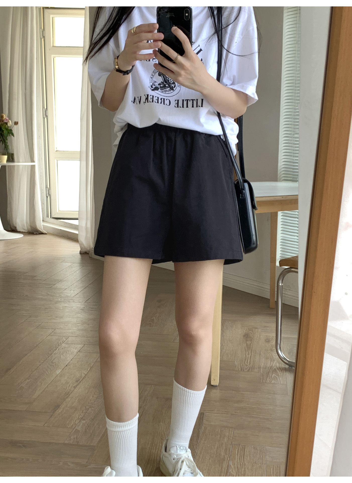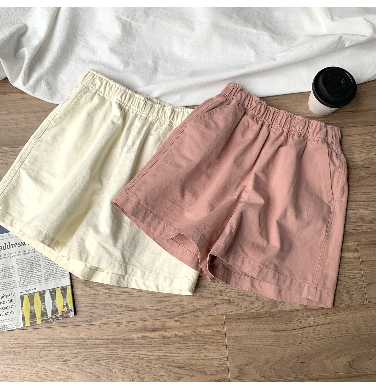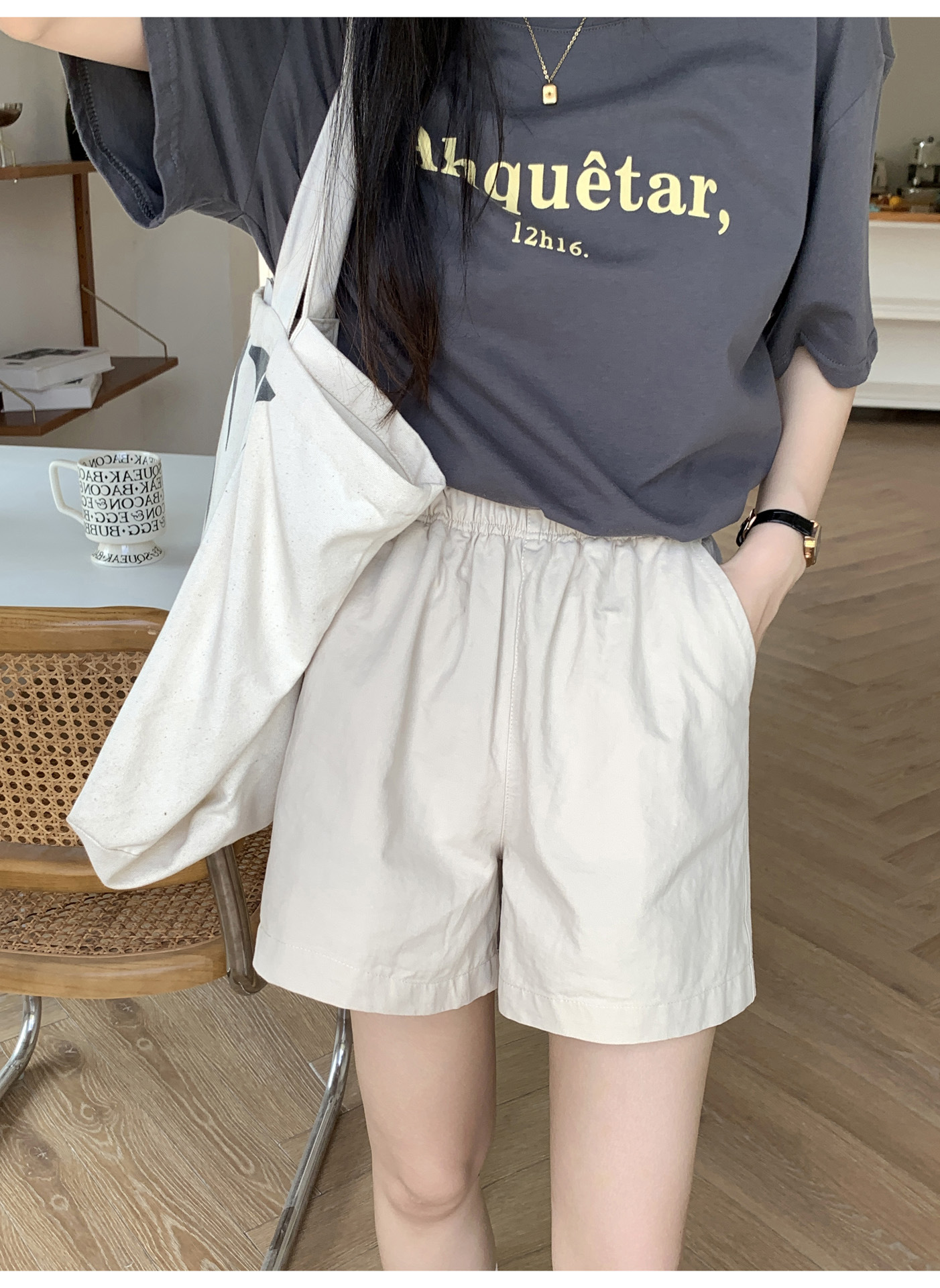여름용 캐주얼 하이웨이스트 A라인 신축성 팬츠 여성용 여유로운 스타일 삼부 바지 한국 스타일 심플한 홈웨어 반바지 하이웨이스트 슬림핏스토어 가기