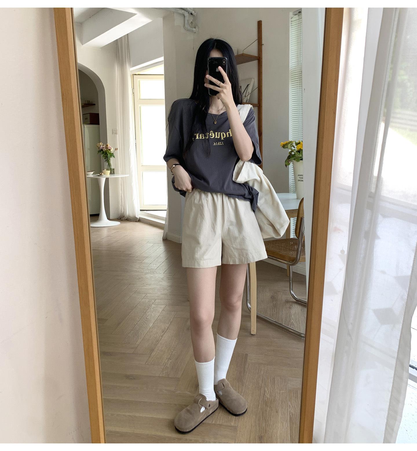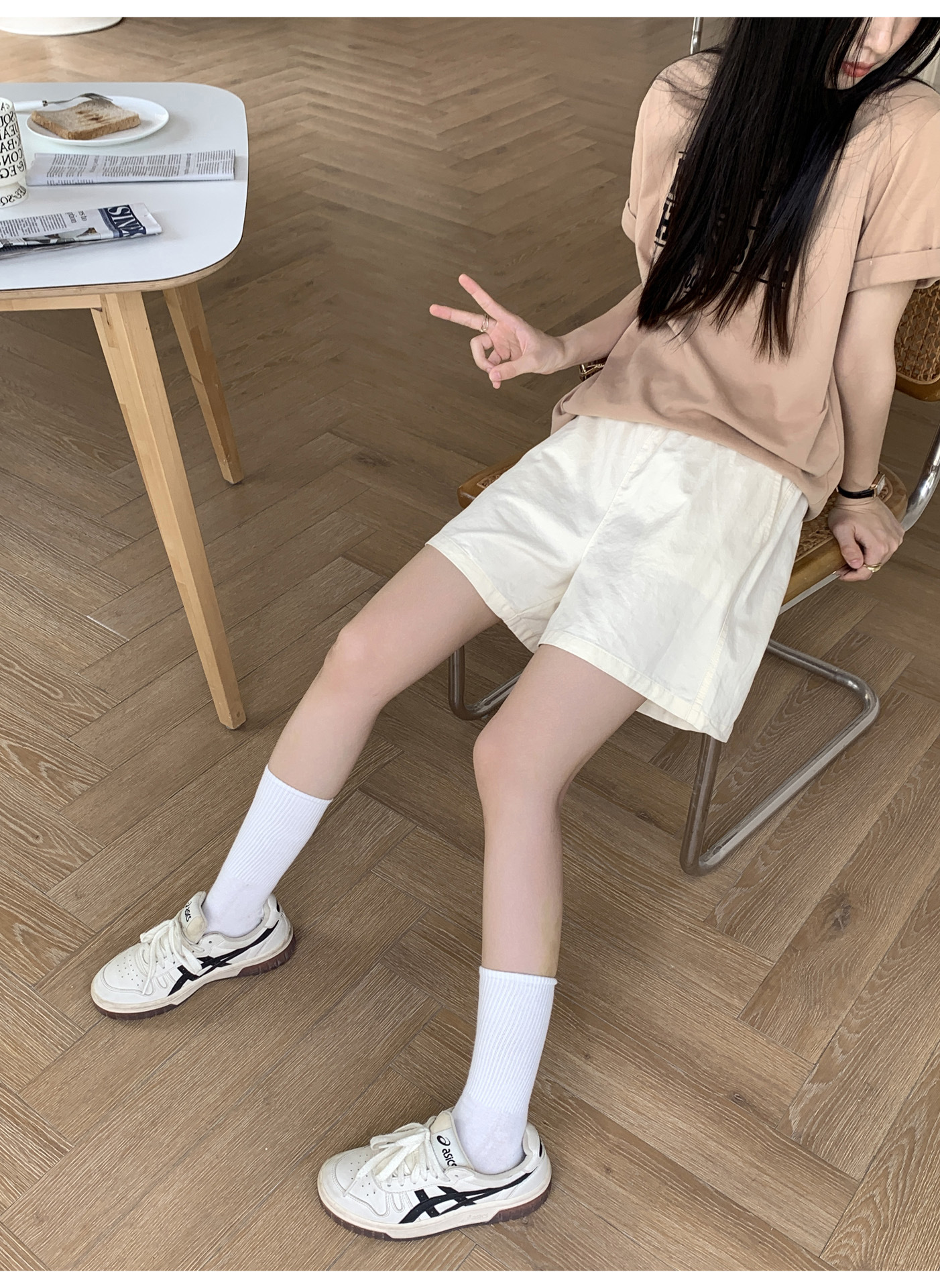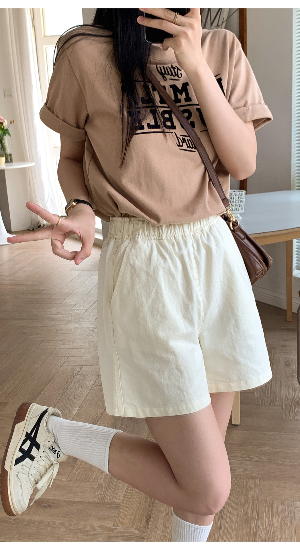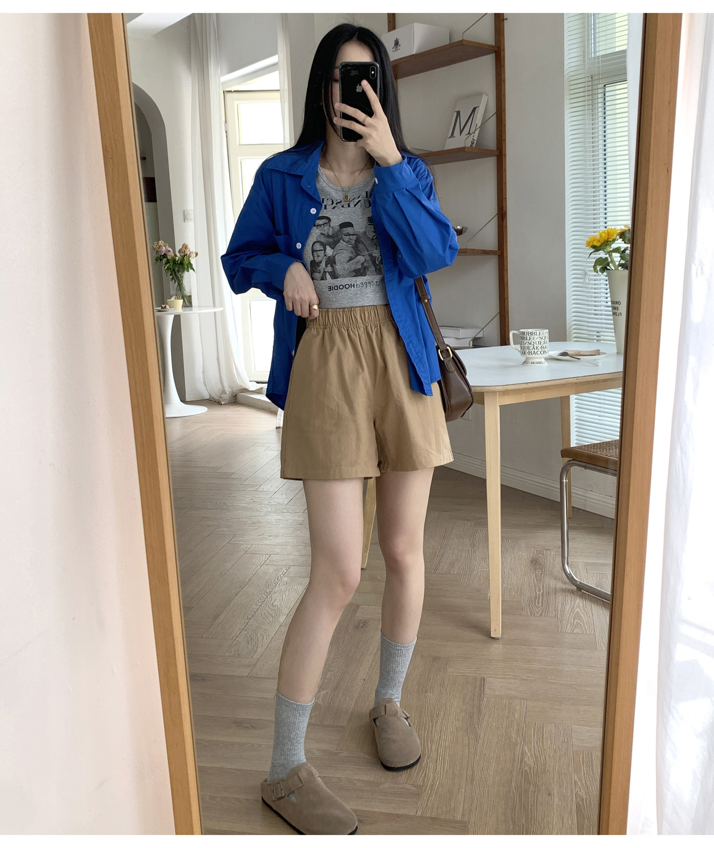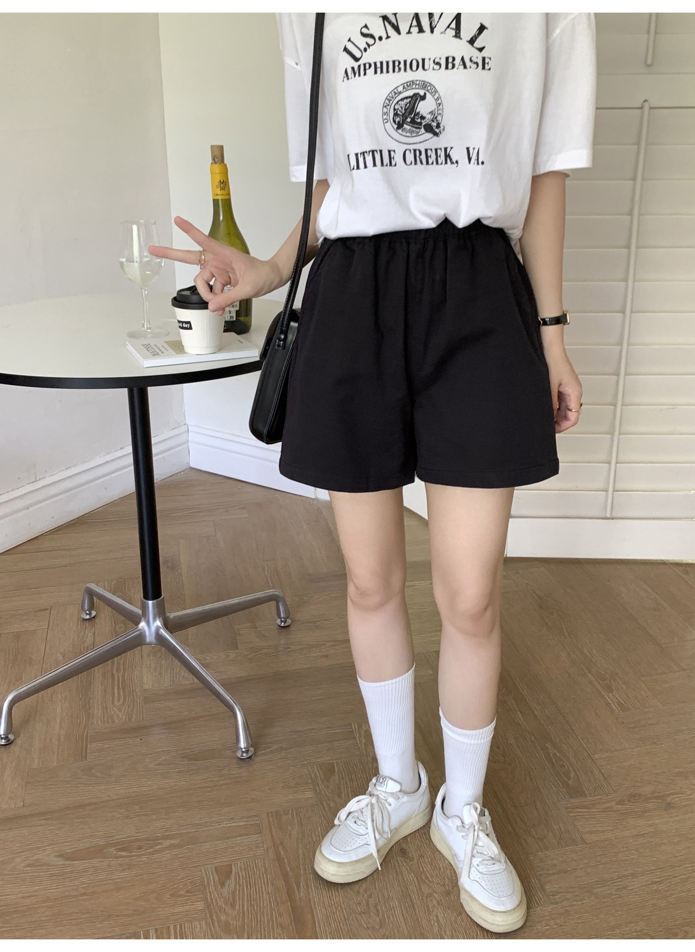 여름용 캐주얼 하이웨이스트 A라인 신축성 팬츠 여성용 여유로운 스타일 삼부 바지 한국 스타일 심플한 홈웨어 반바지 하이웨이스트 슬림핏스토어 가기