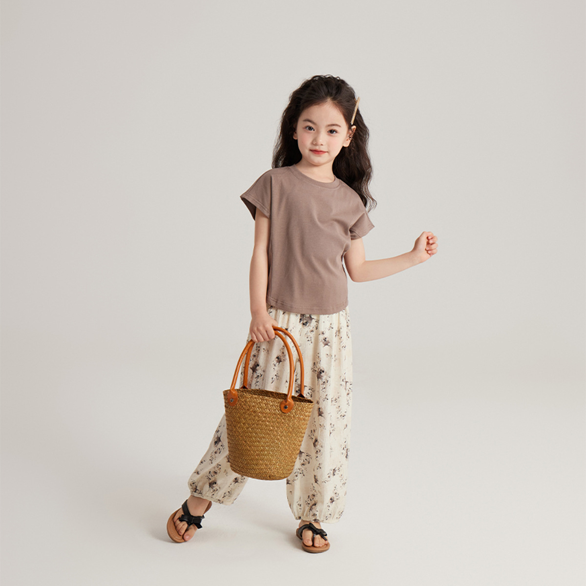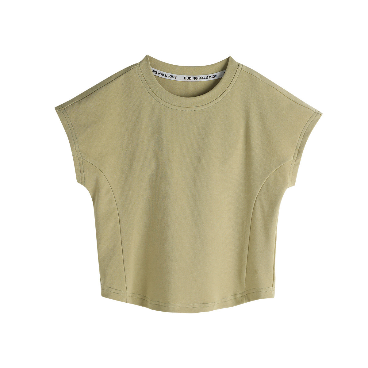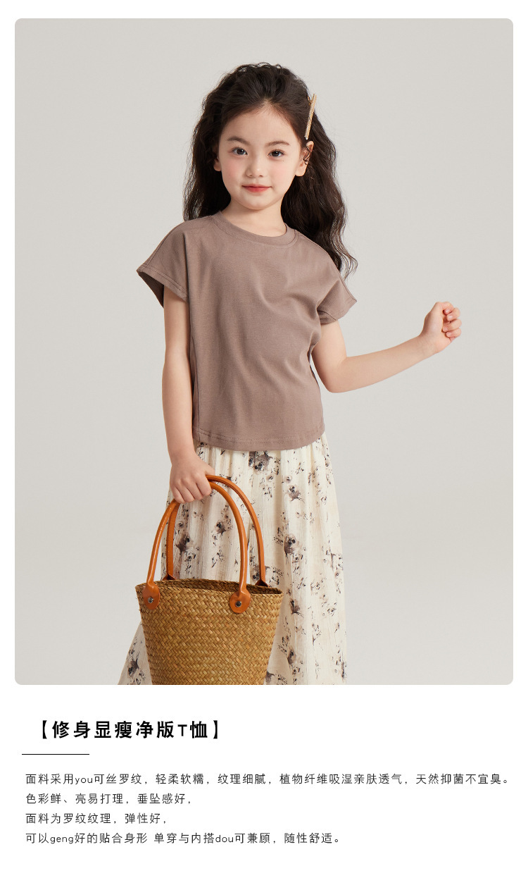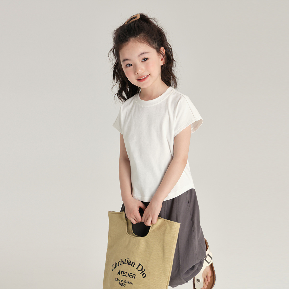 2024 새로운 여름 소녀 반팔 티셔츠 한국 스타일 슬림 피트 어린이 반팔 티셔츠 피부 친화적 인 통기성 티셔츠