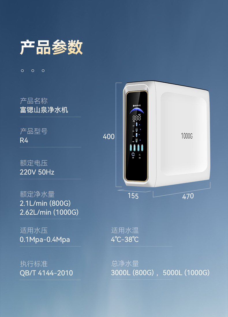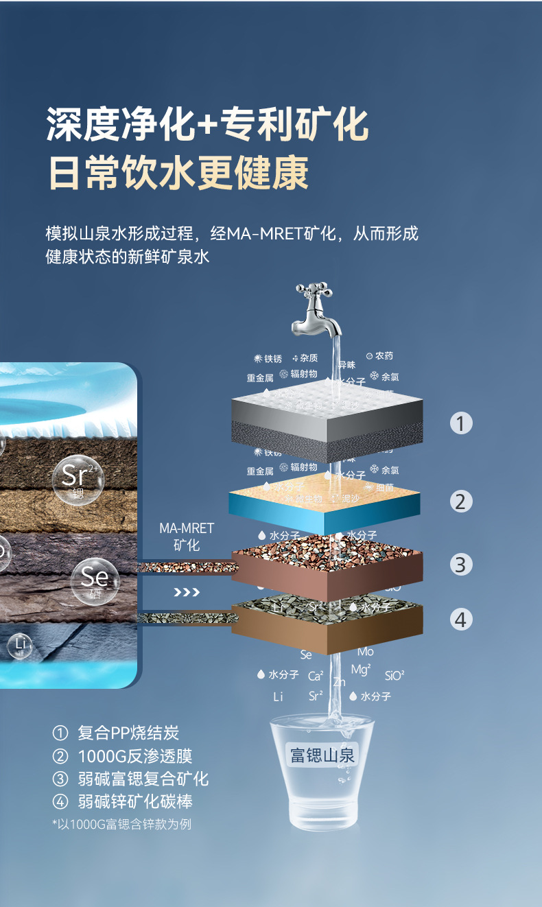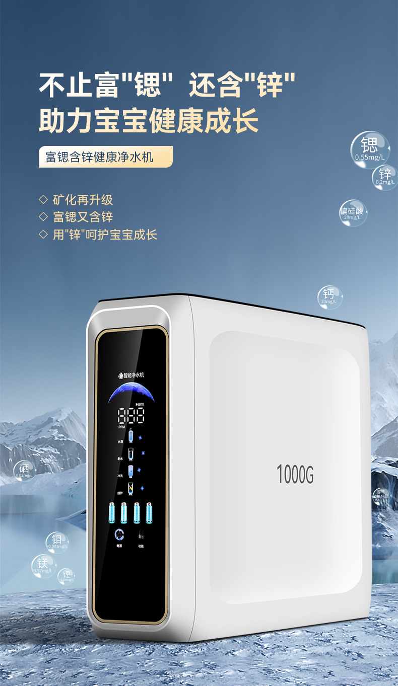 1000G 스트론튬이 풍부한 산천정수기 가정용 주방 직접 마시는 정수기 RO 역삼투 필터 순수 정수기스토어 가기