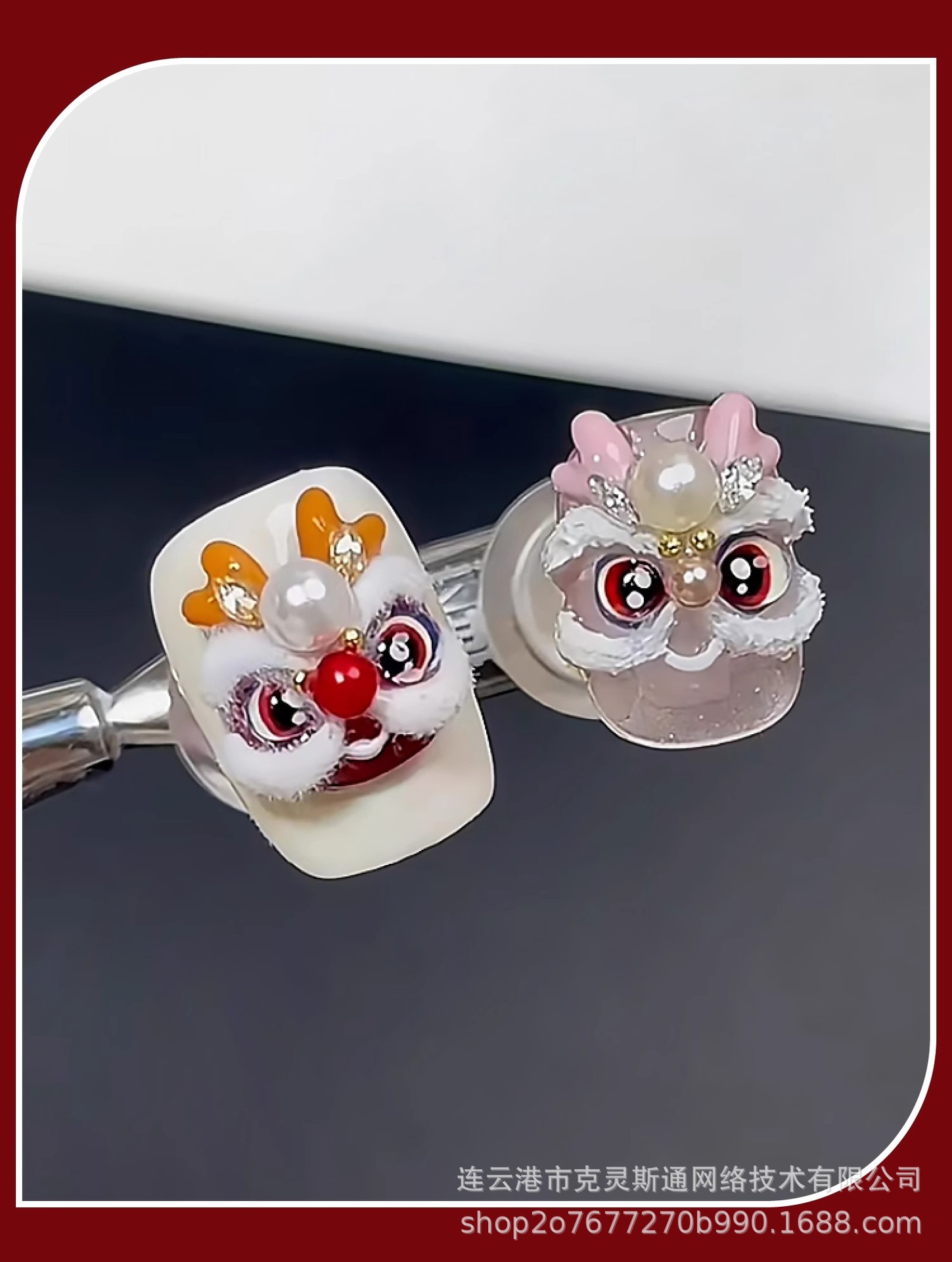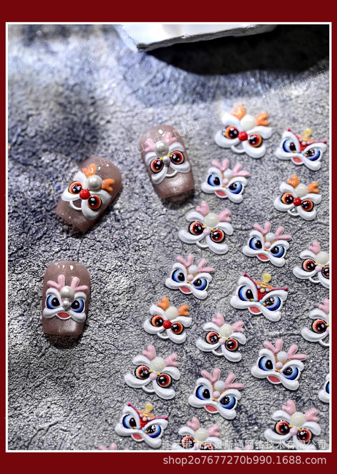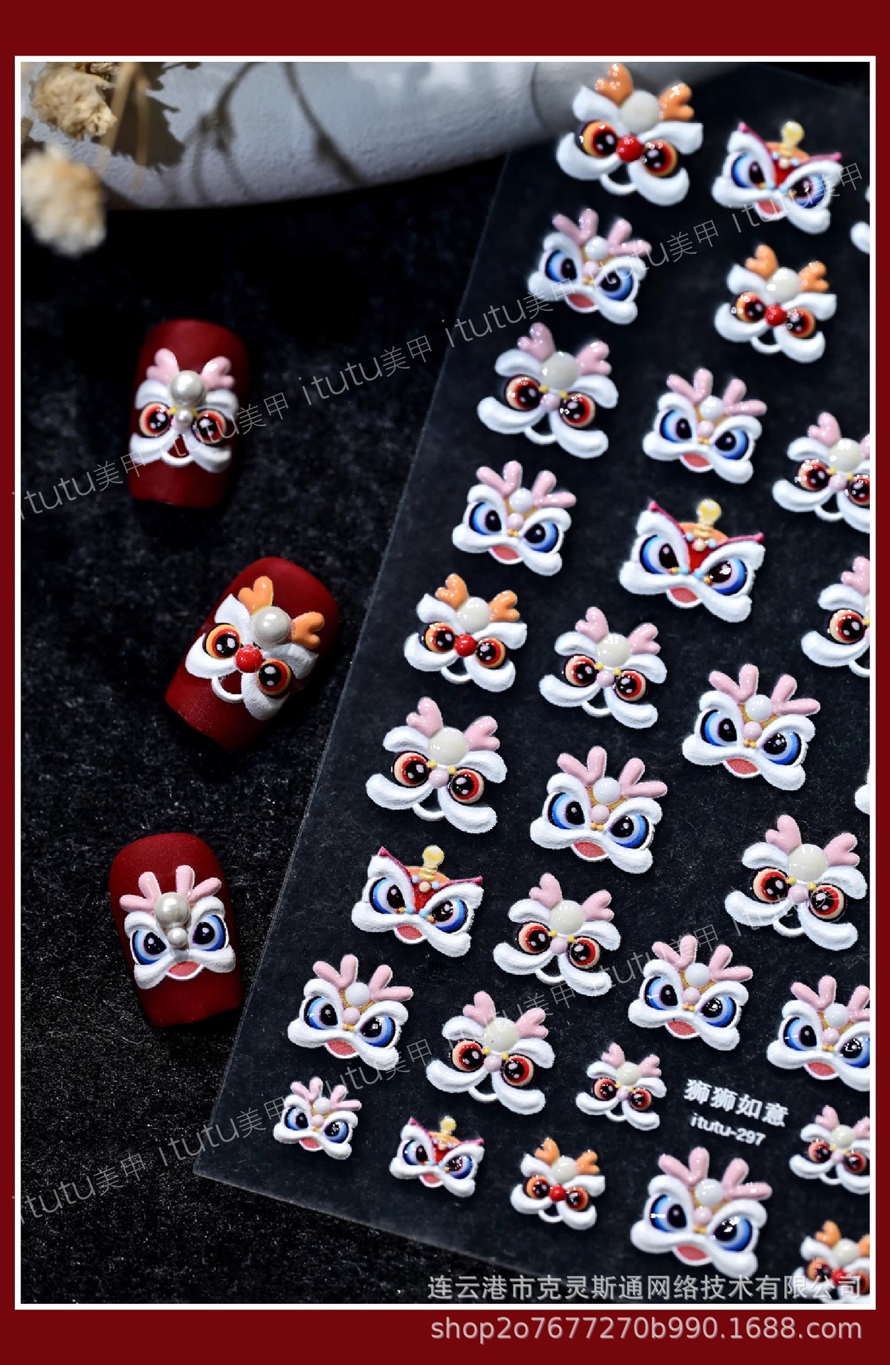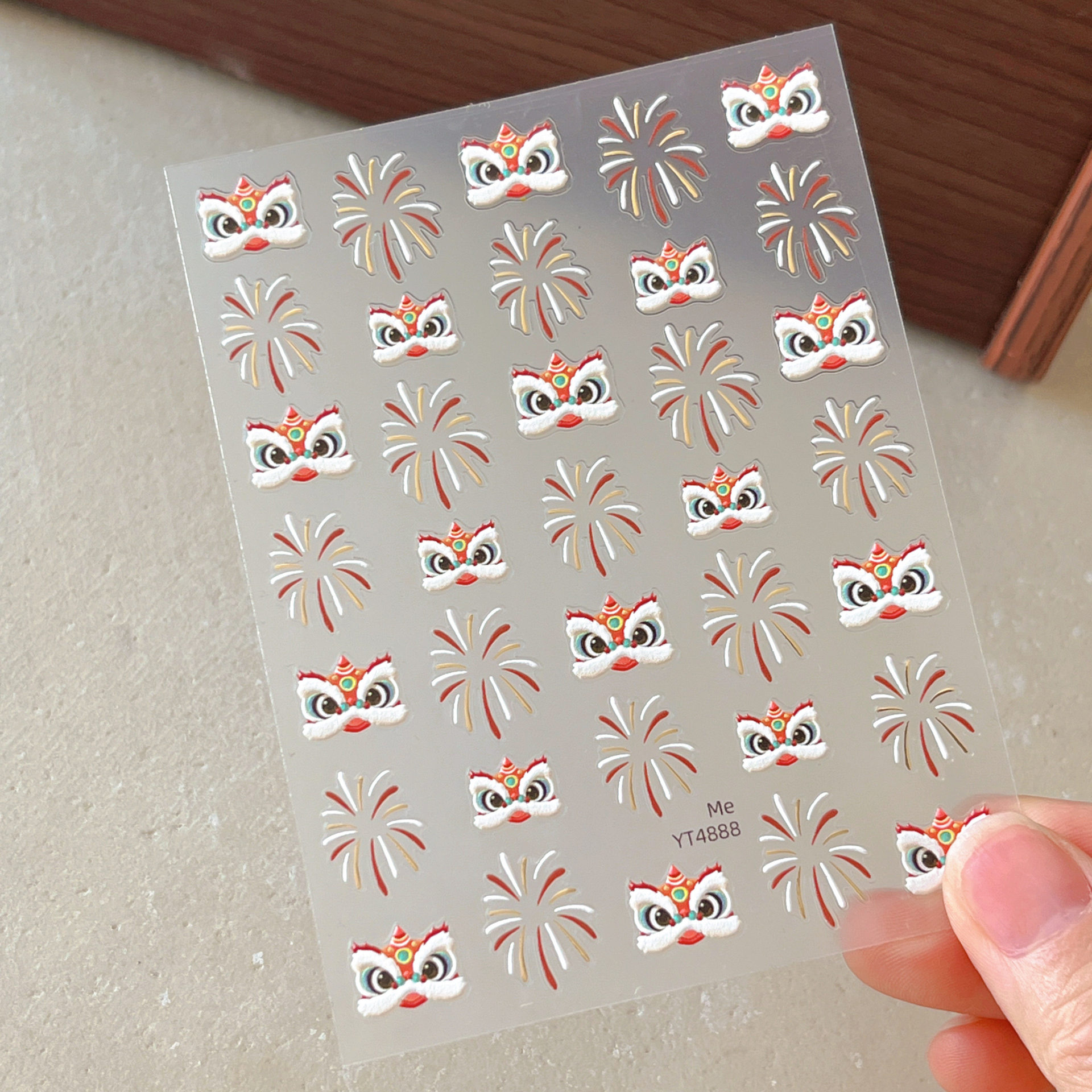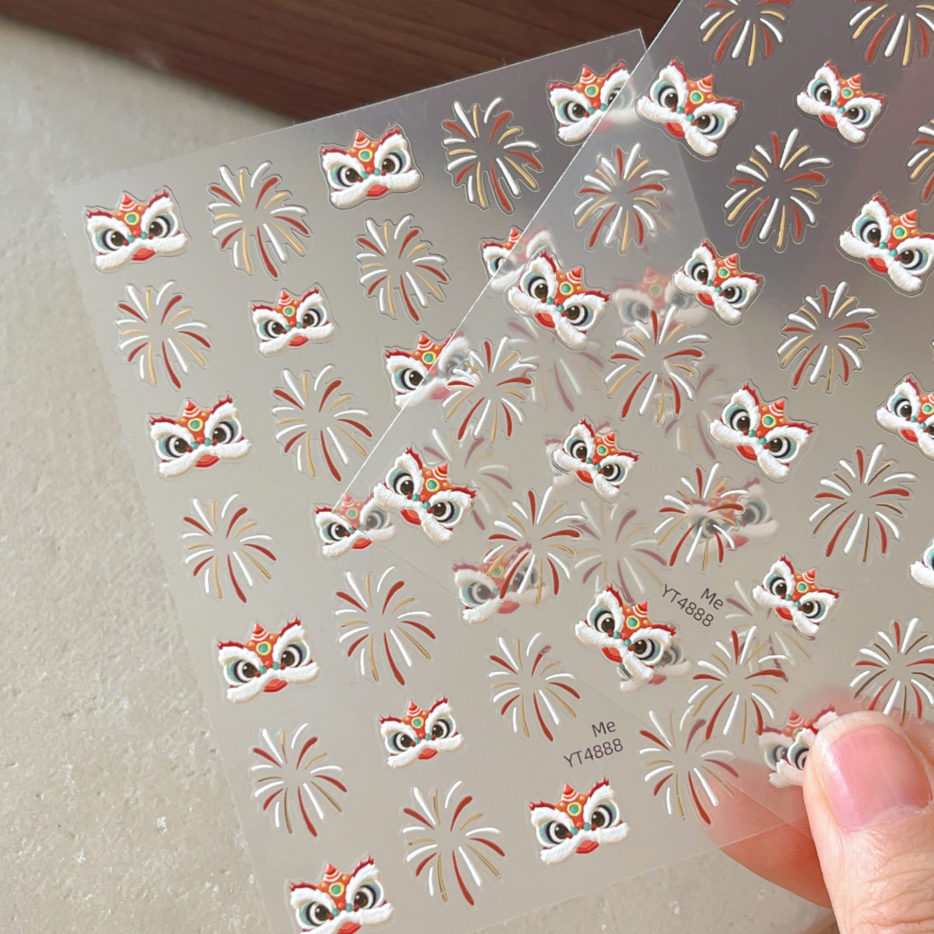 2025 신년 중국 스타일 작은 깨어난 사자 귀여운 네일 아트 스티커 행운의 사자 춤 양각 네일 장식스토어 가기
