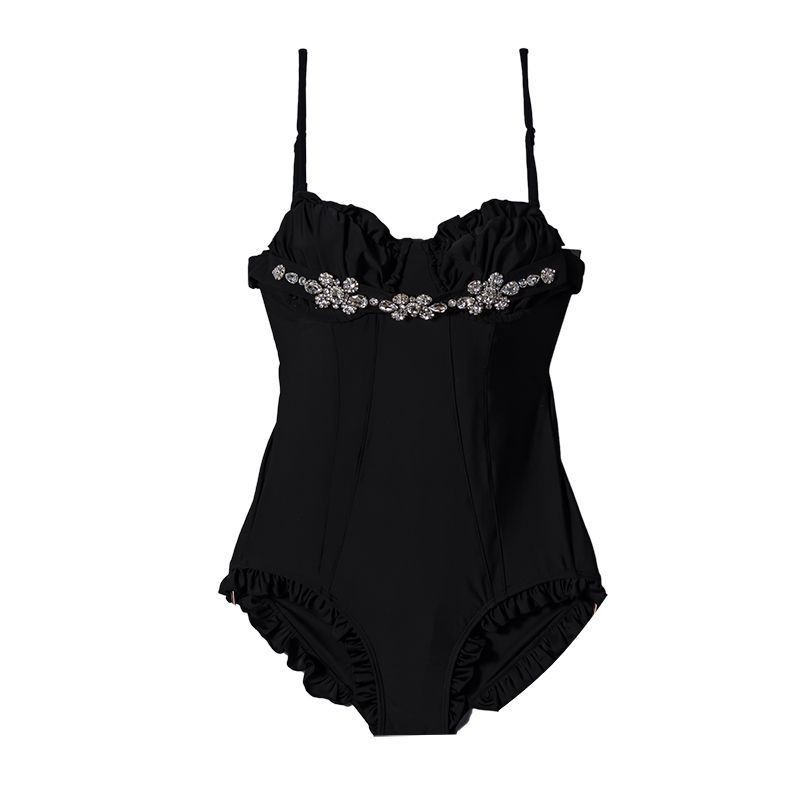 프랑스 스타일 핫걸 슬림핏 다이아몬드 장식 튜브탑 스트랩 원피스 수영복 여성용 작은 가슴 푸쉬업 순수 섹시 스타일