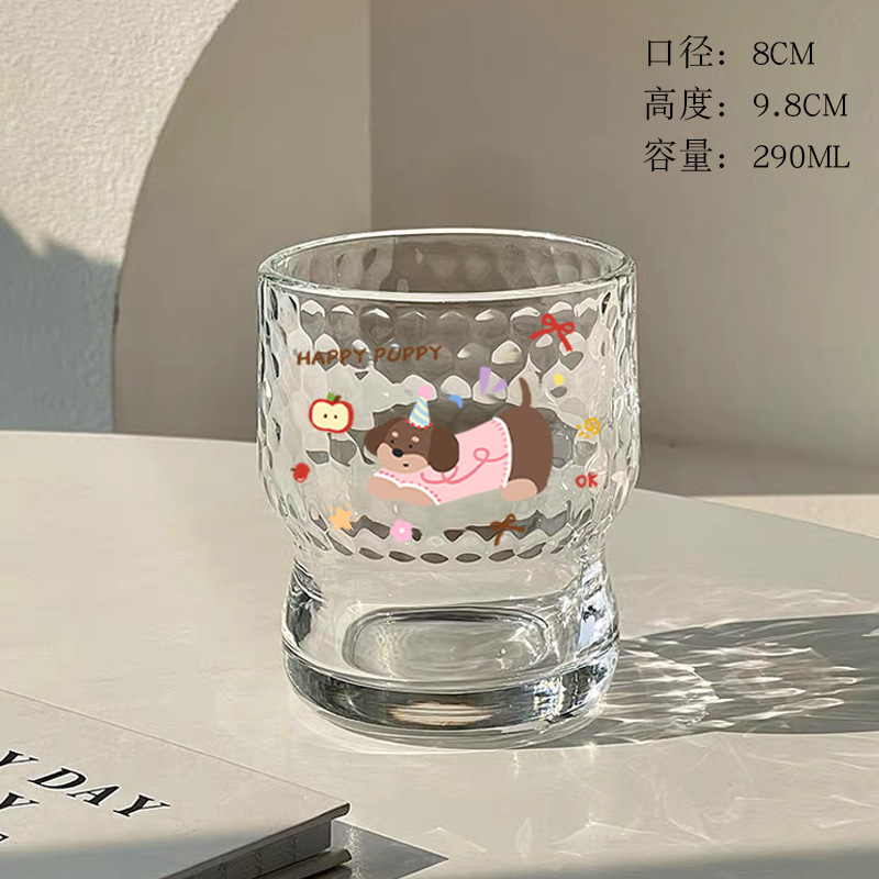 • 해머드 라운드 컵 - 귀여운 핑크색 강아지 스티커 [290ml]