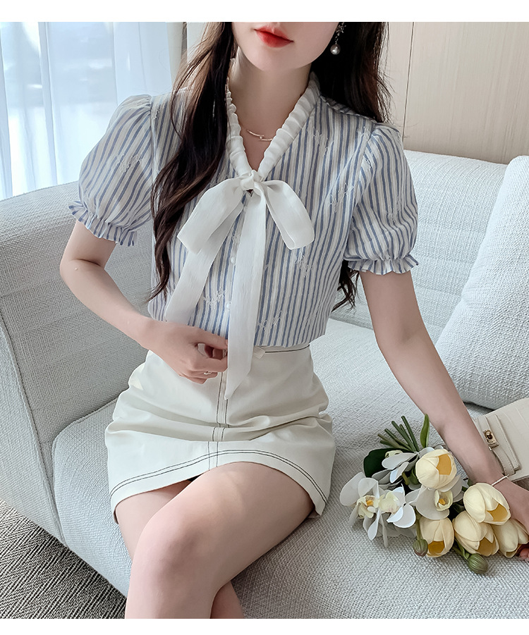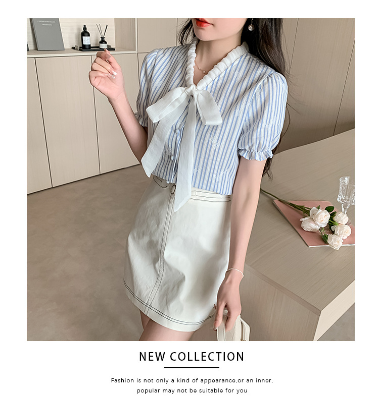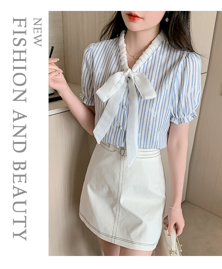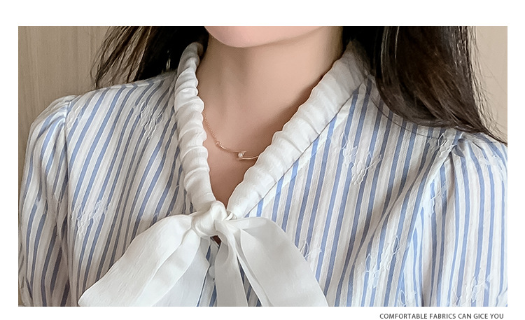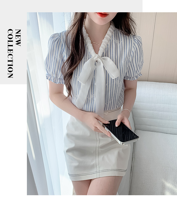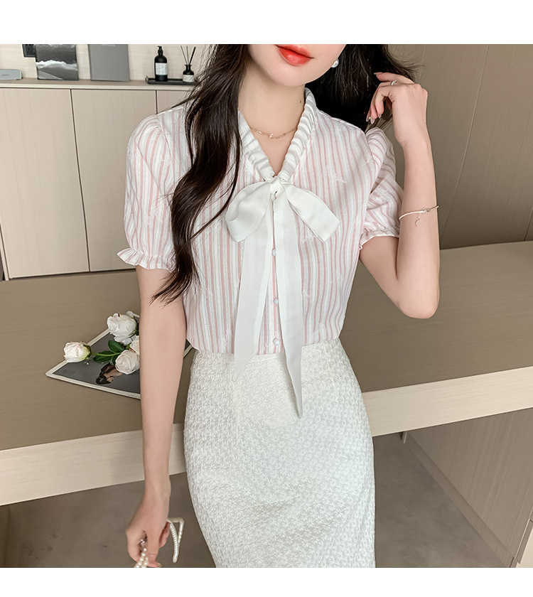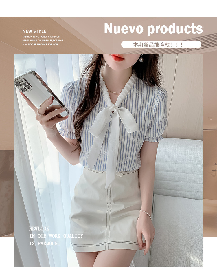 여성 여름 고급 감성 연령 감소 패션 새로운 쉬폰 전문 리본 셔츠 기질 탑 셔츠 여성 여름 트렌드스토어 가기