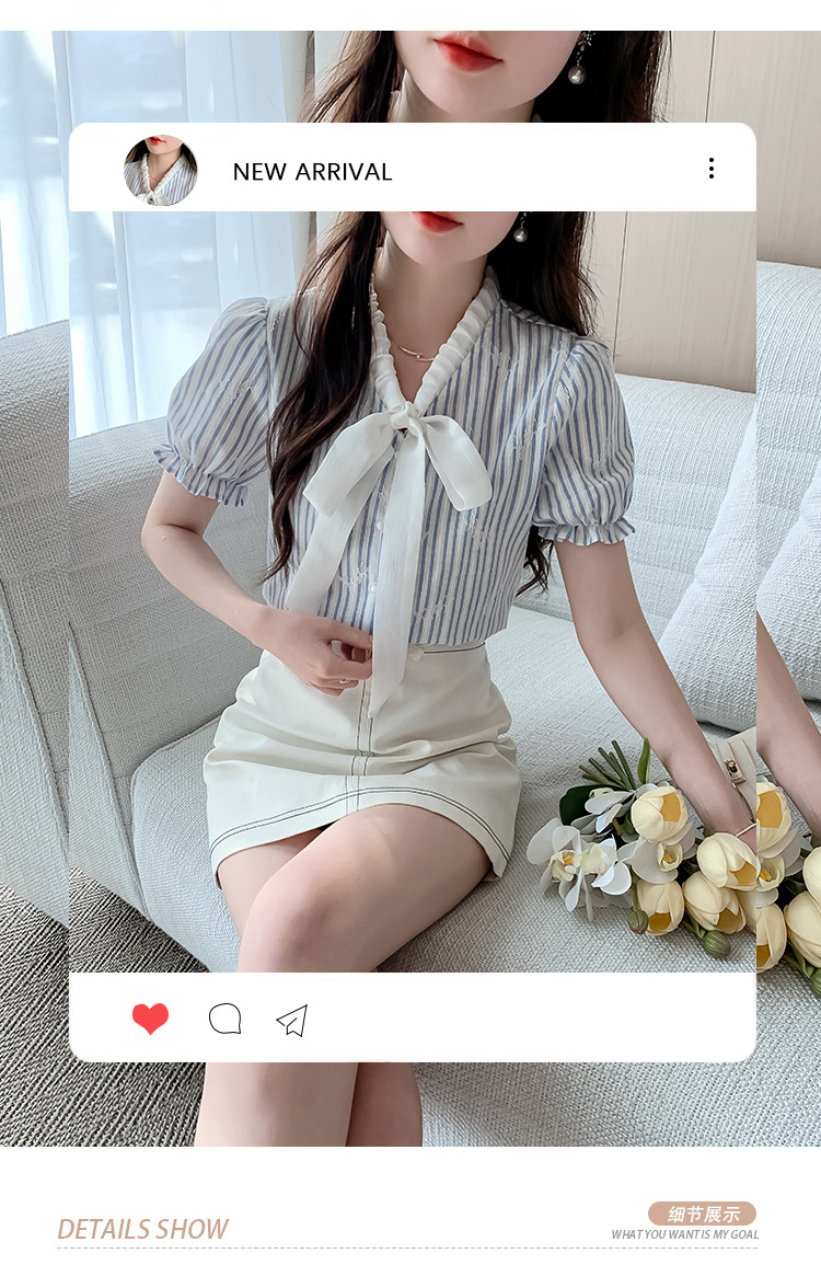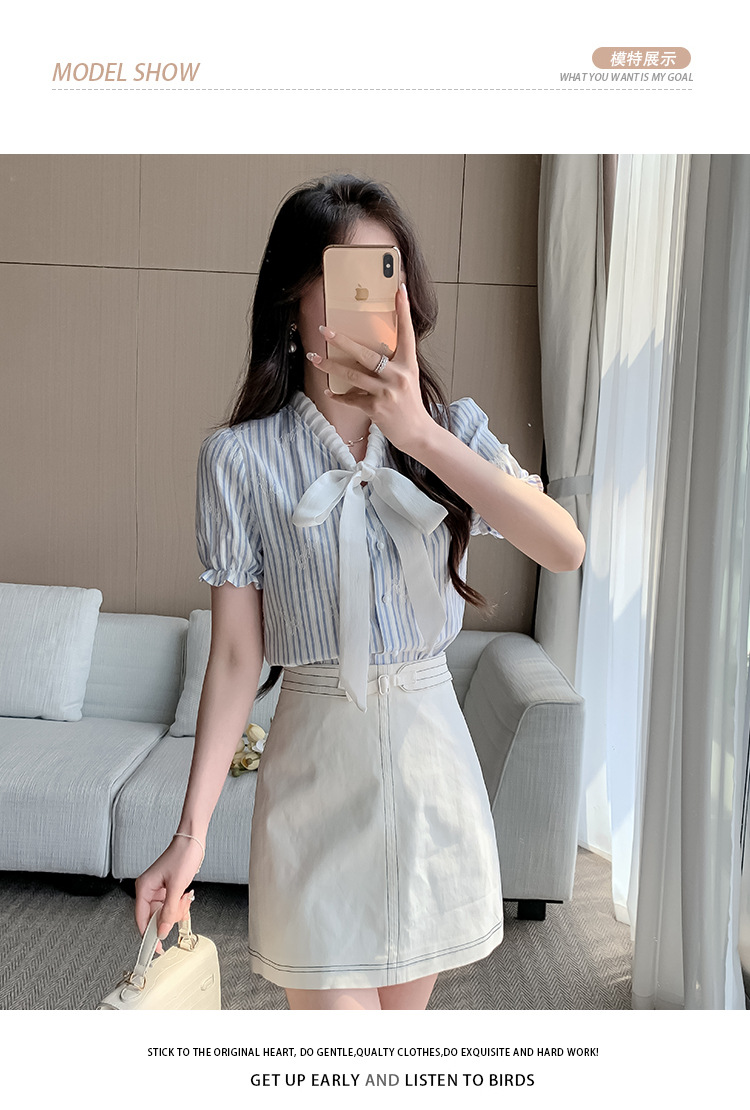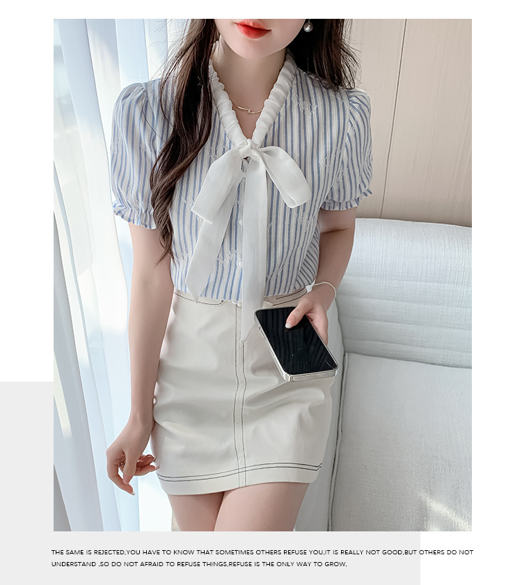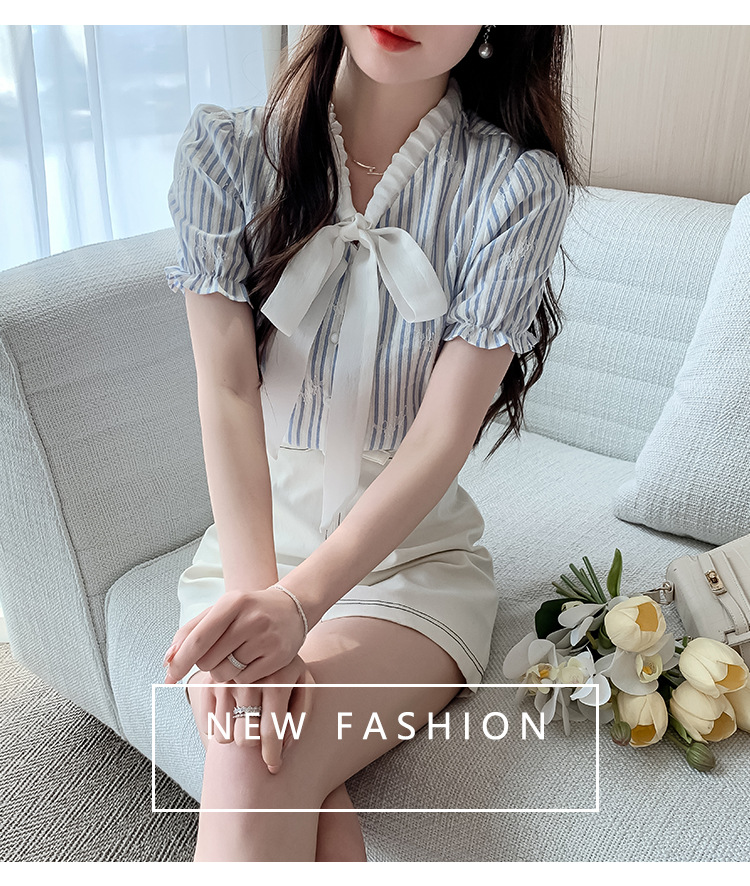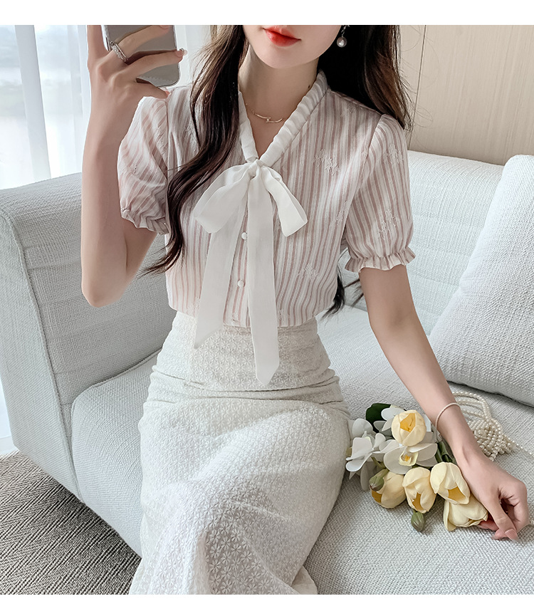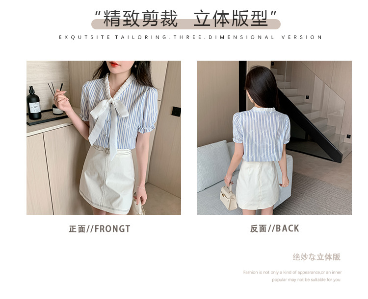 여성 여름 고급 감성 연령 감소 패션 새로운 쉬폰 전문 리본 셔츠 기질 탑 셔츠 여성 여름 트렌드스토어 가기