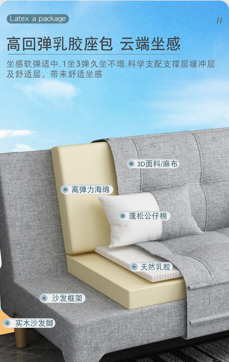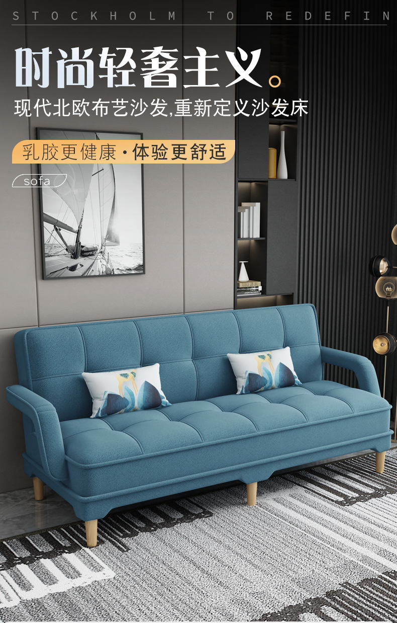 소파 베드 이중 목적 라텍스 접이식 소파 작은 아파트 거실 더블 또는 3인용 다기능 분리 및 세탁 가능한 패브릭 간단한 소파 g&