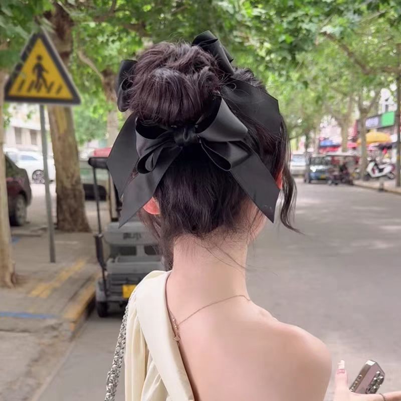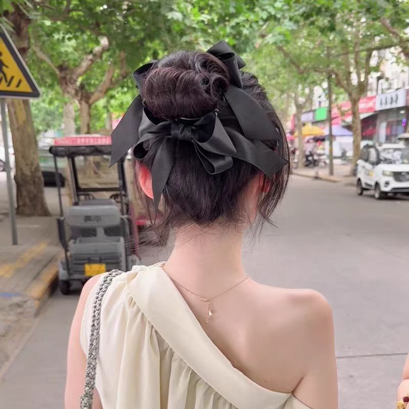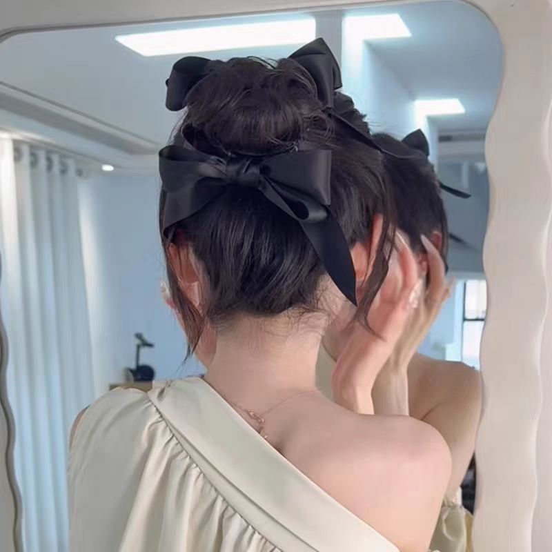 새로운 대형 발레 스타일 입체 리본 양면 볼 헤드 클립 헤어 클립 로우 타이 하이 포니테일