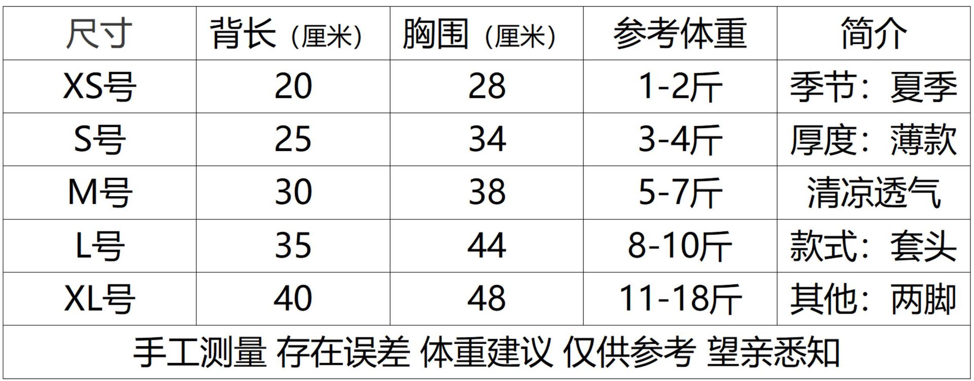 • XS 등길이 20cm (권장 0.5-1.0kg)