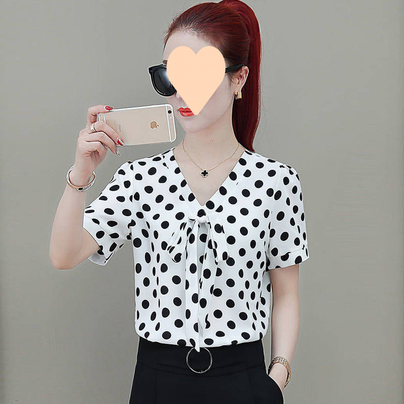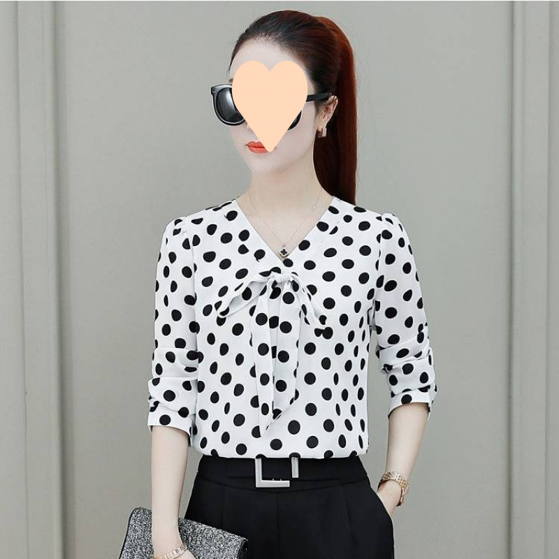 2025 봄 여름 한국 스타일 칼라 폴카 도트 프린트 셔츠 여성 긴팔/반팔 쉬폰 셔츠 탑 여성용 바닥 셔츠
