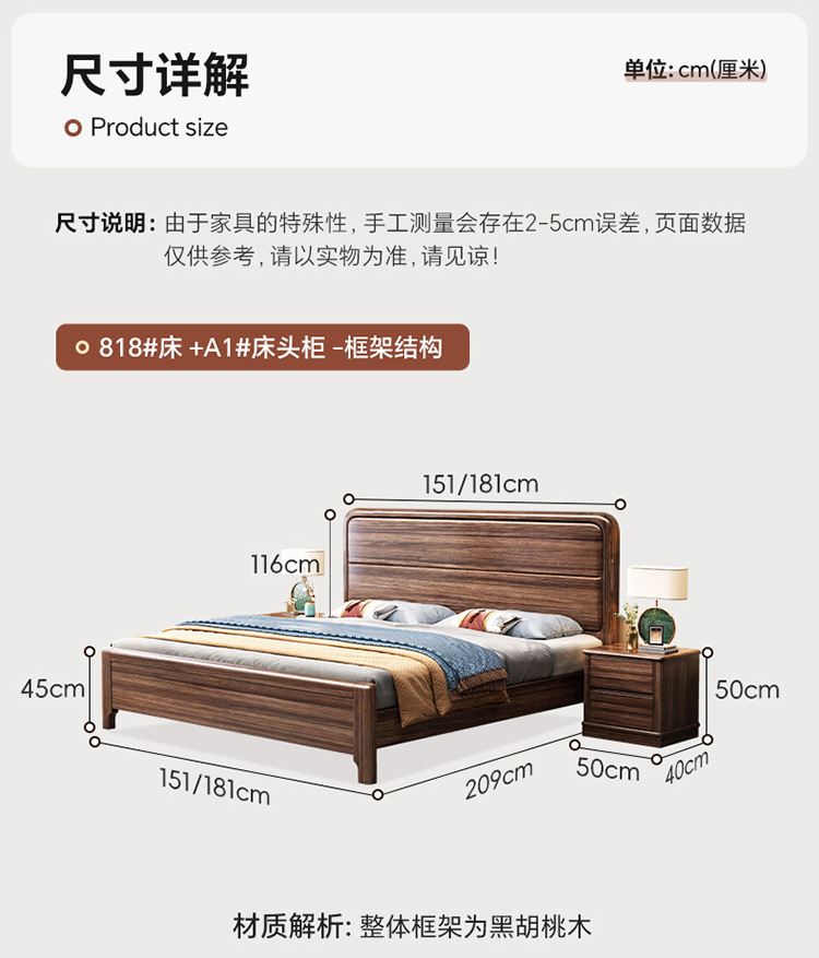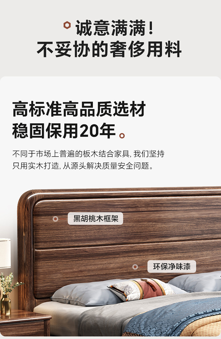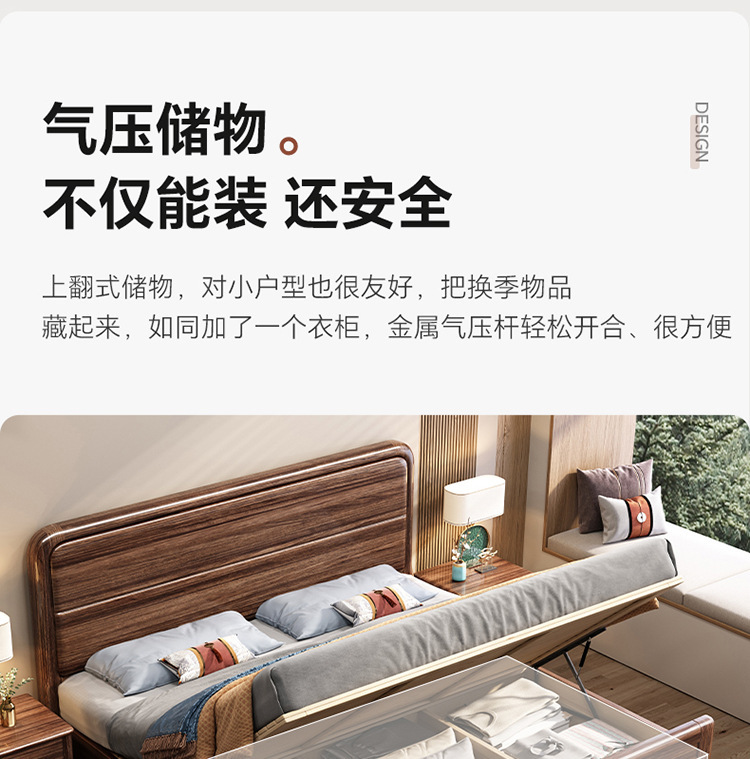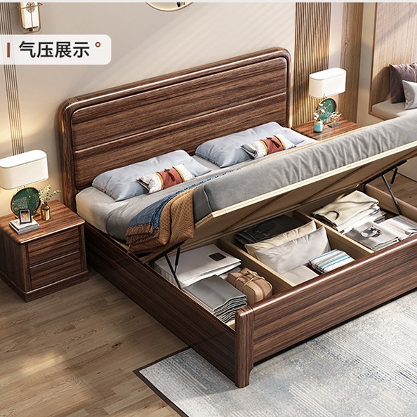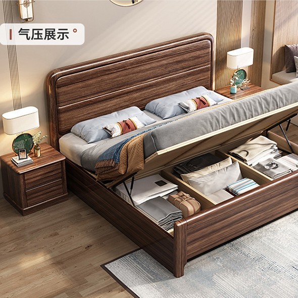 작은 가족 침실을 위한 검은 호두나무 원목 침대 1.5m 침대 가볍고 고급스러운 분위기의 하이박스 수납 1.8m 마스터 침실 웨딩 침대스토어 가기