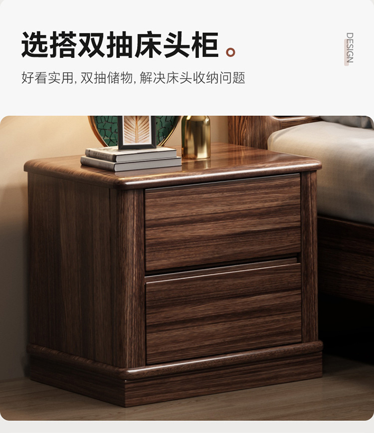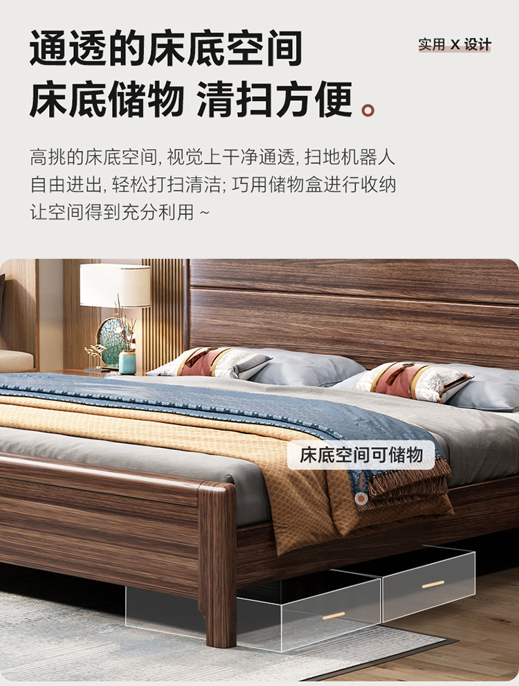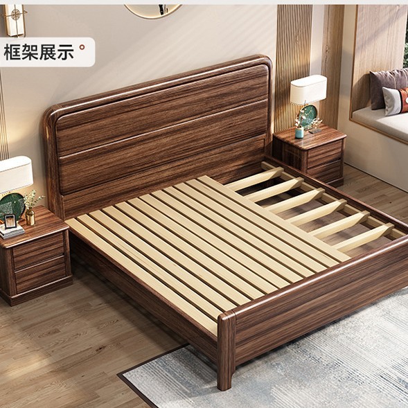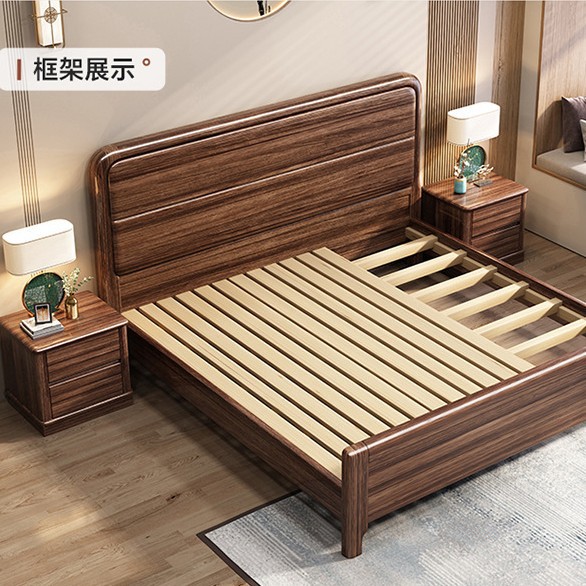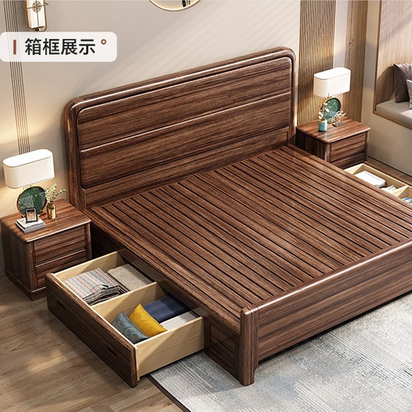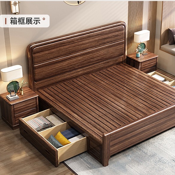 작은 가족 침실을 위한 검은 호두나무 원목 침대 1.5m 침대 가볍고 고급스러운 분위기의 하이박스 수납 1.8m 마스터 침실 웨딩 침대