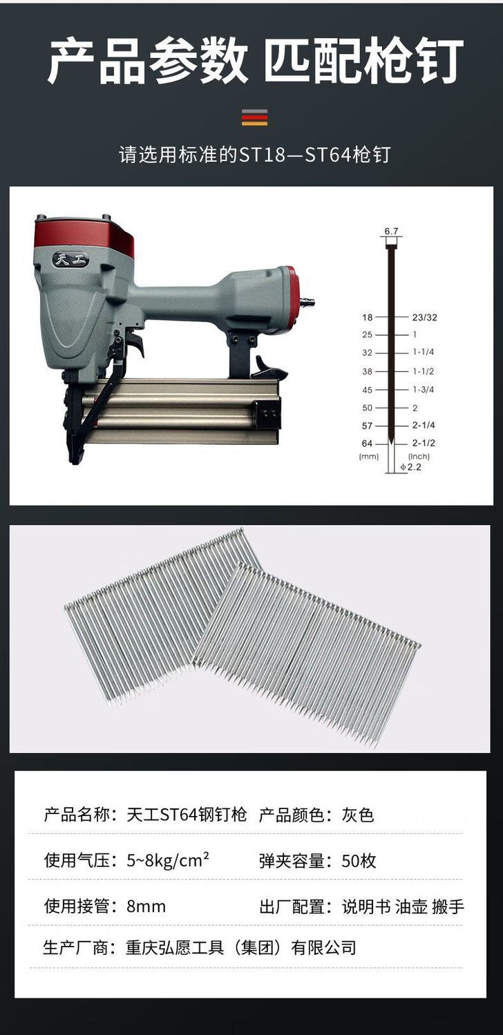 Hongyuan Tiangong 스틸 네일 건 확장 입 스틸 네일 목공 케이블 트레이 설치 스틸 네일 건 ST64 새로운 에어 네일 건