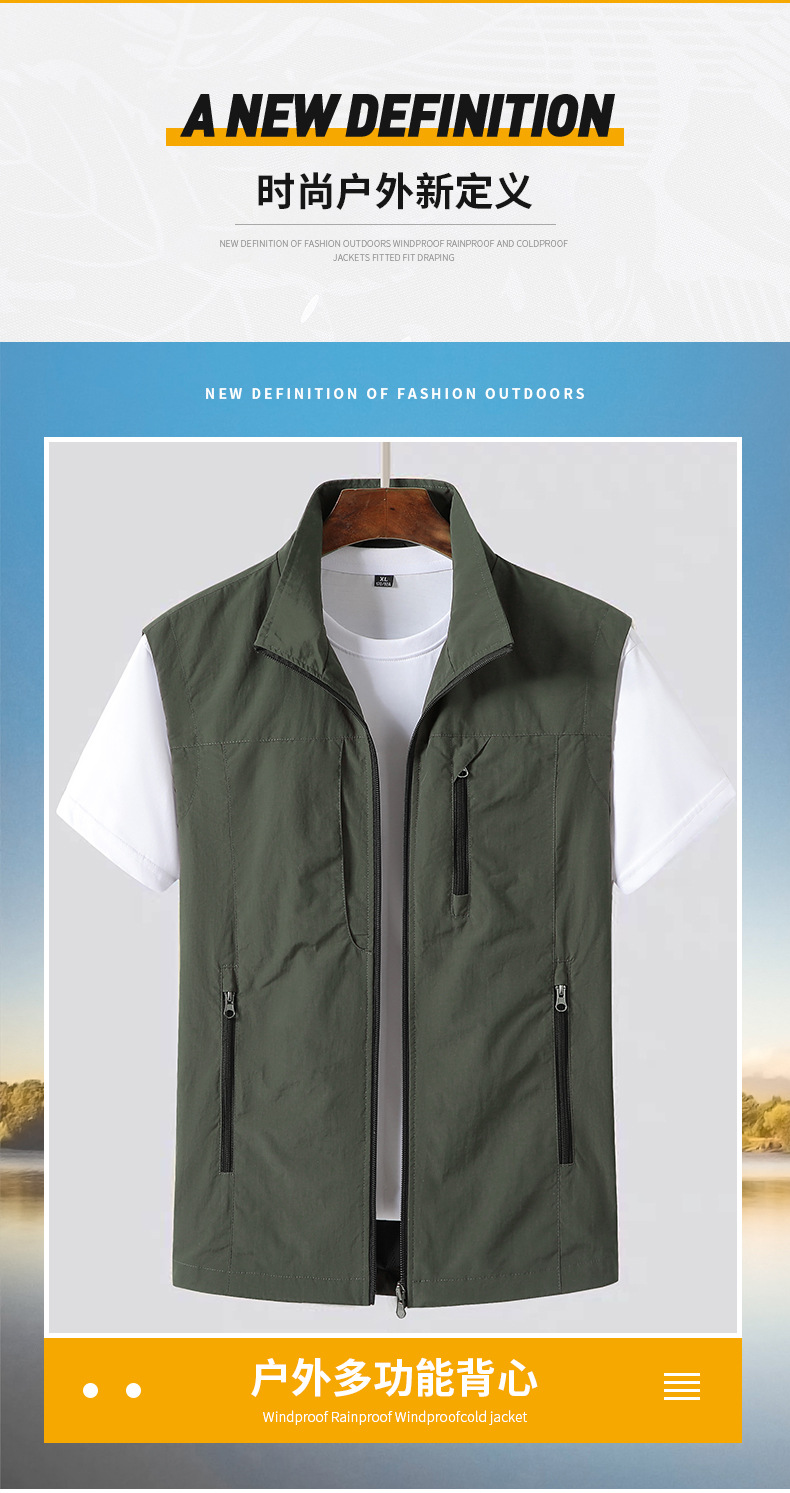새로운 스타일 조끼 남자 야외 레저 봄과 여름 사진 낚시 등산 옷깃 조끼 방수 재킷