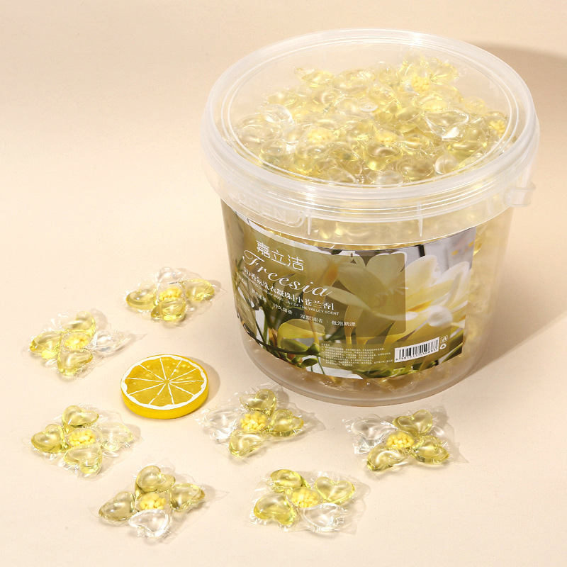 카멜리아 세탁 비즈 버킷 5-in-1 오래 지속되는 향기 부드러운 세탁 볼 강력한 오염 제거 농축 세탁 세제