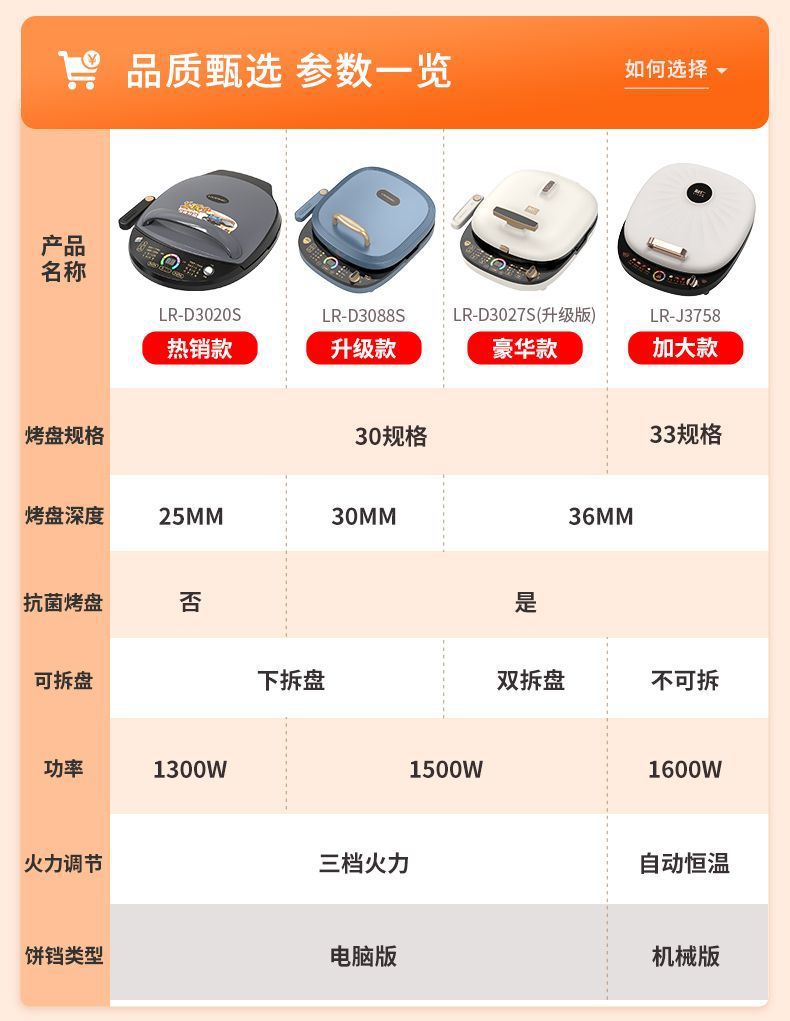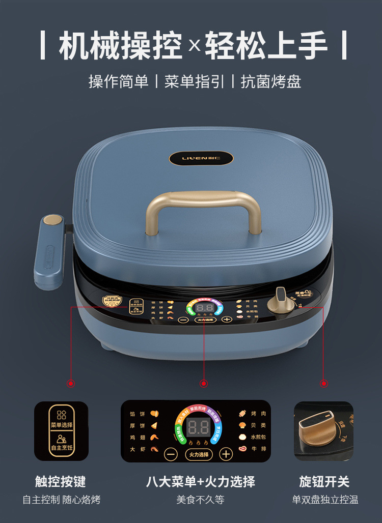 전기 팬케이크 팬, 가정용 양면 가열, 탈착식 및 세척 가능한 팬케이크 팬, 깊은 접시, 대형 바베큐 팬, 샌드위치 기계 공급망