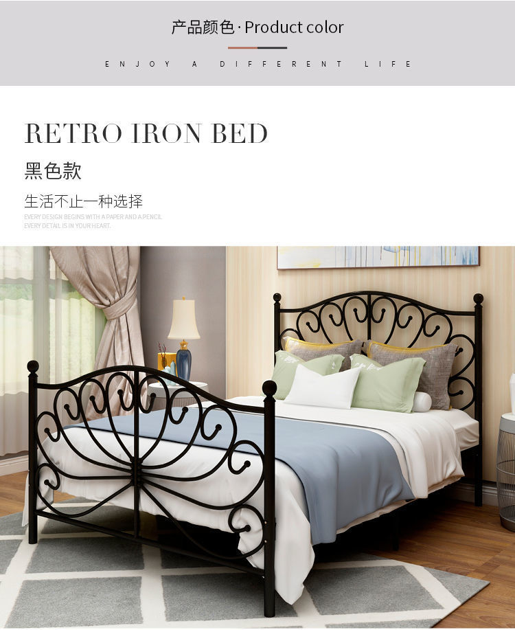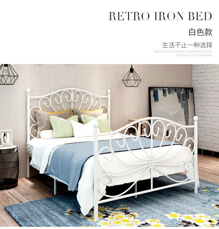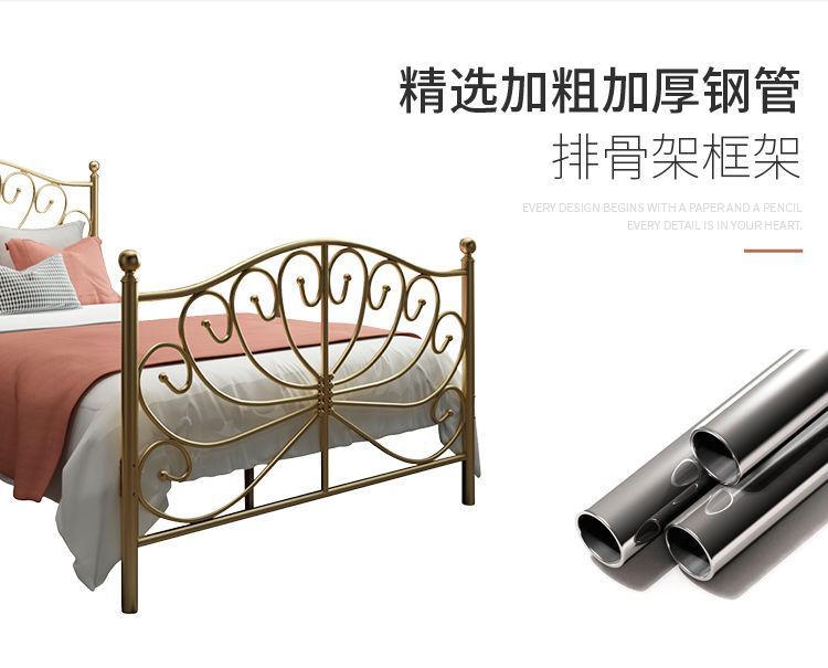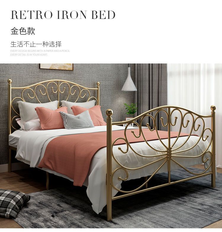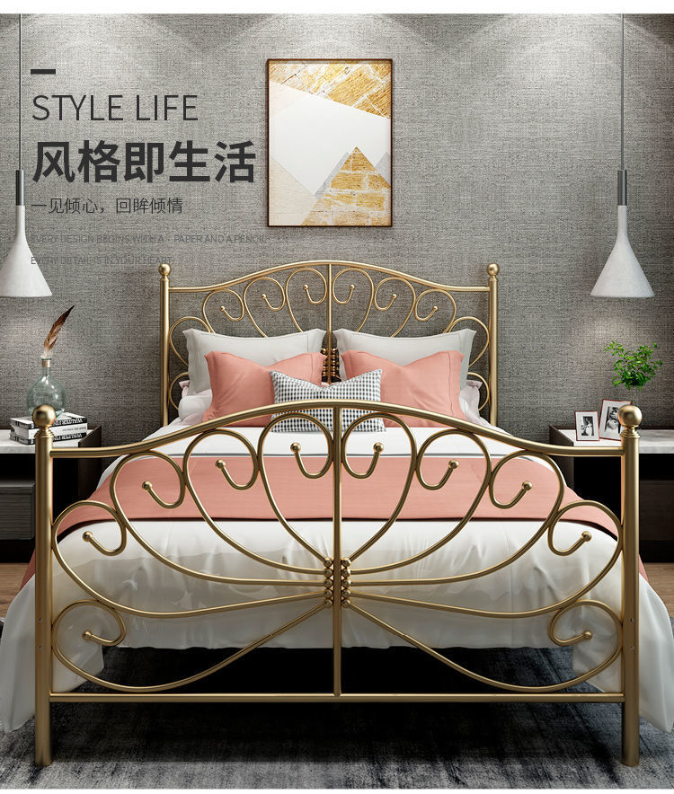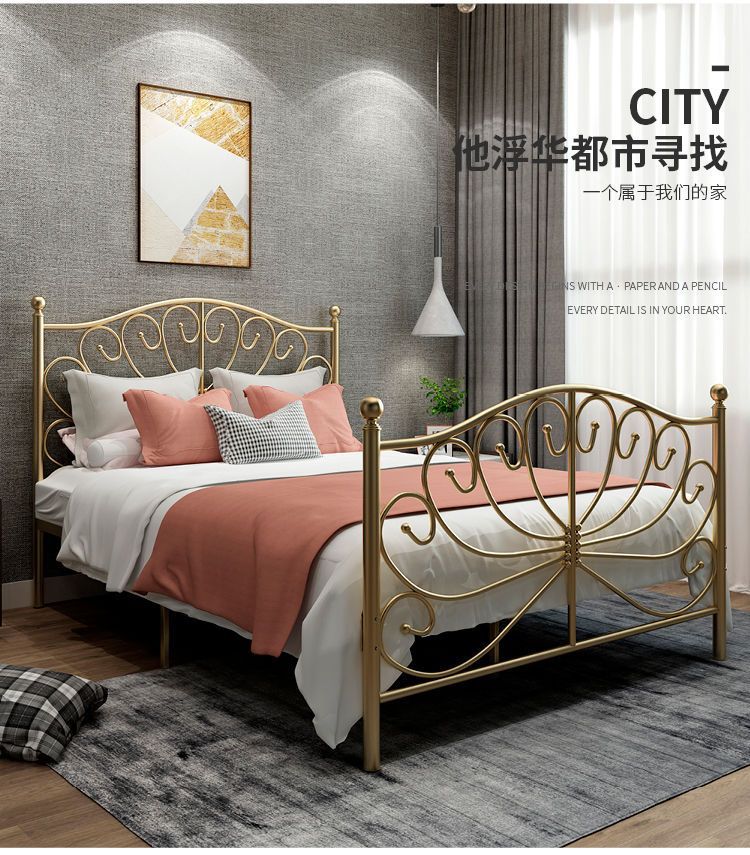 북유럽 스타일 인터넷 연예인 철제 침대 현대 간단한 공주 침대 두꺼운 철 침대 싱글 더블 침대 1.5 철 프레임 침대스토어 가기