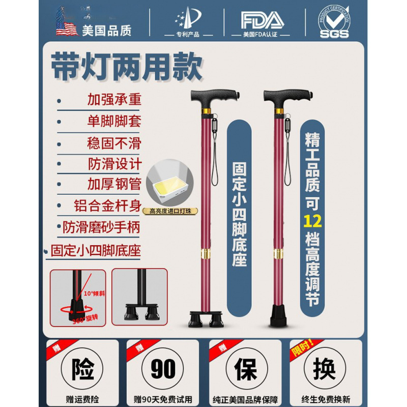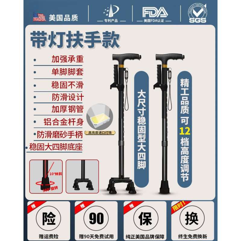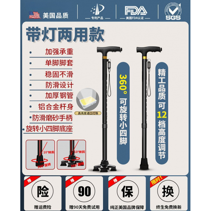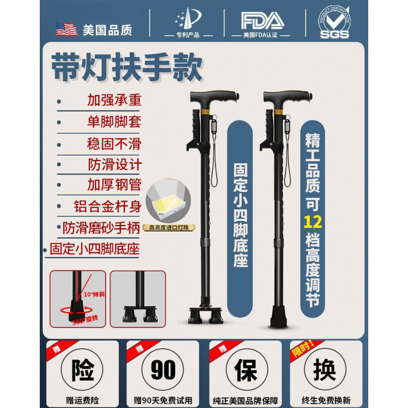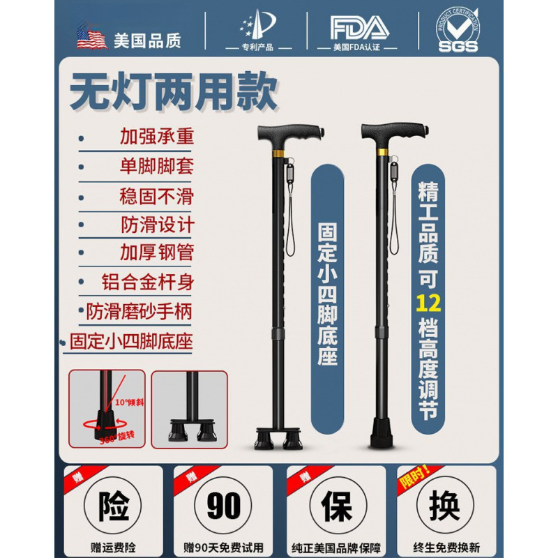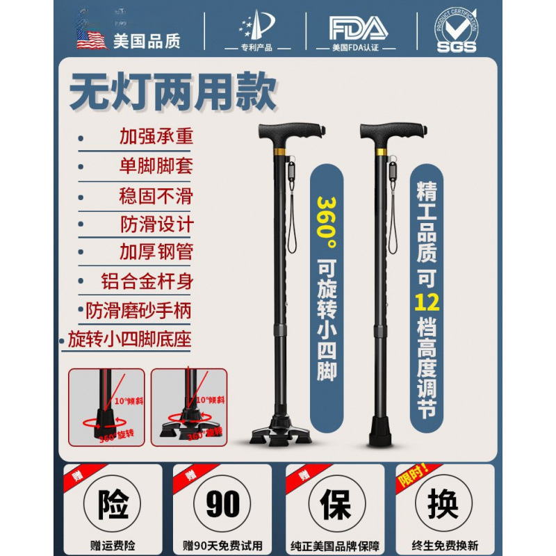 노인용 지팡이, 미끄럼 방지 지팡이, 노인용 지팡이 보행 보조기, 4발 지팡이, 지팡이, 텔레스코픽 다기능