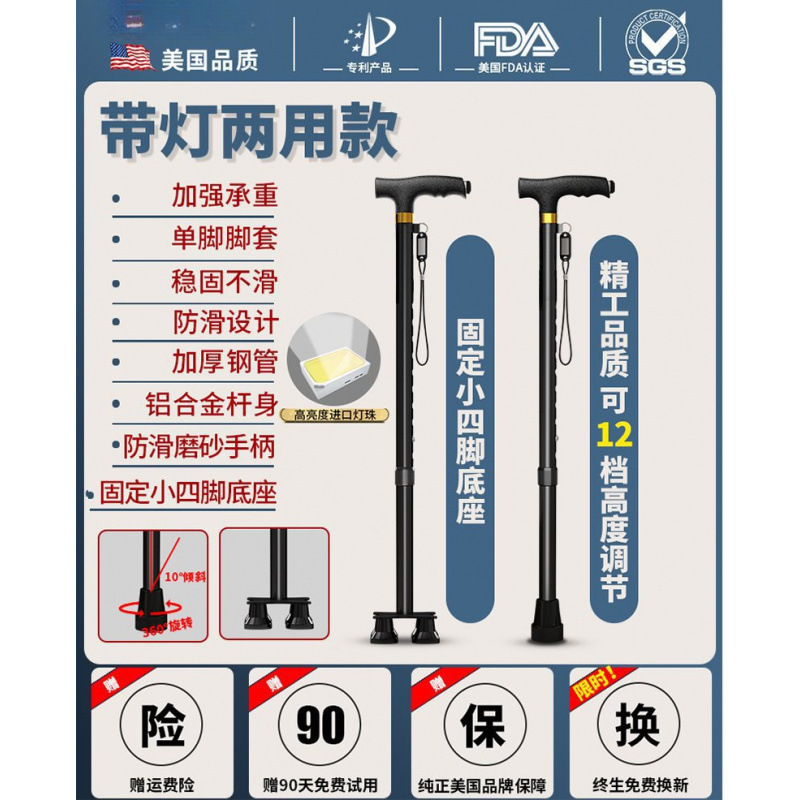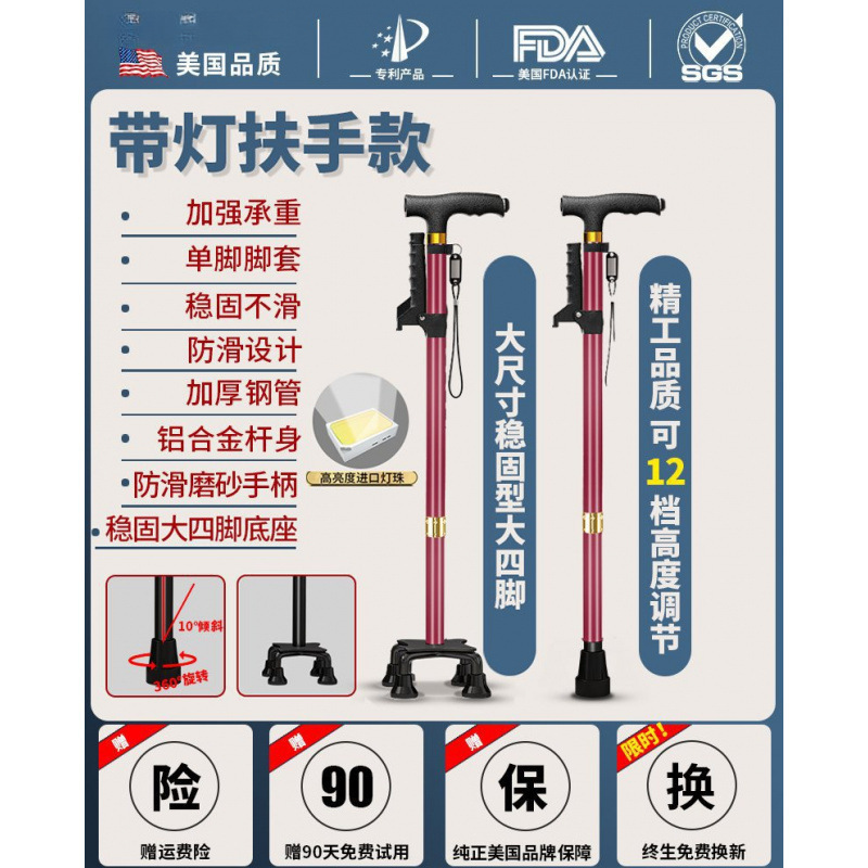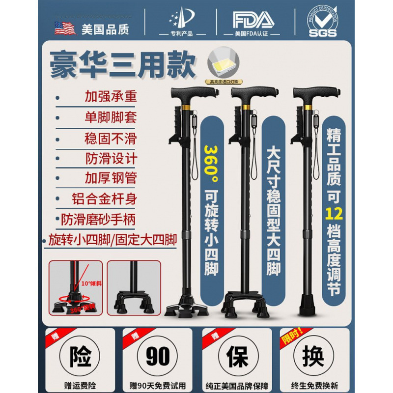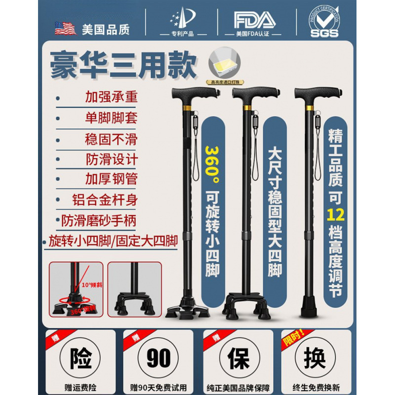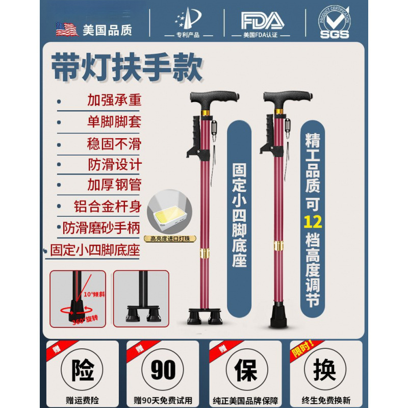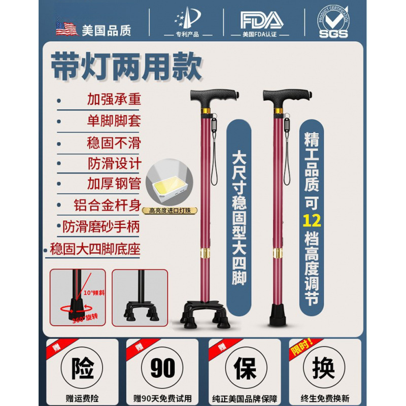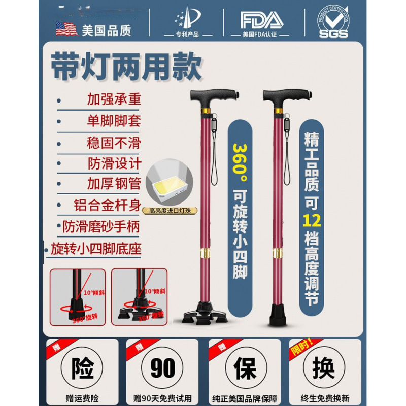 노인용 지팡이, 미끄럼 방지 지팡이, 노인용 지팡이 보행 보조기, 4발 지팡이, 지팡이, 텔레스코픽 다기능
