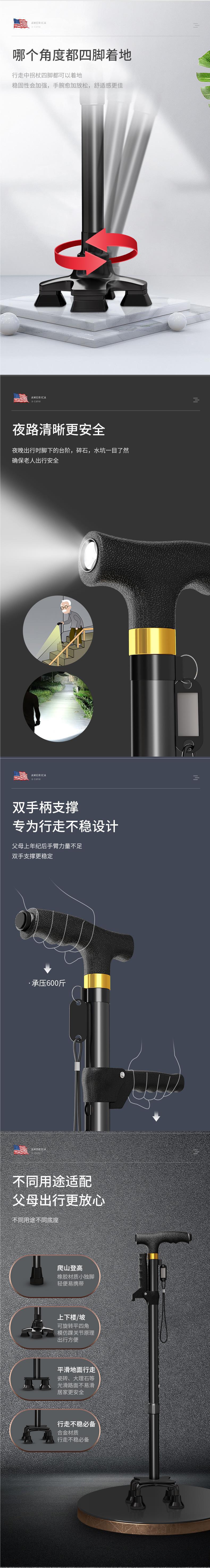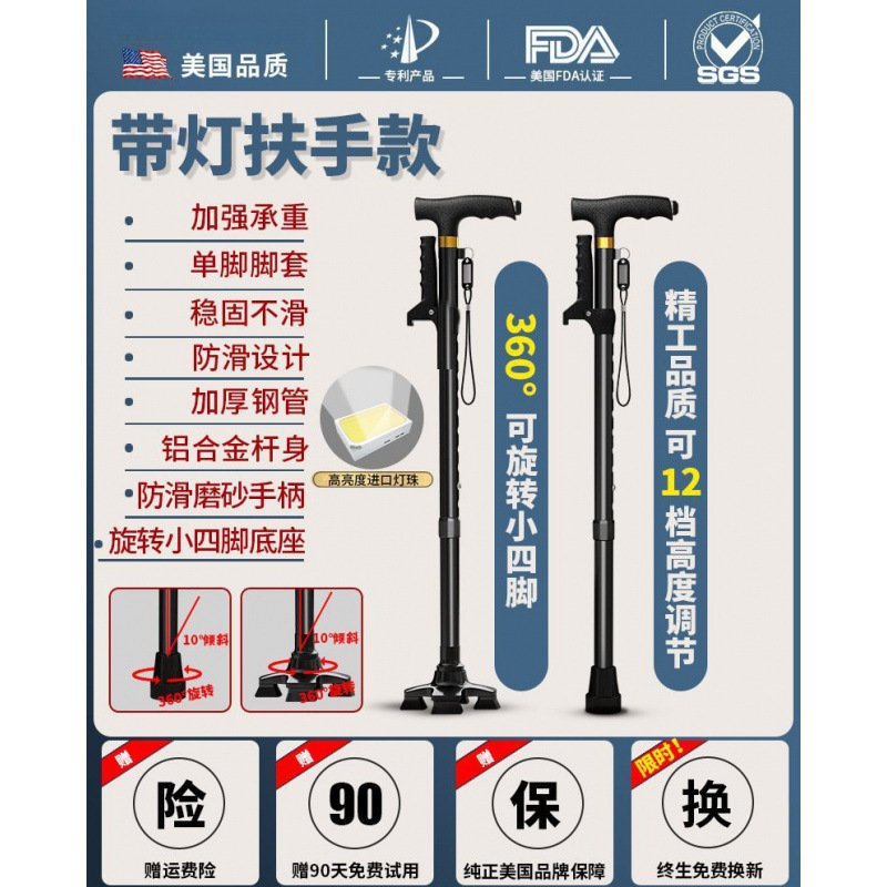 • 블랙 겸용 럭셔리(조명+미끄럼방지 마사지 손잡이) 싱글다리+회전 소형 네발