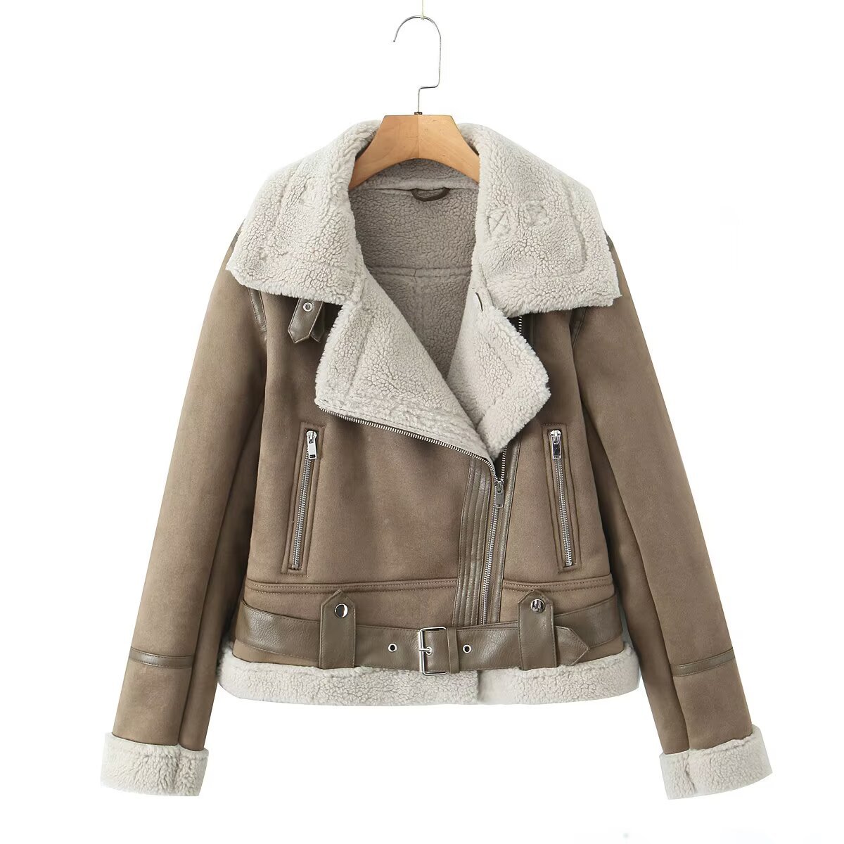 BSK&TRAF 여성 2025 여름 신작 레트로 사슴 가죽 벨벳 원피스 두꺼운 양복 칼라 재킷스토어 가기