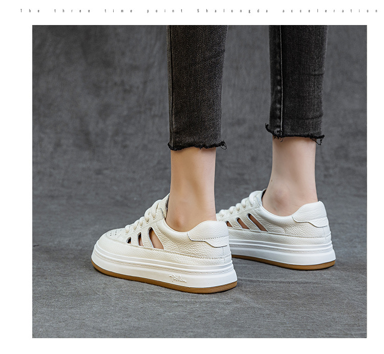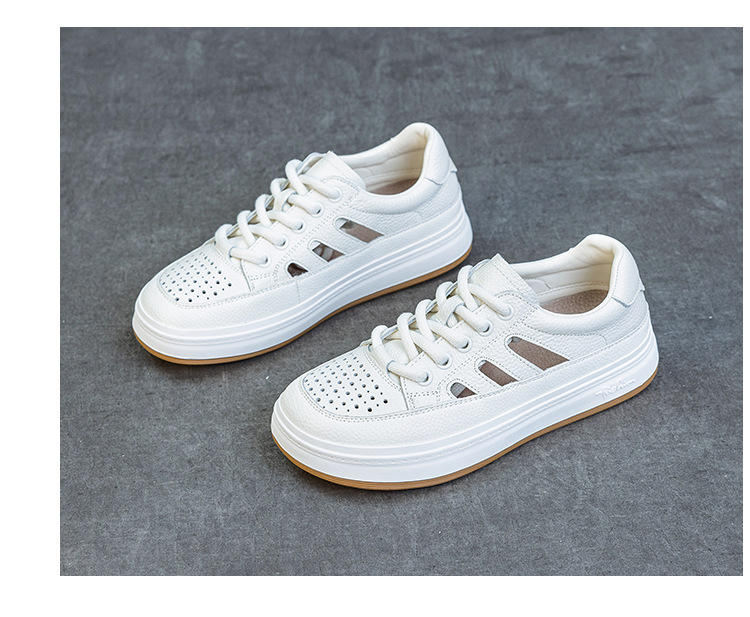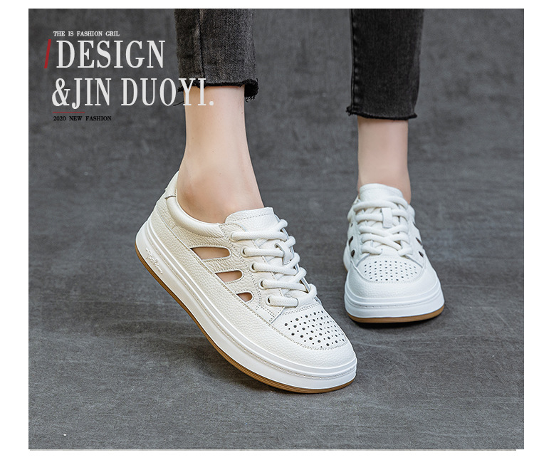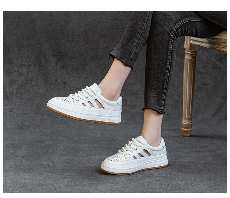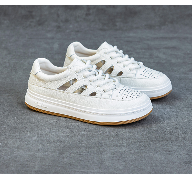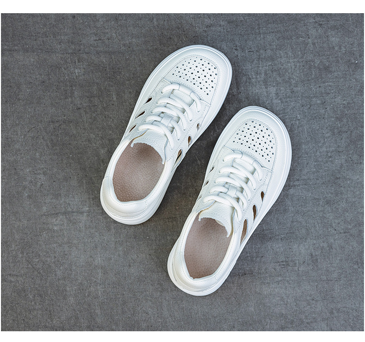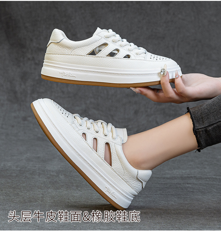 1층 소가죽 중공 발가락 캐주얼 화이트 슈즈 여름 신작 다용도 스포츠 스니커즈 플랫 바닥 심플하고 다용도