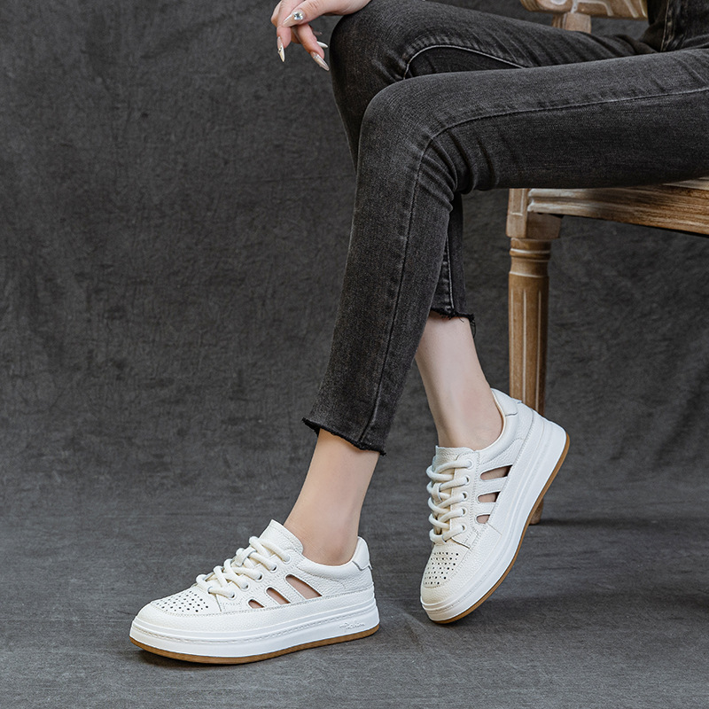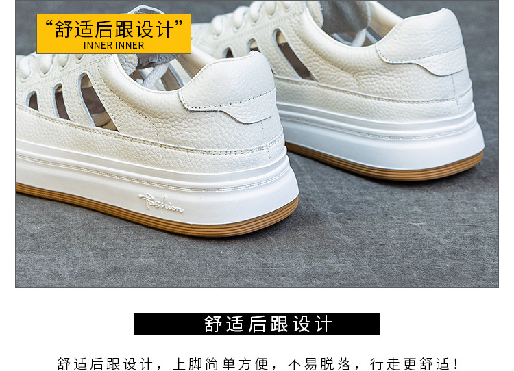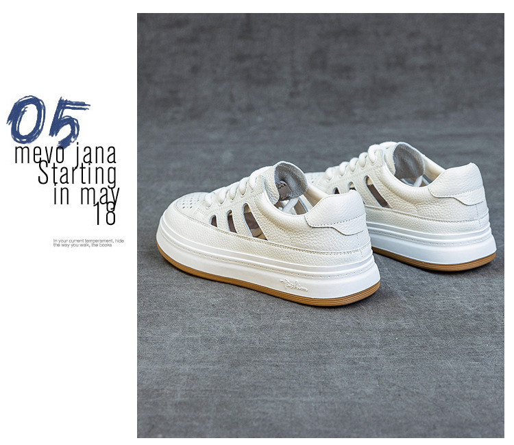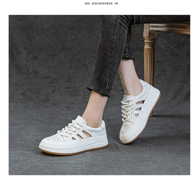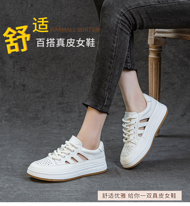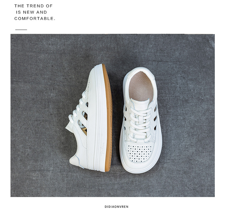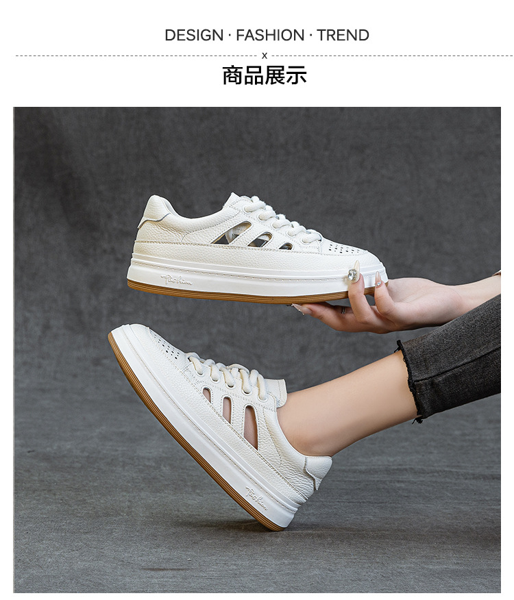 1층 소가죽 중공 발가락 캐주얼 화이트 슈즈 여름 신작 다용도 스포츠 스니커즈 플랫 바닥 심플하고 다용도