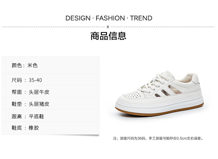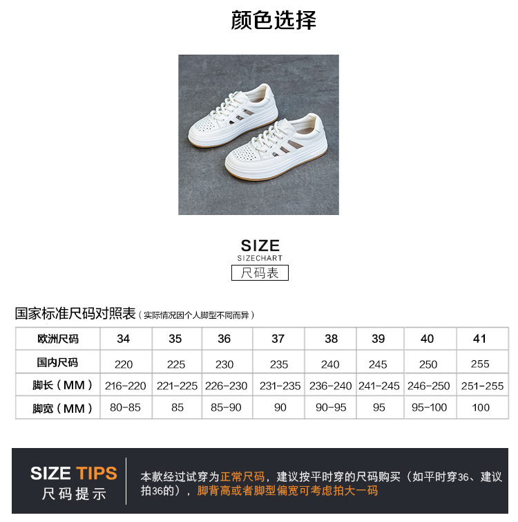 1층 소가죽 중공 발가락 캐주얼 화이트 슈즈 여름 신작 다용도 스포츠 스니커즈 플랫 바닥 심플하고 다용도스토어 가기