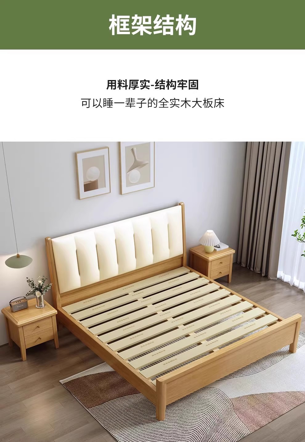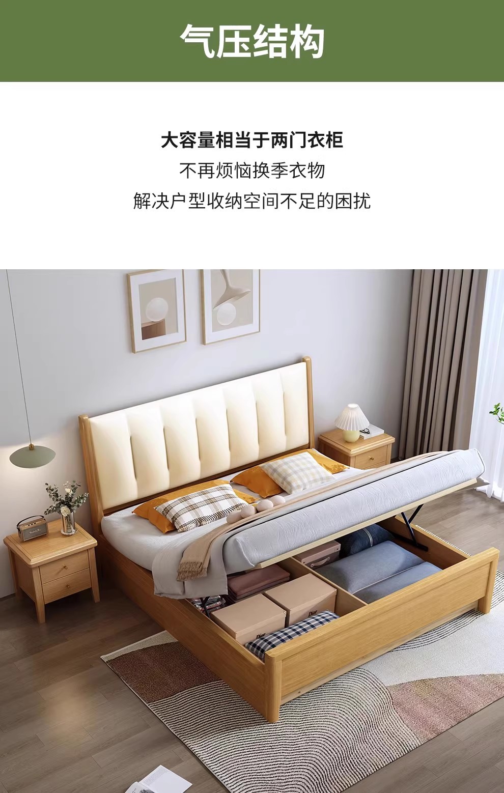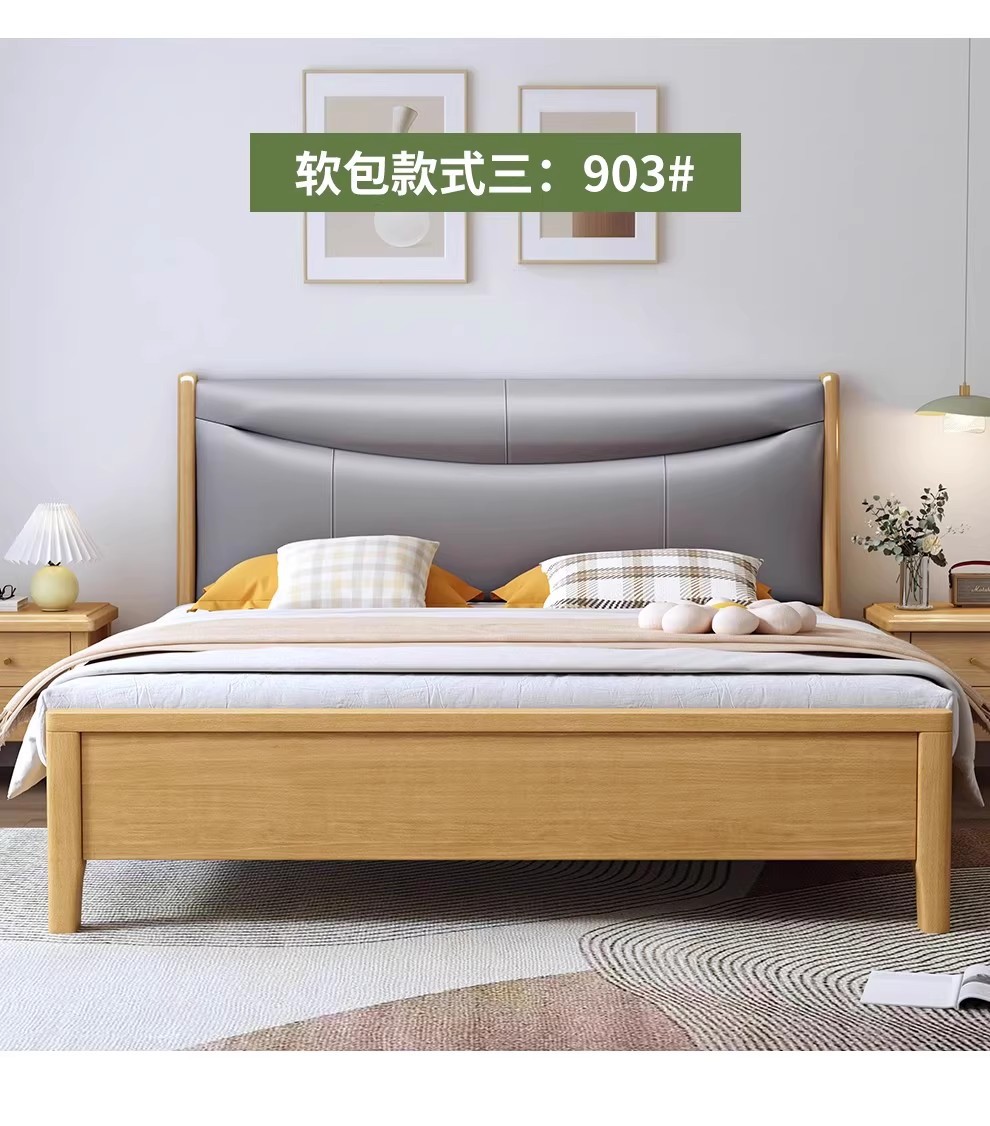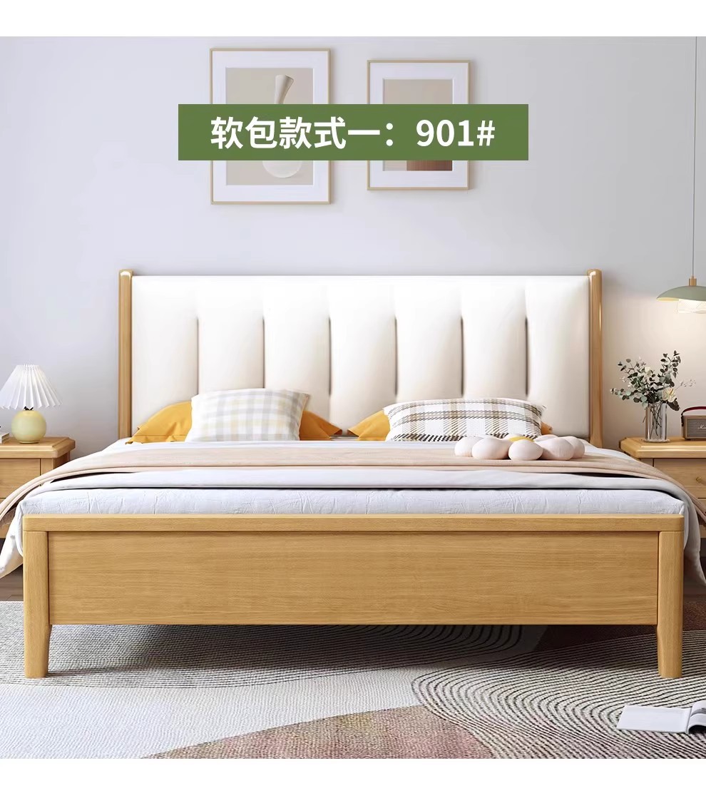 너도밤나무 원목 침대 모던 심플 마스터 침실 1.8m 더블 침대 1.5m 통나무 침대 소프트 등받이 침실 수납 웨딩 침대스토어 가기