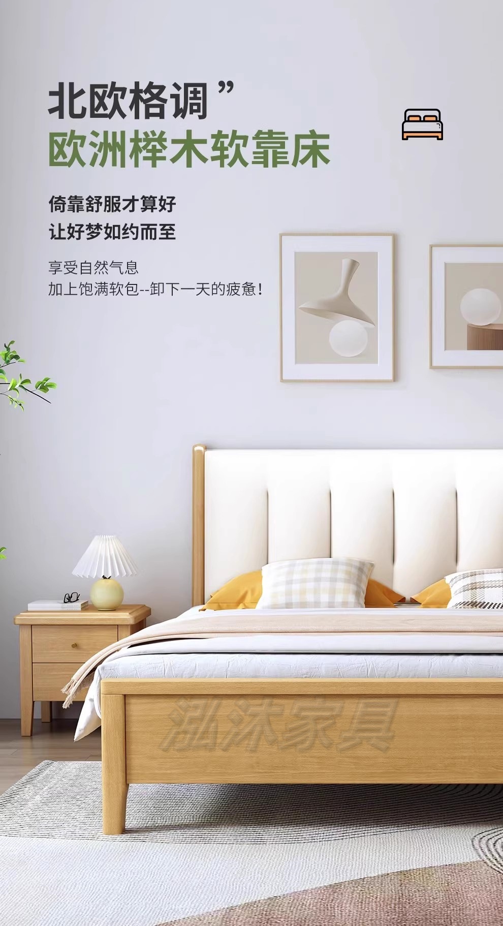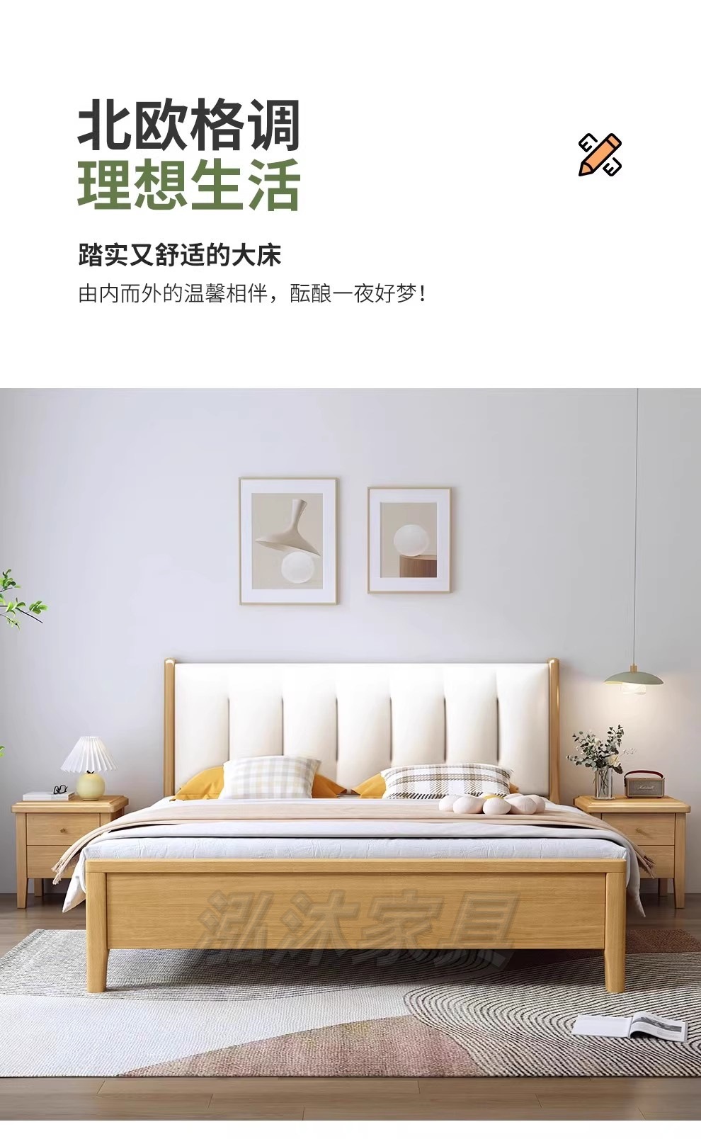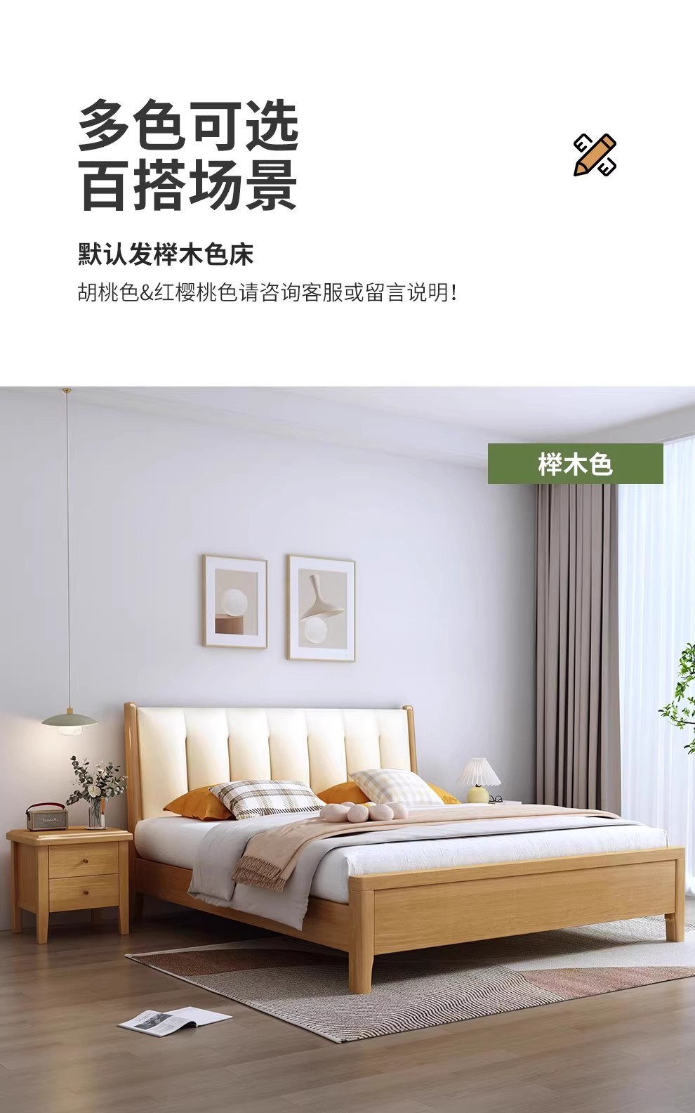 너도밤나무 원목 침대 모던 심플 마스터 침실 1.8m 더블 침대 1.5m 통나무 침대 소프트 등받이 침실 수납 웨딩 침대스토어 가기