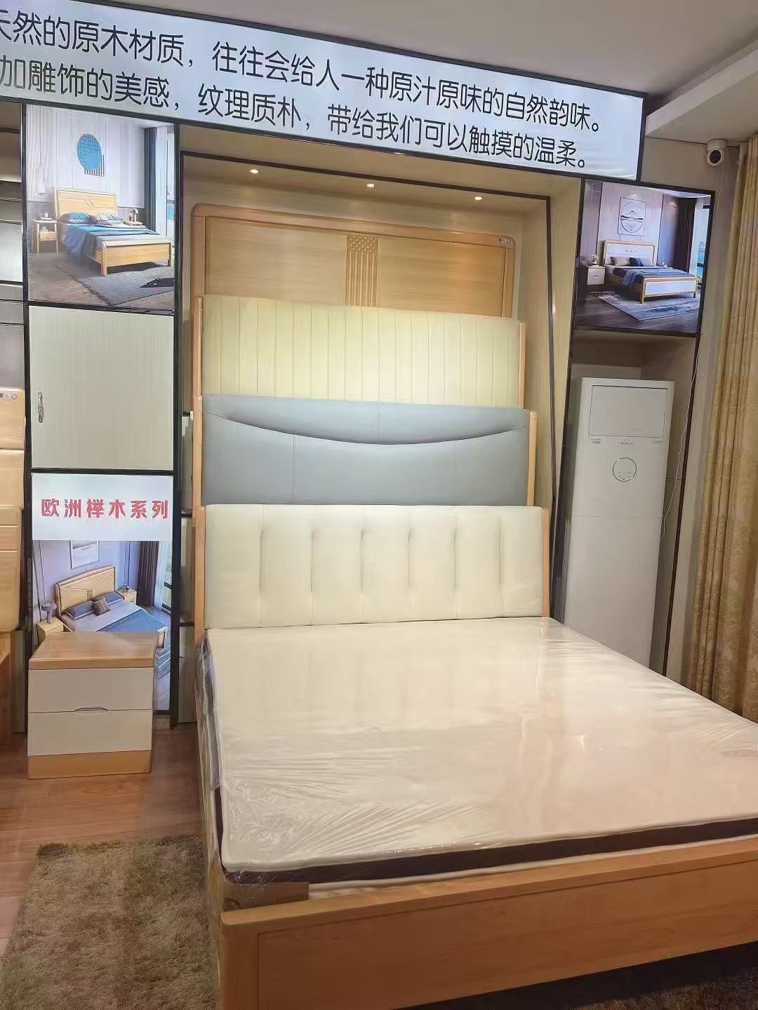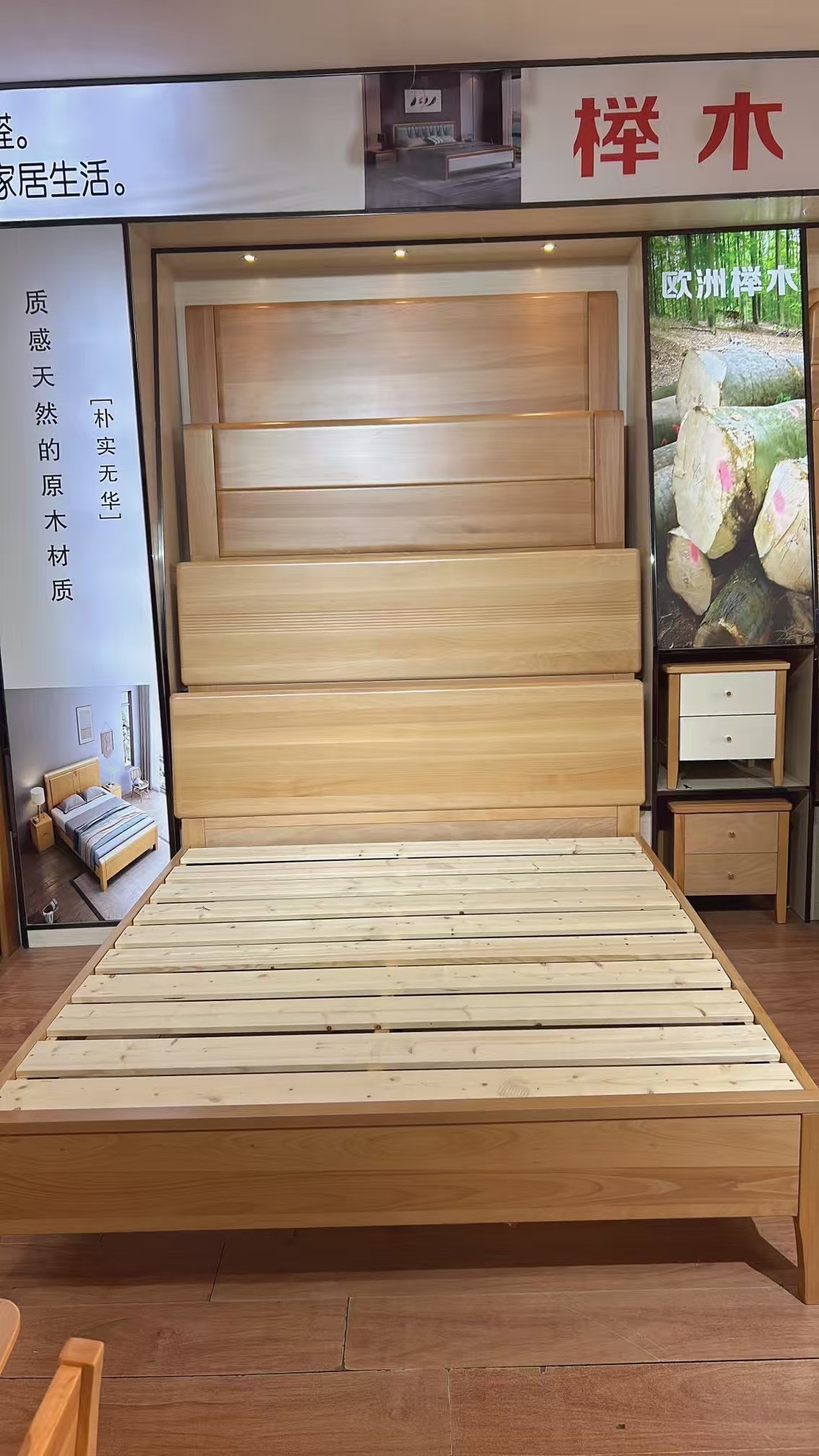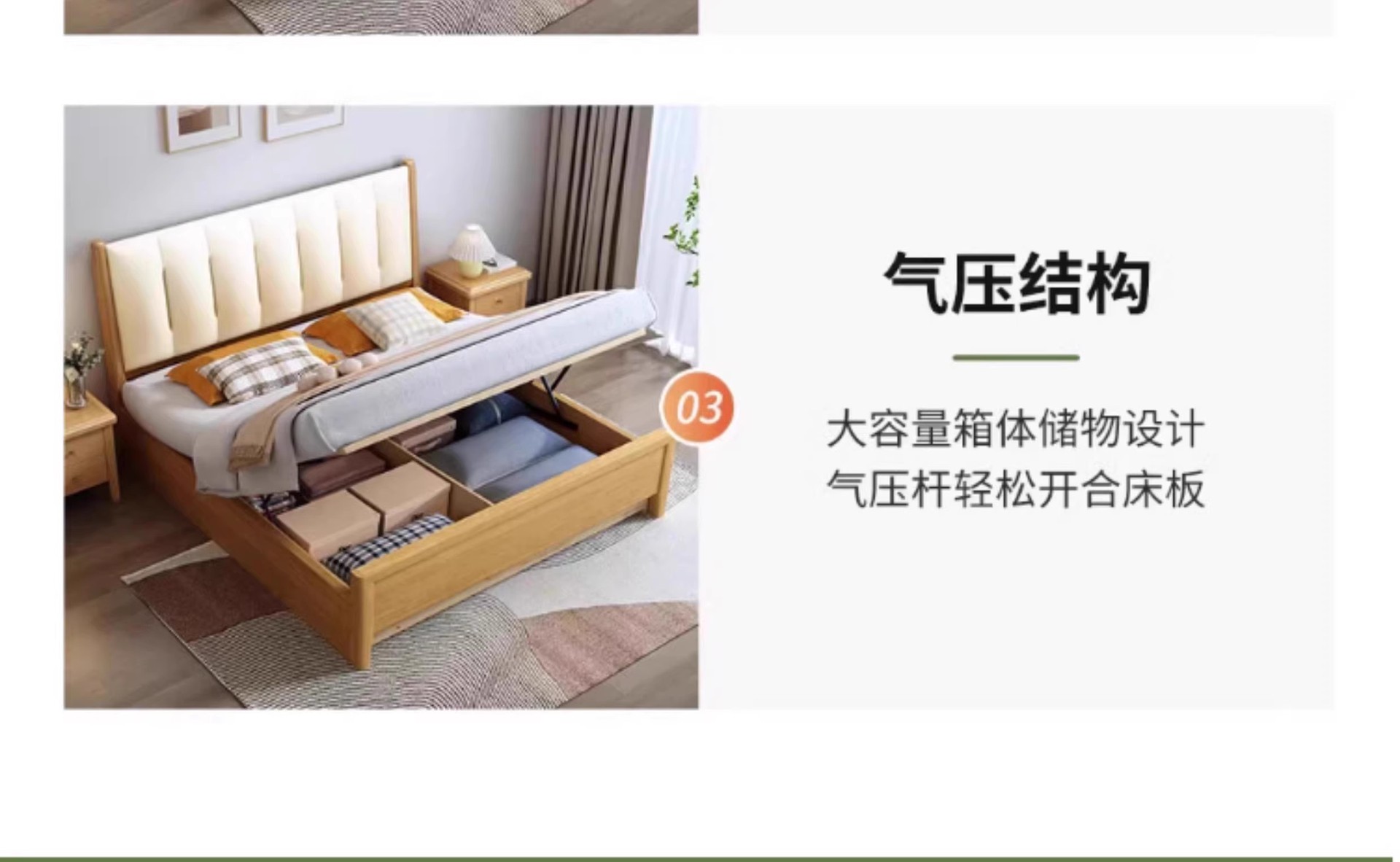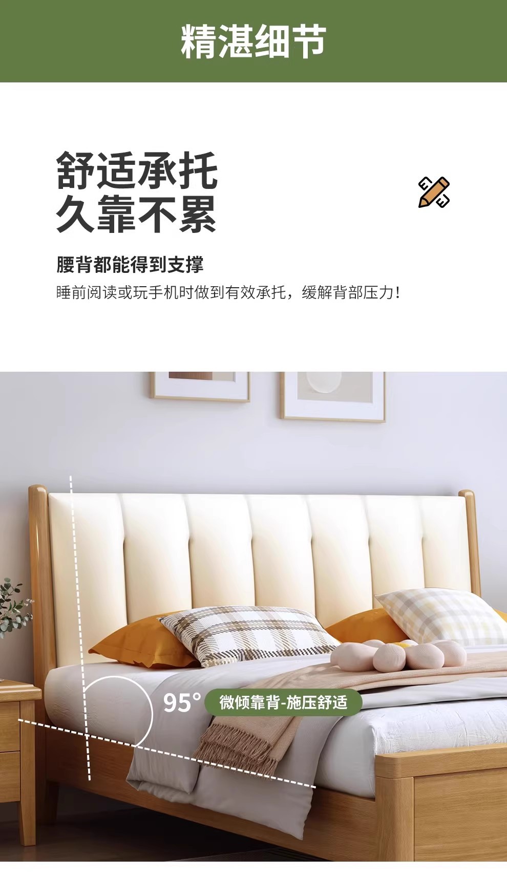 너도밤나무 원목 침대 모던 심플 마스터 침실 1.8m 더블 침대 1.5m 통나무 침대 소프트 등받이 침실 수납 웨딩 침대스토어 가기