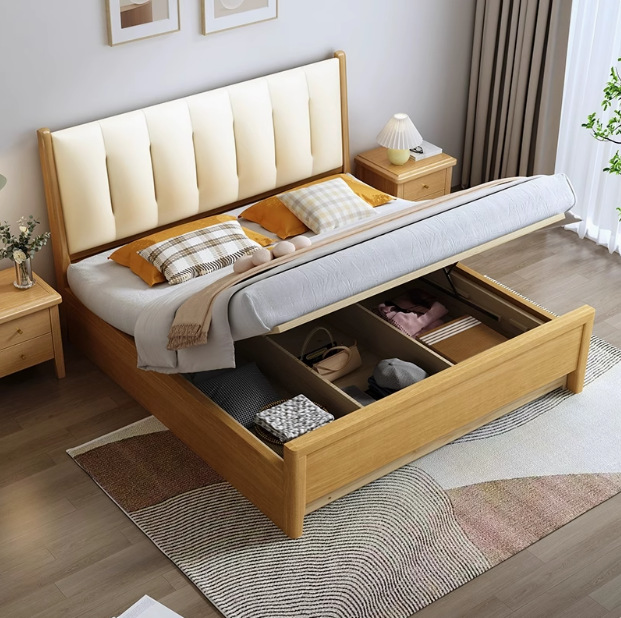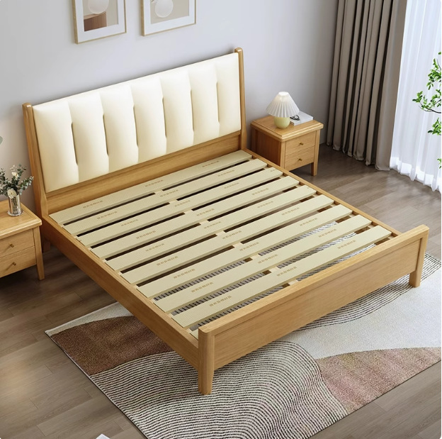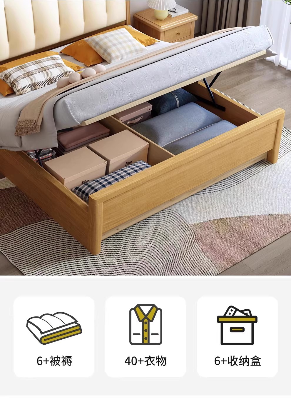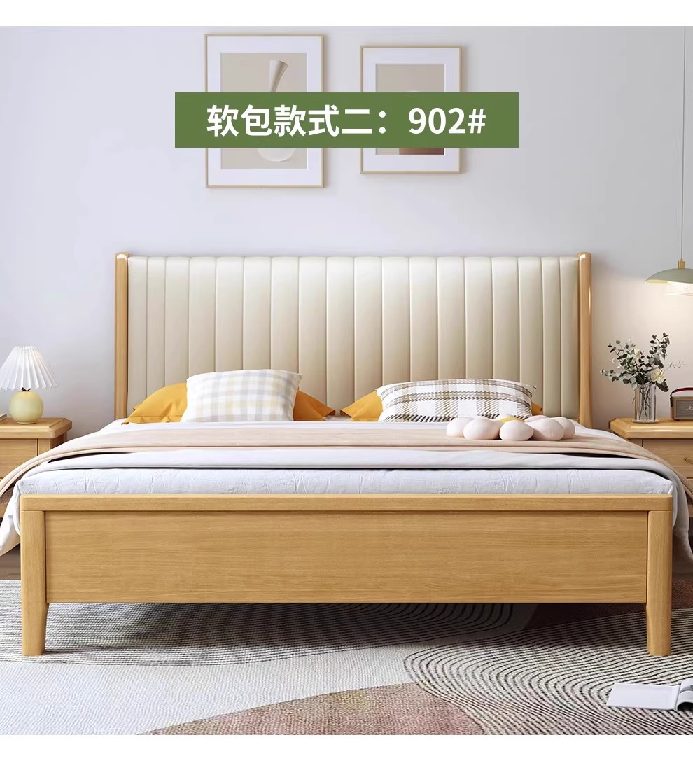 너도밤나무 원목 침대 모던 심플 마스터 침실 1.8m 더블 침대 1.5m 통나무 침대 소프트 등받이 침실 수납 웨딩 침대