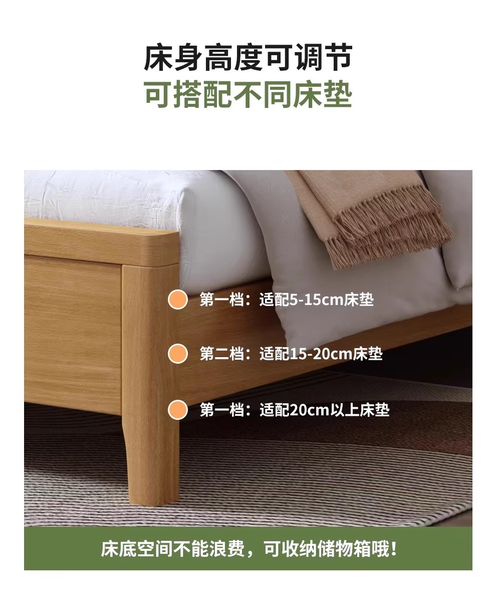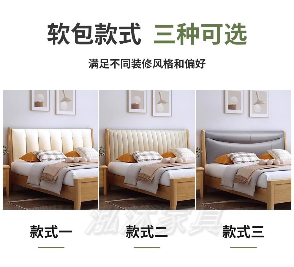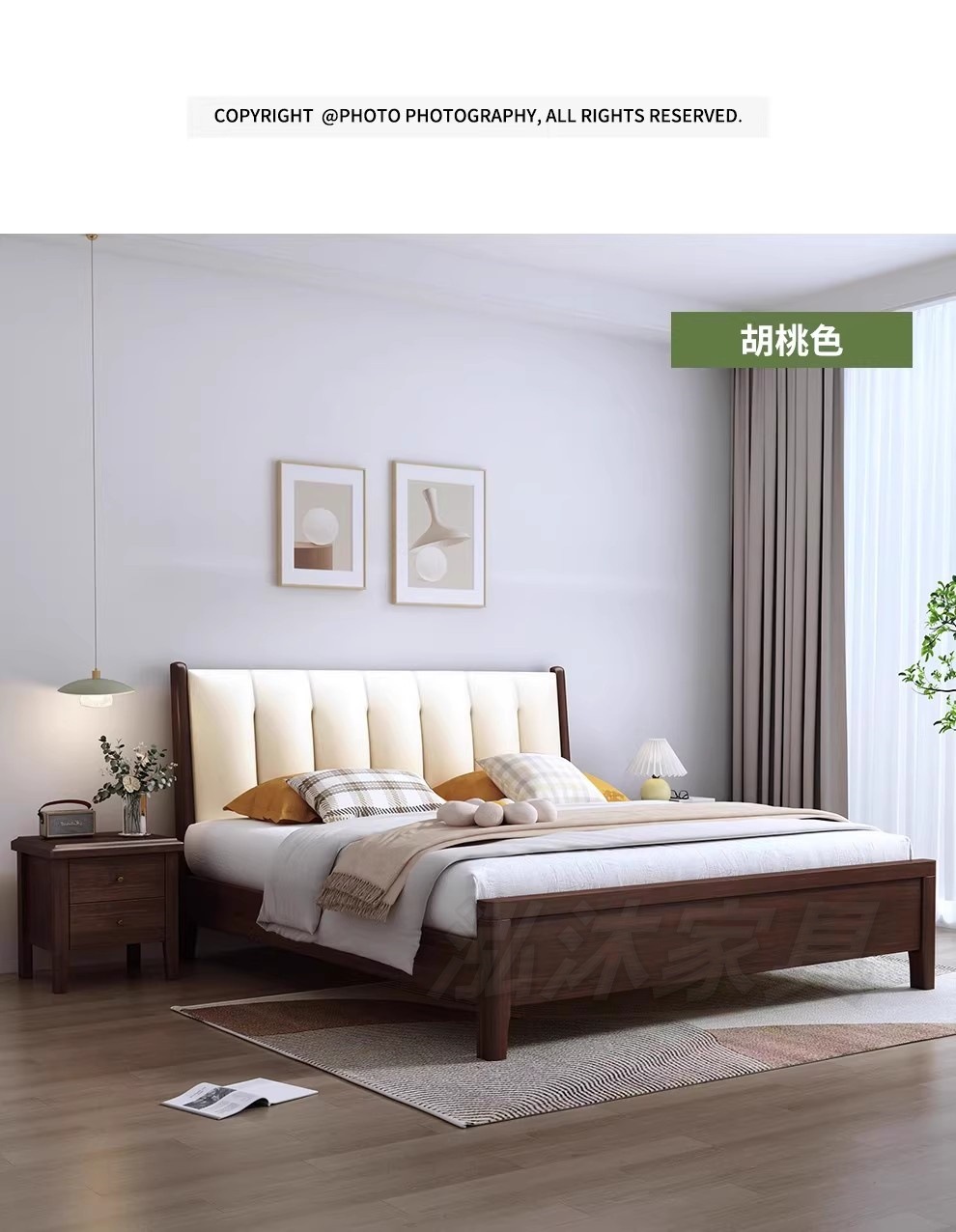 너도밤나무 원목 침대 모던 심플 마스터 침실 1.8m 더블 침대 1.5m 통나무 침대 소프트 등받이 침실 수납 웨딩 침대