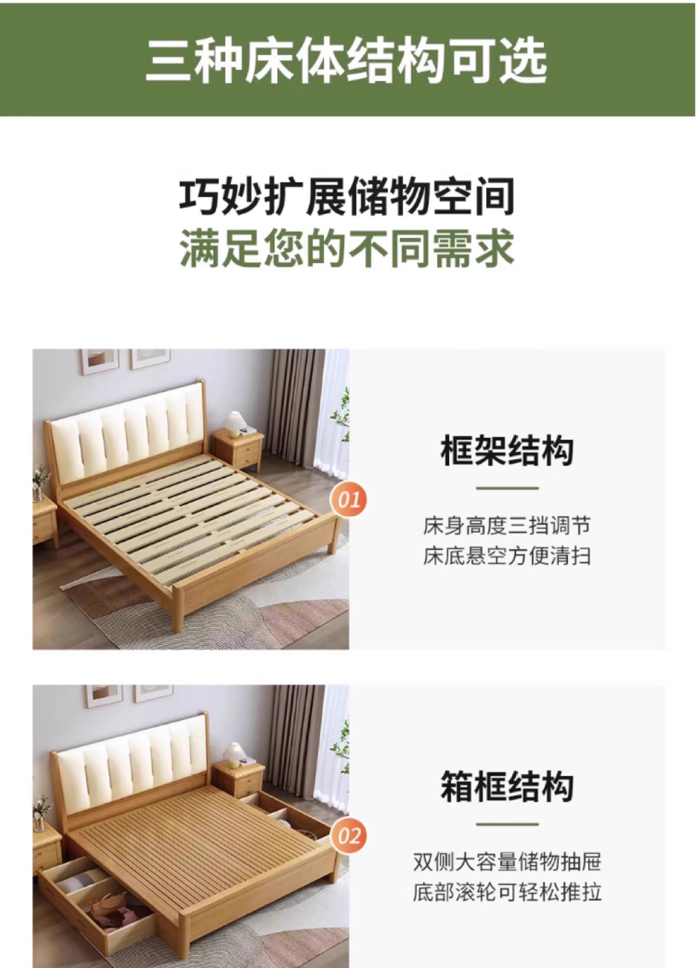 • 프레임 구조에는 접이식 침대 보드 또는 풀 침대 보드 + 침대 옆 탁자 1개를 장착할 수 있습니다.