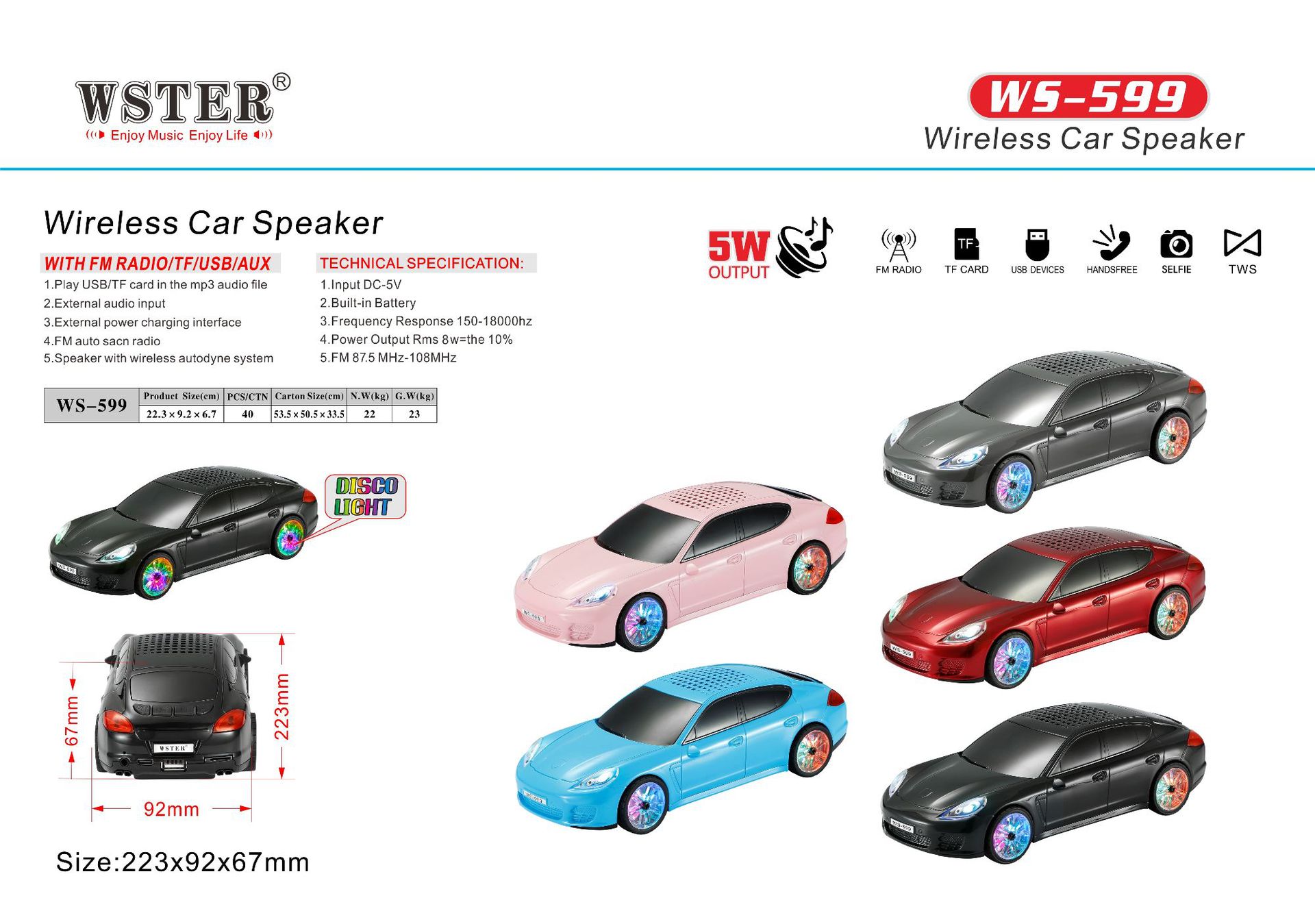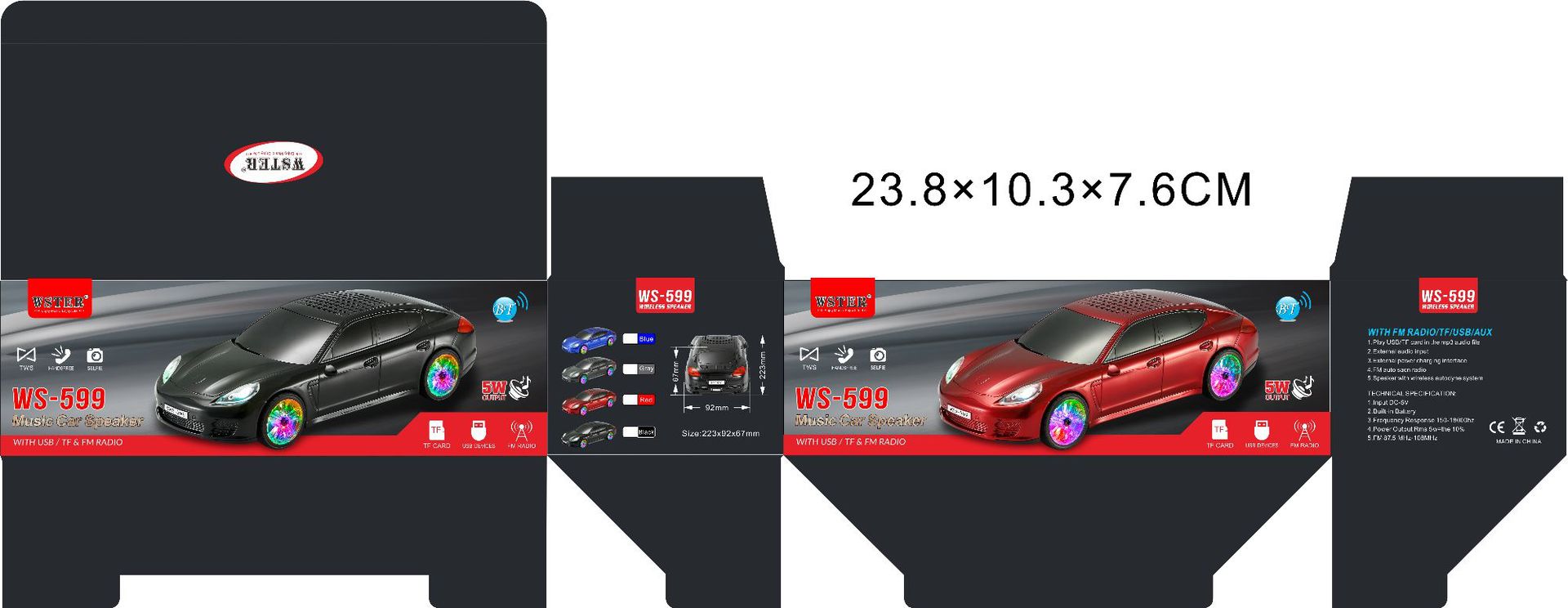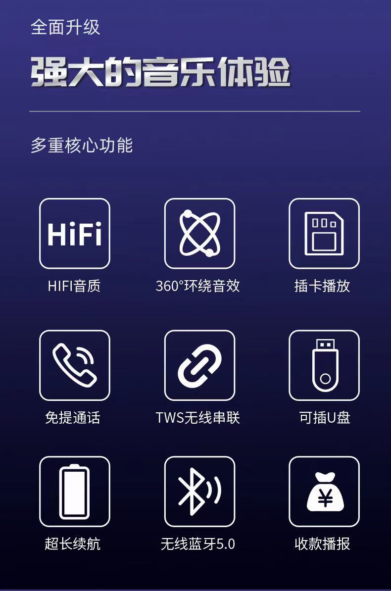*功能:BT/FM/AUX/TF/USB/TWS