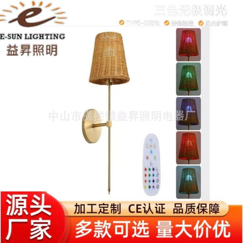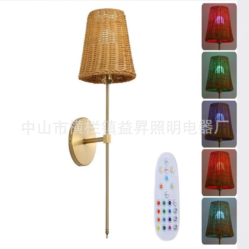 A12 통나무 스타일 등나무 침실 머리맡 벽 램프 일본식 와비사비 스타일 손으로 짠 B&B 입구 통로 벽