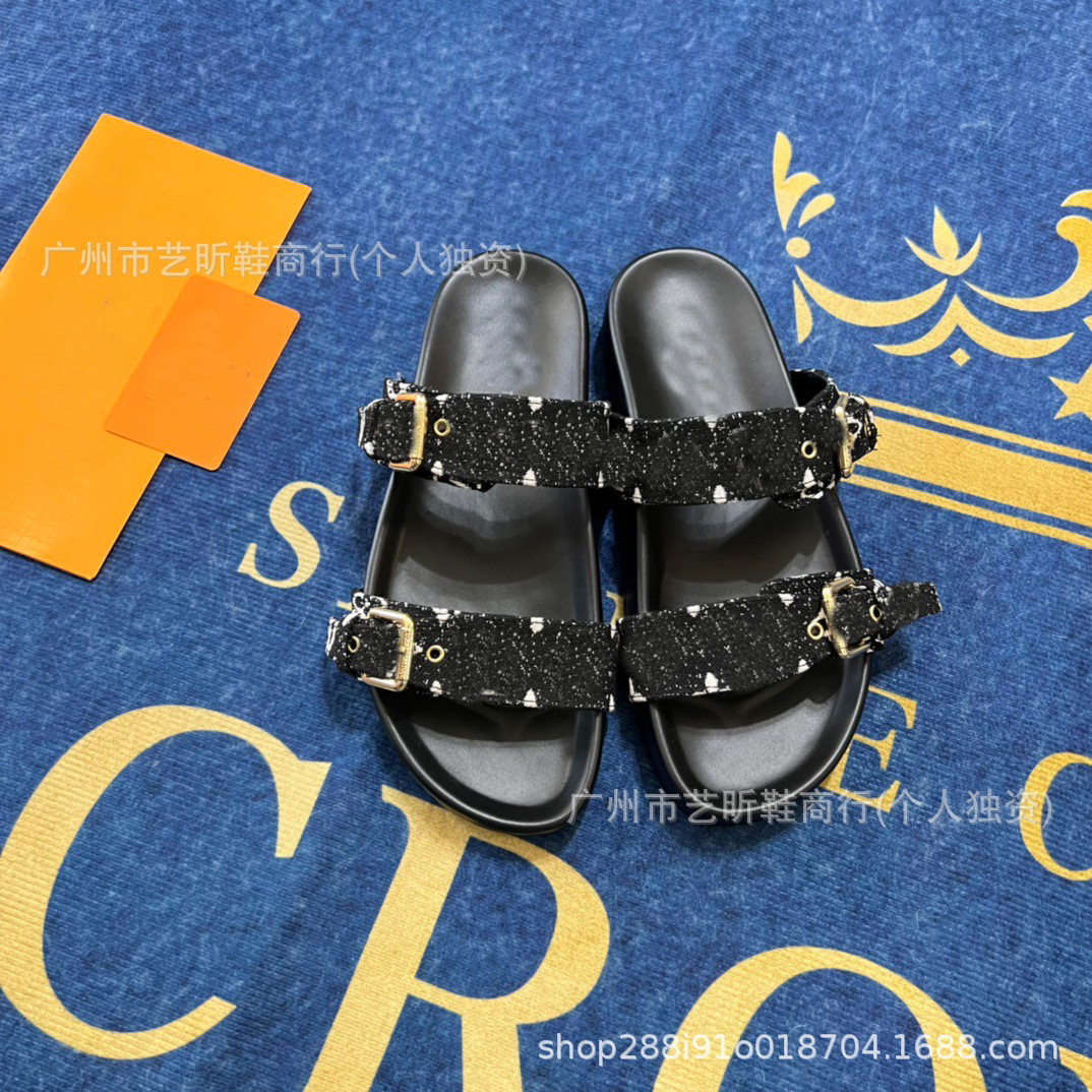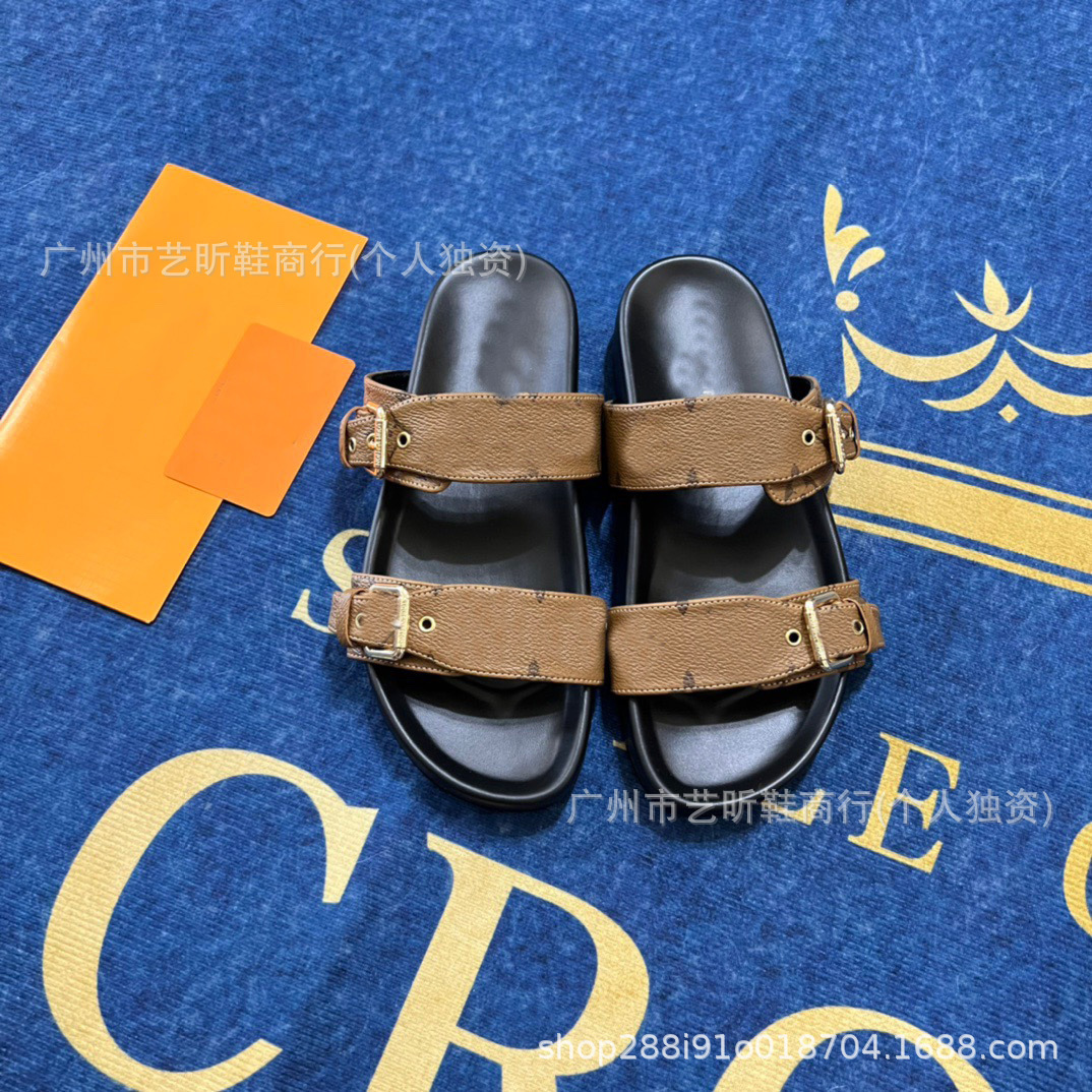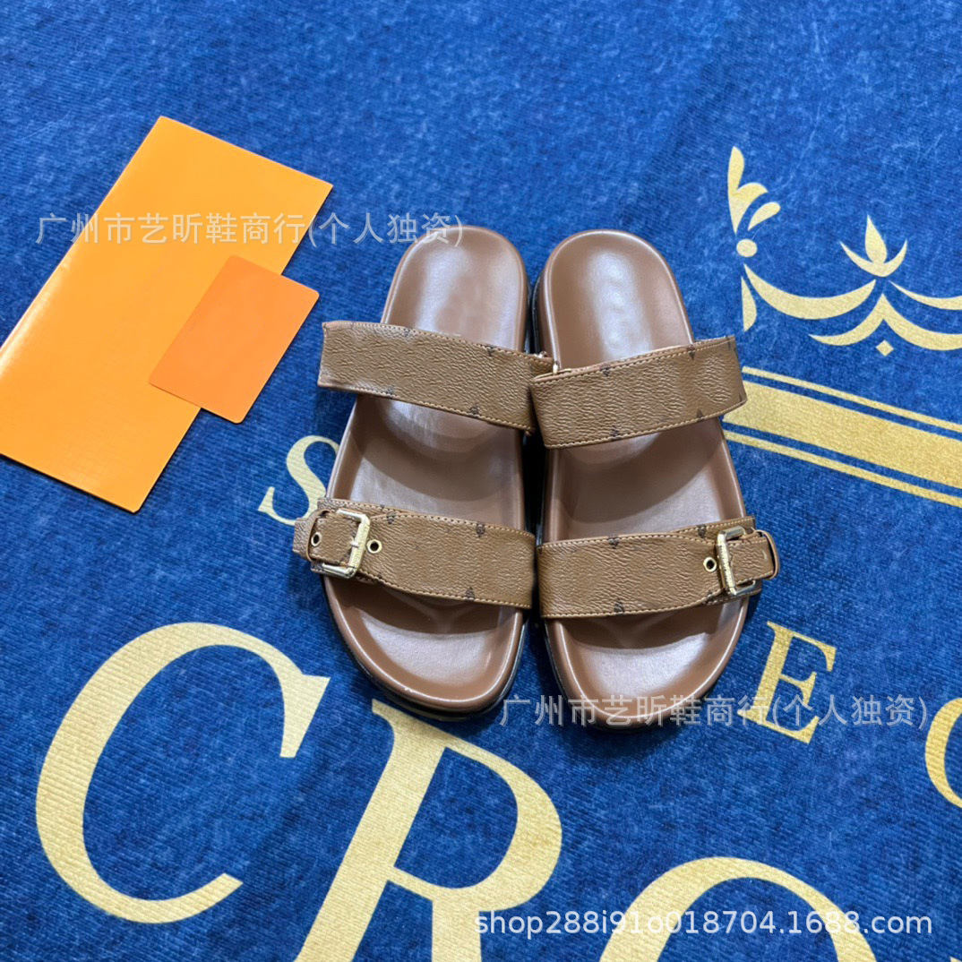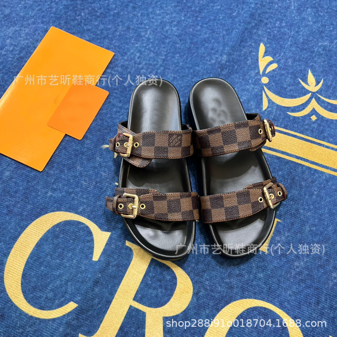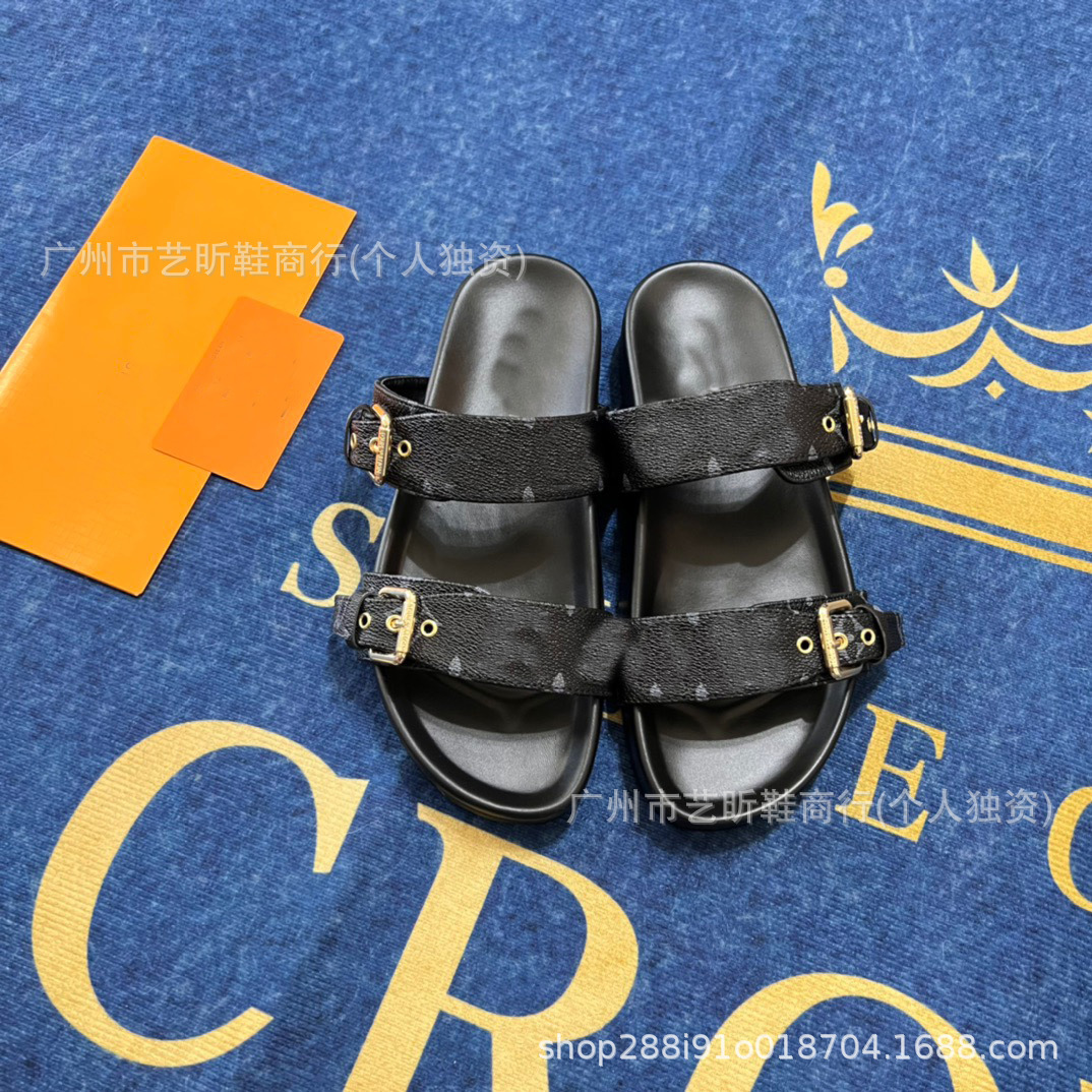 Donkey Family Letter Slippers 2025 여름 신작 플랫 메탈 싱글 버클 더블 버클 스트랩 유럽과 미국의 겉옷 여성용 슬리퍼스토어 가기