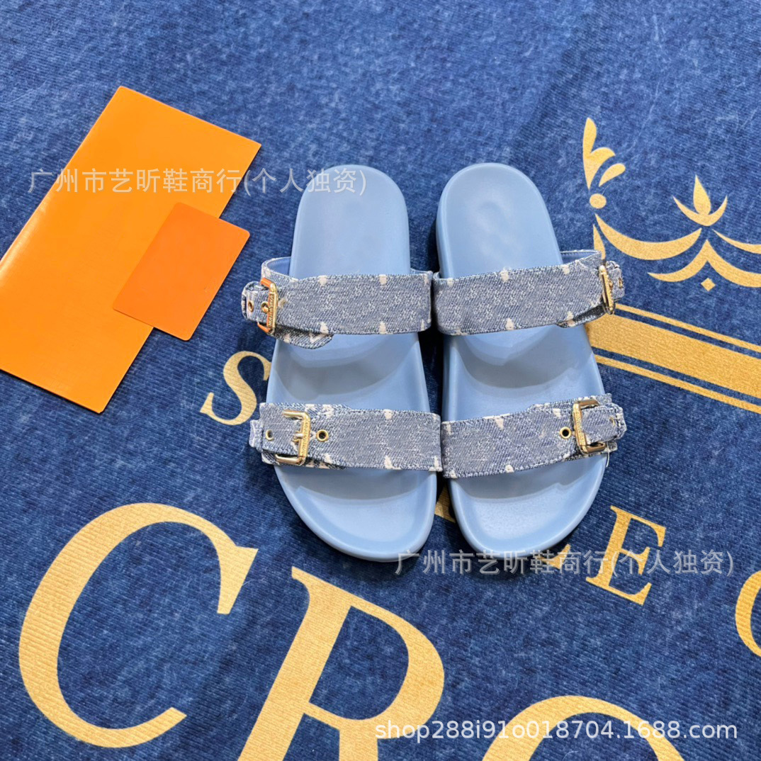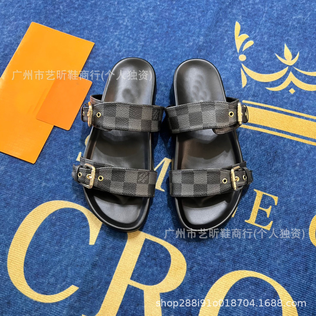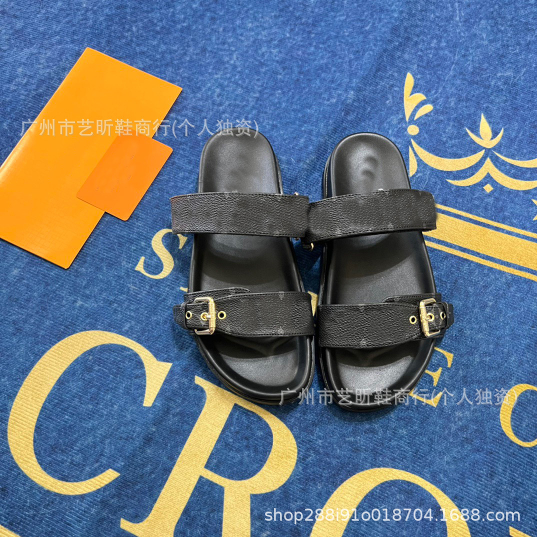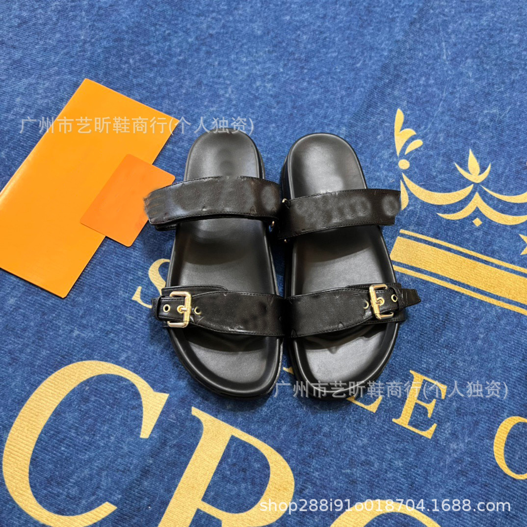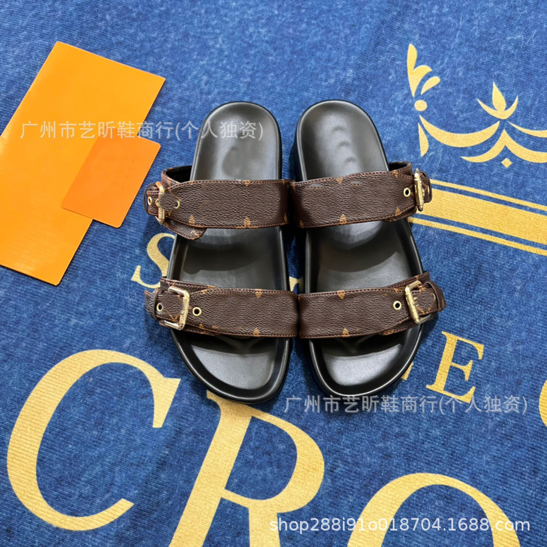Donkey Family Letter Slippers 2025 여름 신작 플랫 메탈 싱글 버클 더블 버클 스트랩 유럽과 미국의 겉옷 여성용 슬리퍼스토어 가기