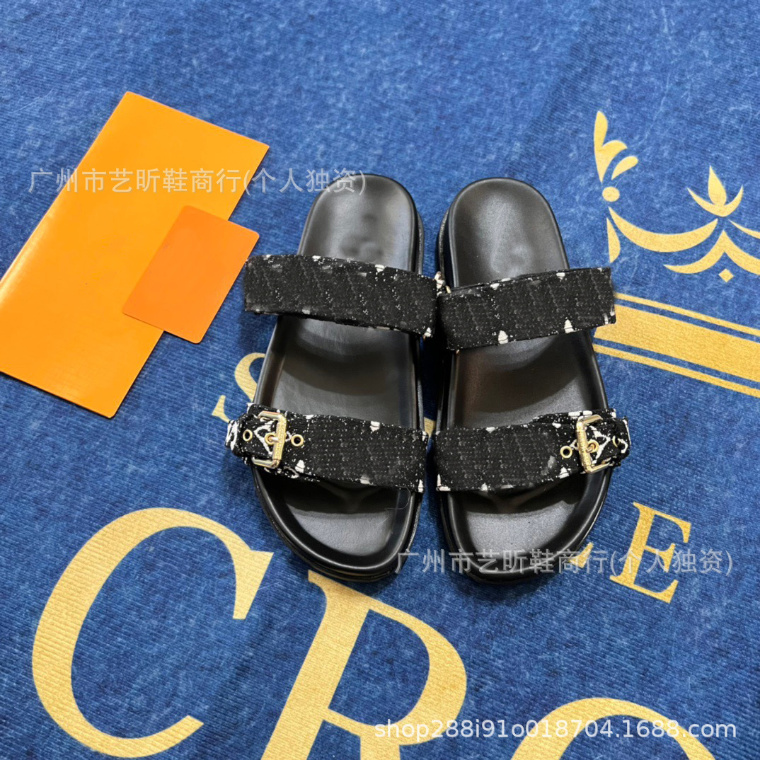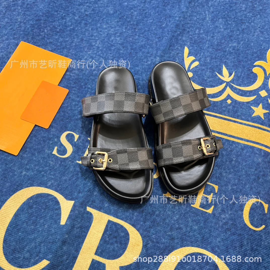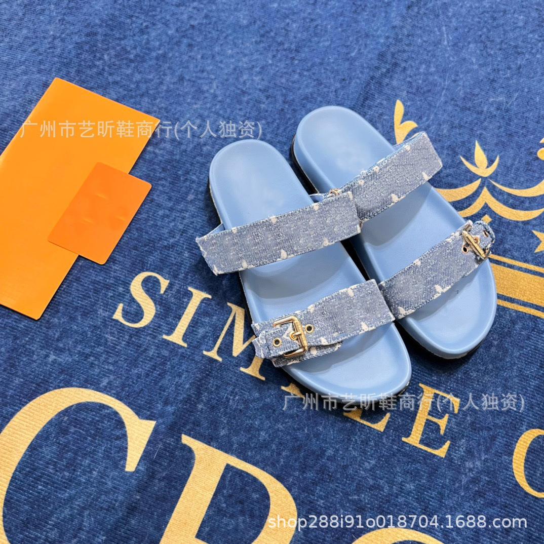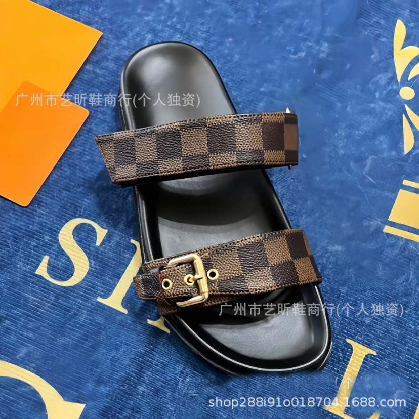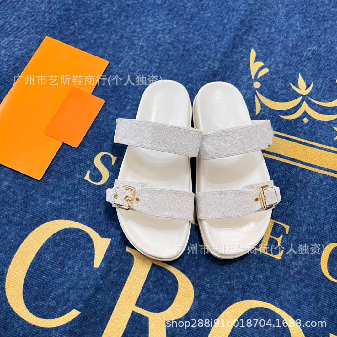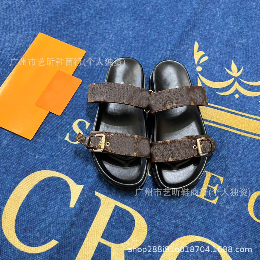 Donkey Family Letter Slippers 2025 여름 신작 플랫 메탈 싱글 버클 더블 버클 스트랩 유럽과 미국의 겉옷 여성용 슬리퍼스토어 가기