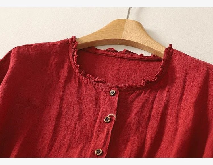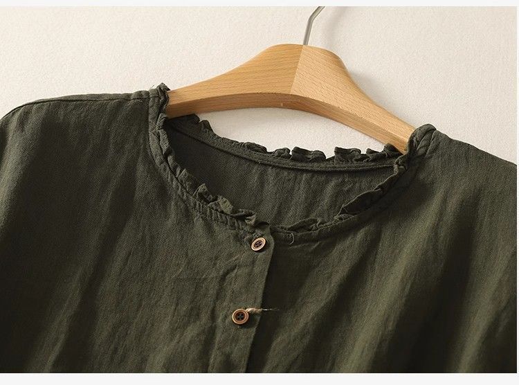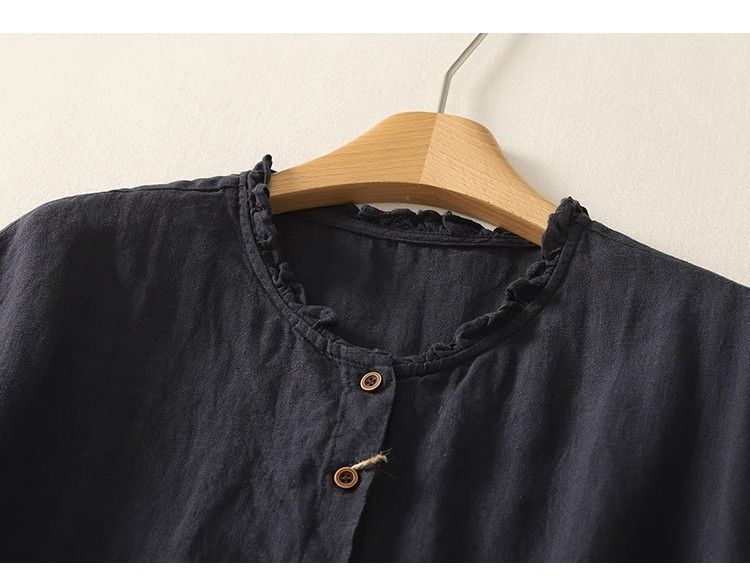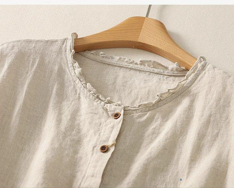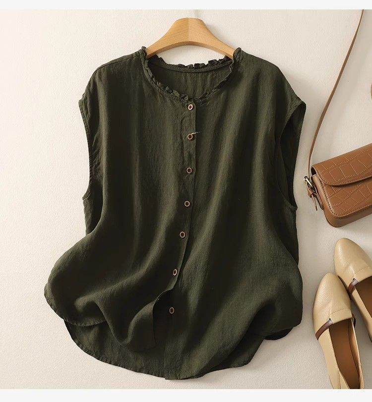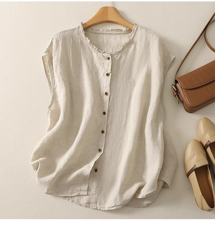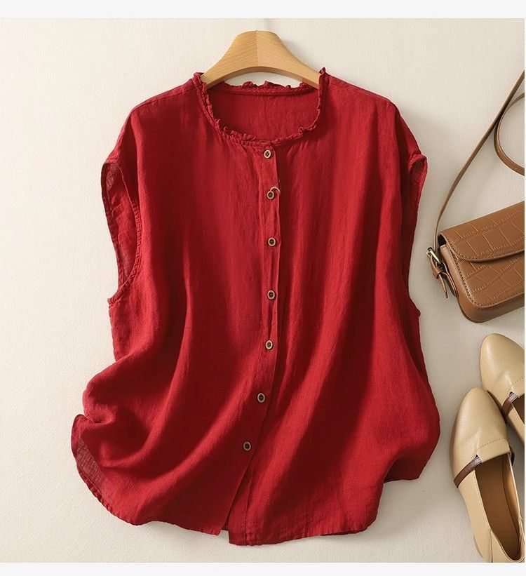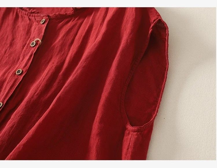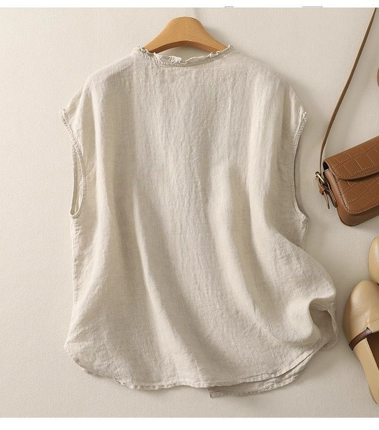 대외 무역 여성 의류 카운터 여름 복고풍 면화 및 린넨 민소매 셔츠 여성용 캐주얼 루즈 슬리밍 레이스 칼라 탑스토어 가기