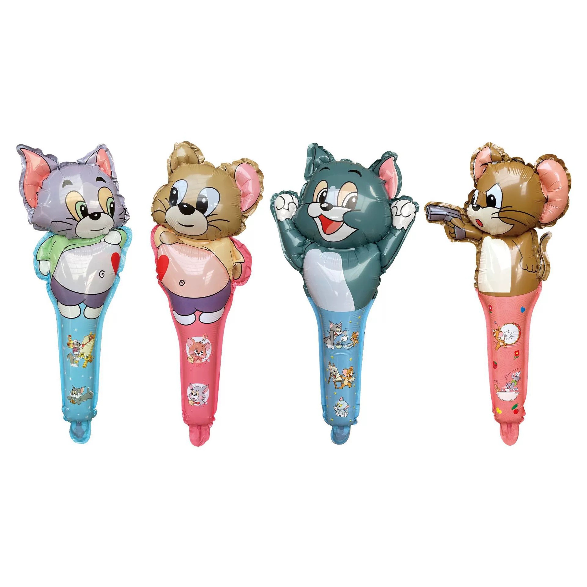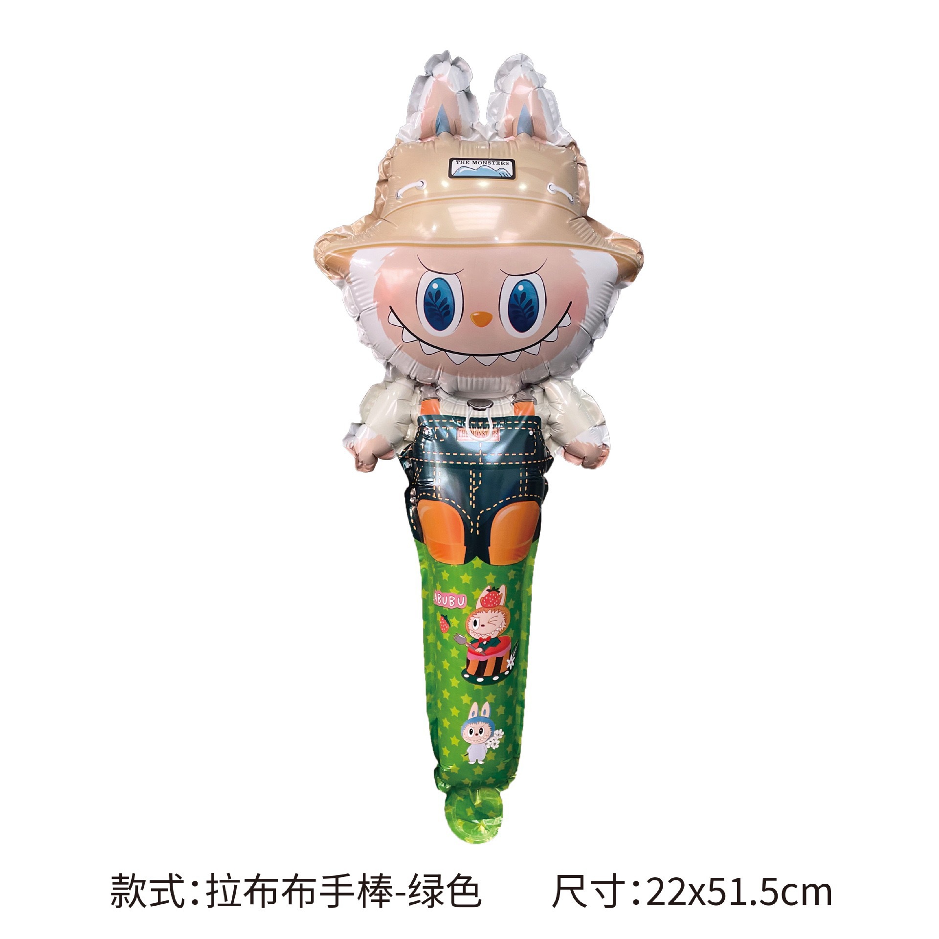라부부 알루미늄 필름 풍선 귀여운 생일 장식 소품 손잡이 막대 만화 풍선 야시장 장난감