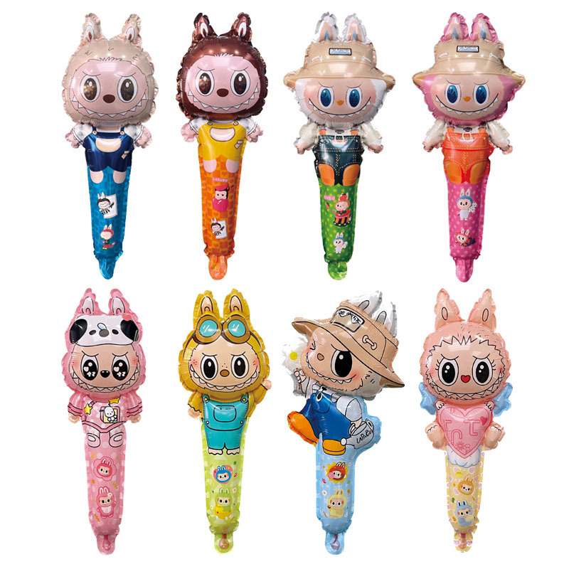 라부부 알루미늄 필름 풍선 귀여운 생일 장식 소품 손잡이 막대 만화 풍선 야시장 장난감스토어 가기