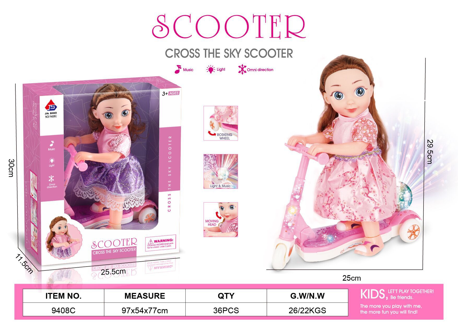 국경 간 대외 무역 소녀 장난감 전기 범용 스윙 회전 스쿠터 빛 음악 인형 인형 도매스토어 가기