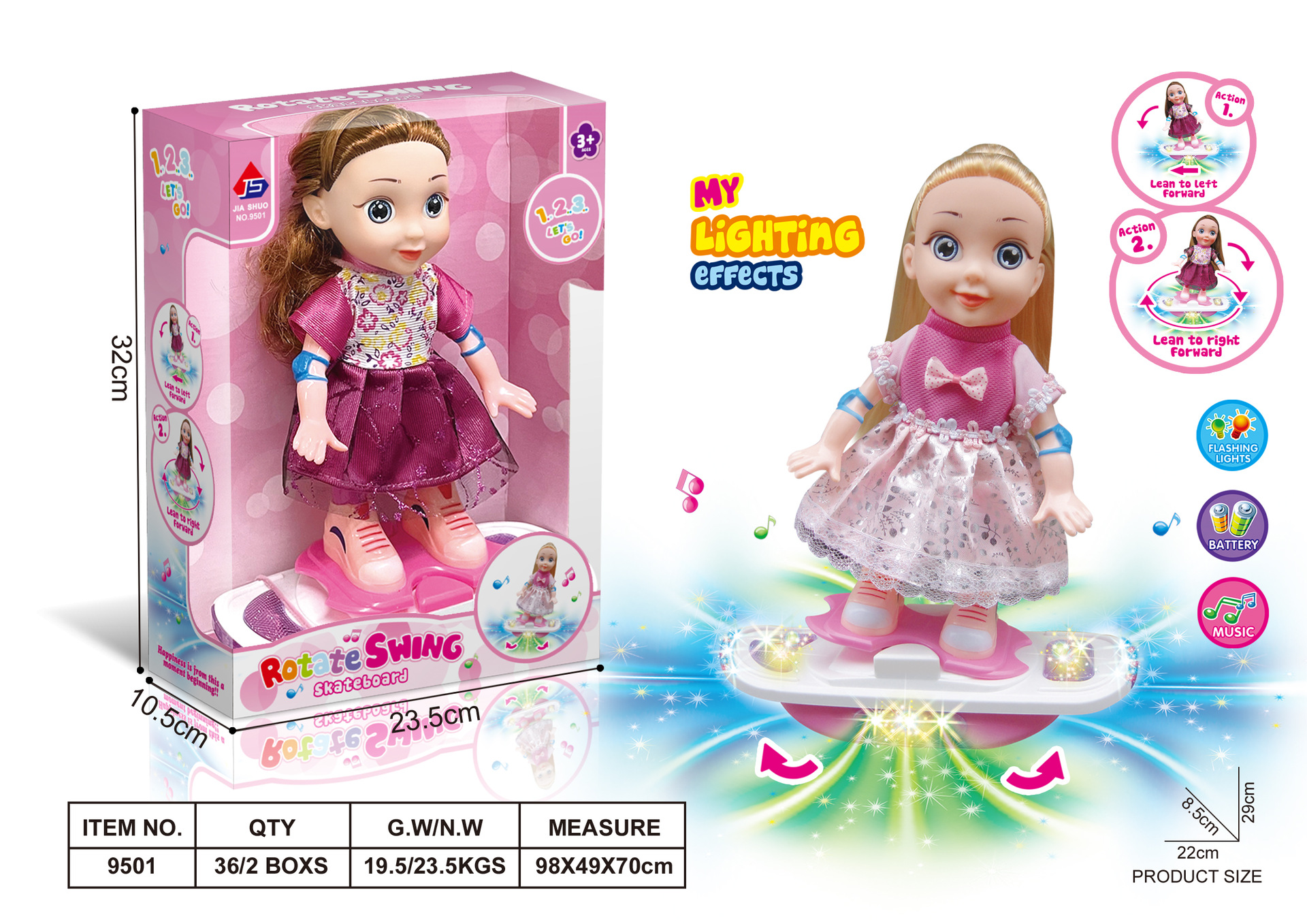 국경 간 대외 무역 소녀 장난감 전기 범용 스윙 회전 스쿠터 빛 음악 인형 인형 도매